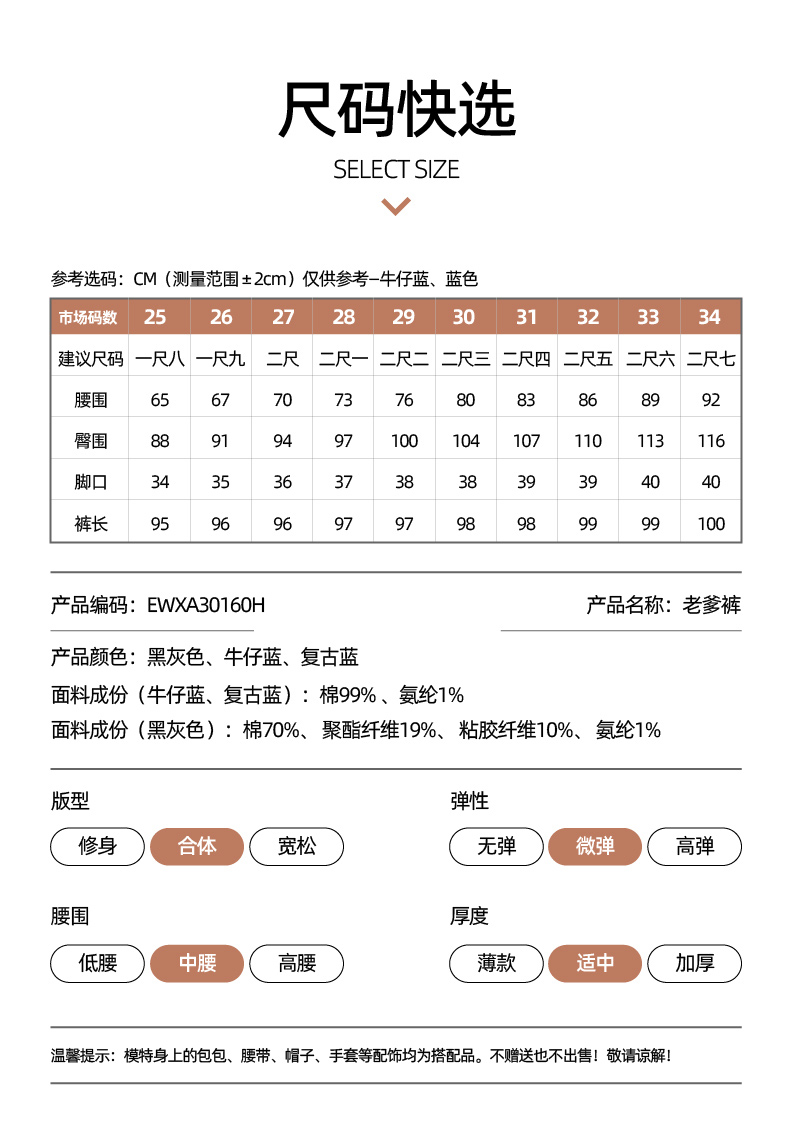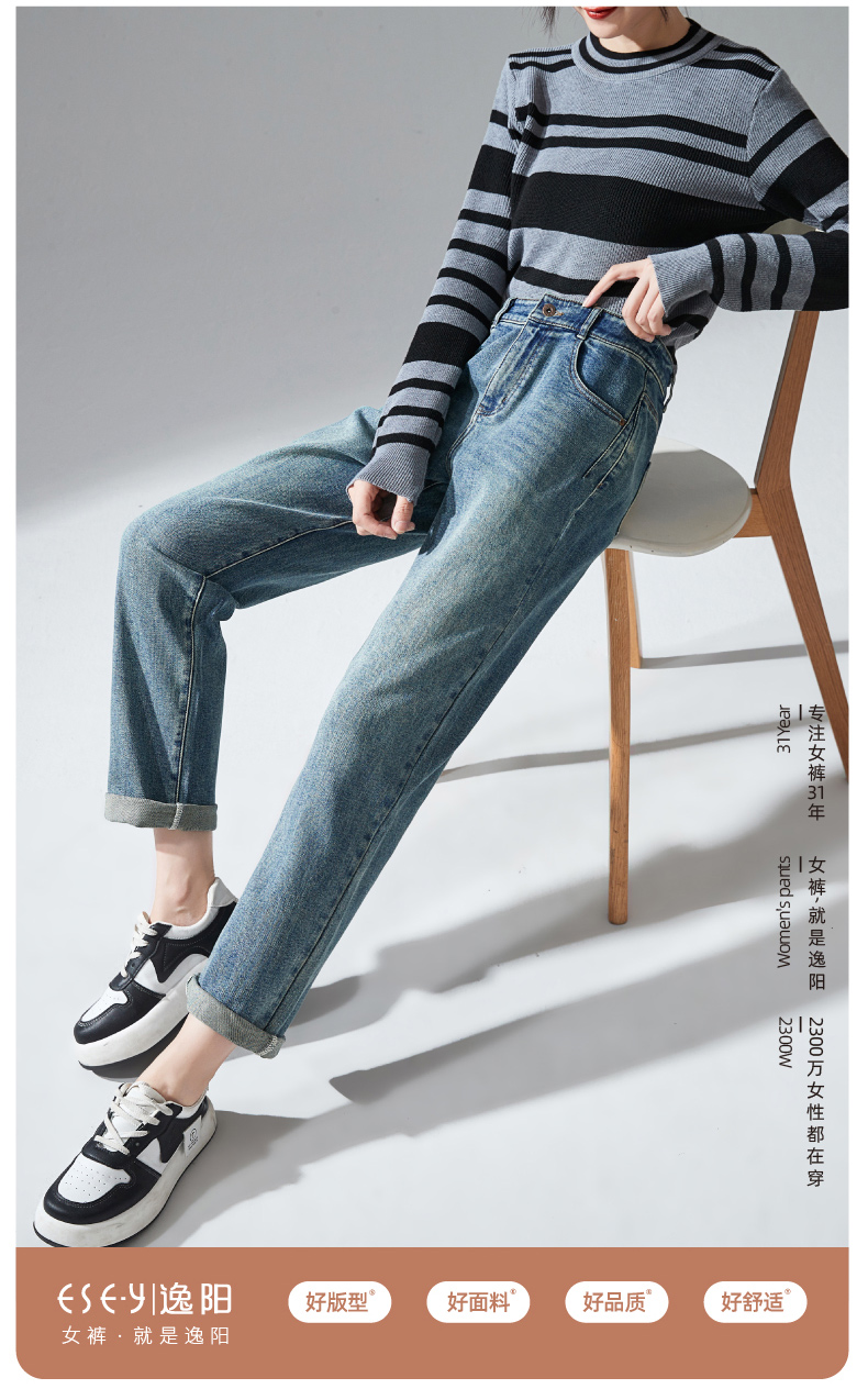 逸阳牛仔裤女小个子2023年秋季新款显瘦哈伦老爹梨形身材裤子0160