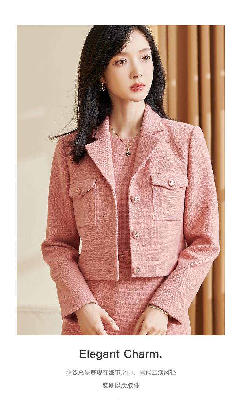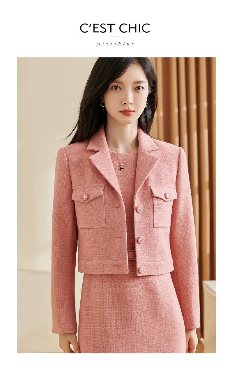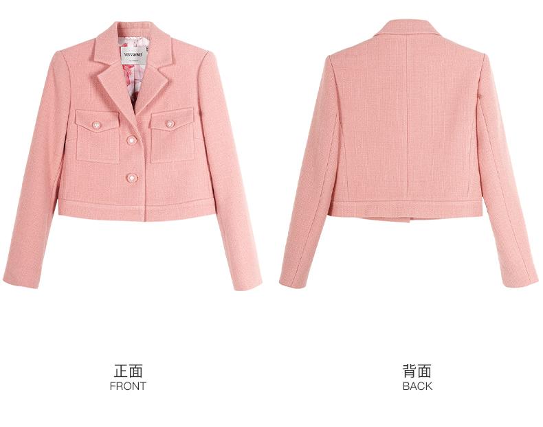 剩XL/2XL 米思阳2025新品精致优雅粉色小香风外套编织短款小西装女5Y23DW3443