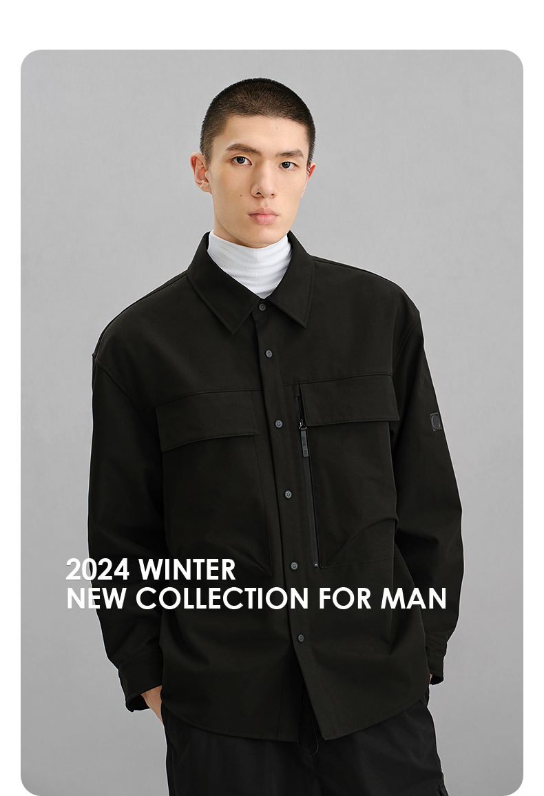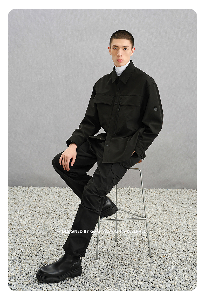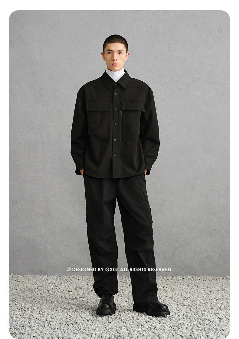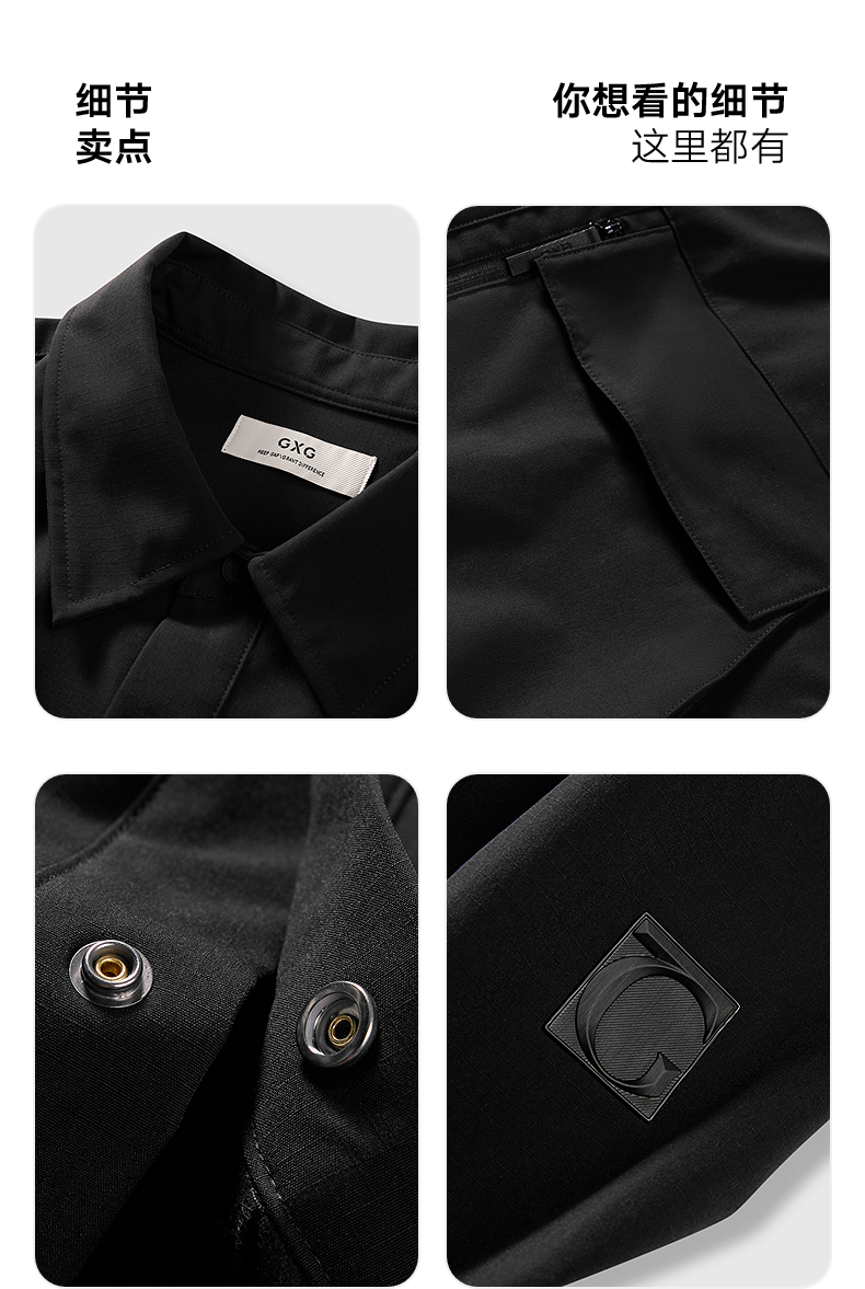 GXG男装 黑色肌理感通勤长袖衬衫24年冬季热卖G24X034068