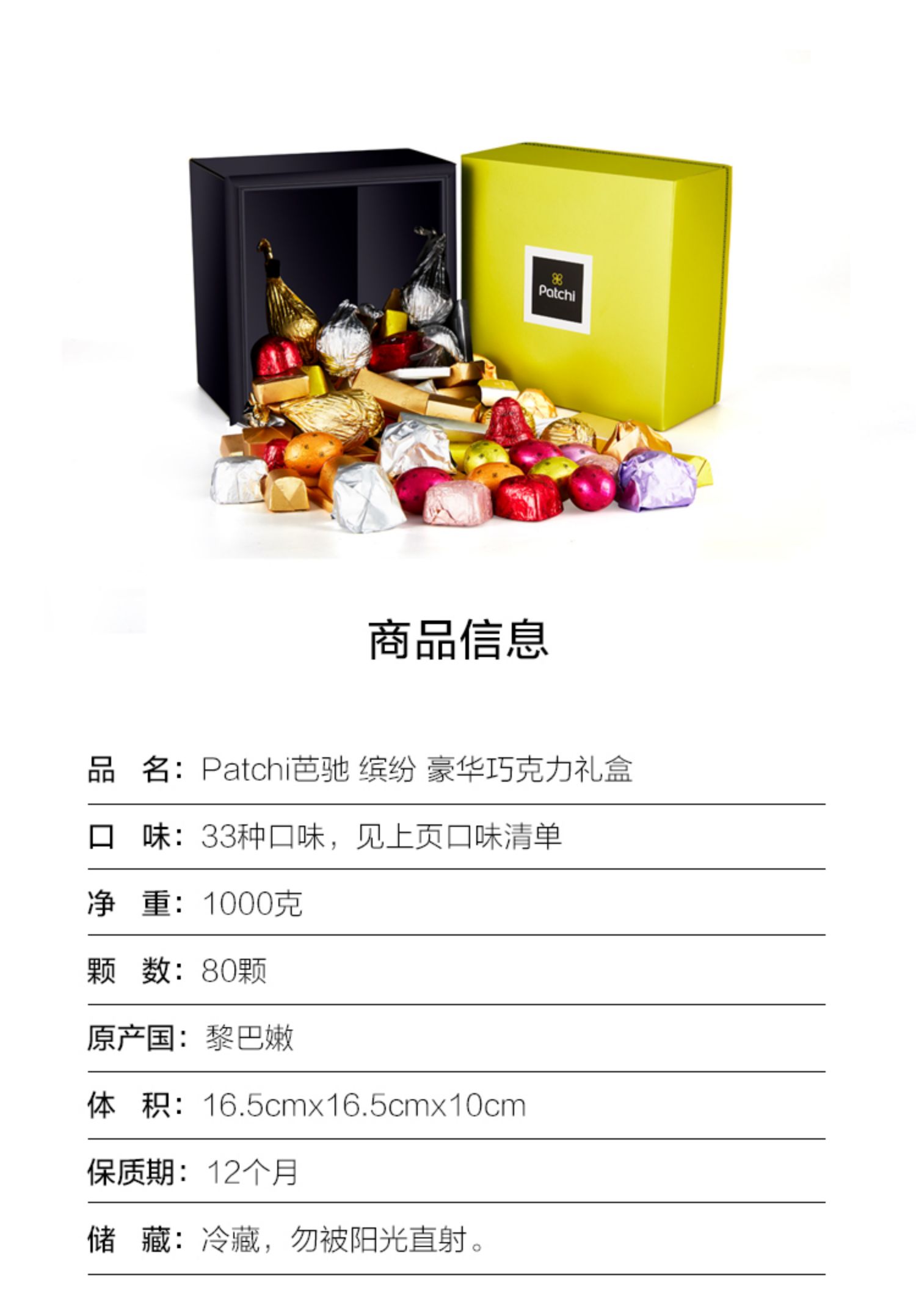 Patchi迪拜巧克力缤纷款进口礼盒装混合多口味圣诞情人节1000g/盒-CPC1000-BE(福建、厦门、集美随机发货,无手提袋)