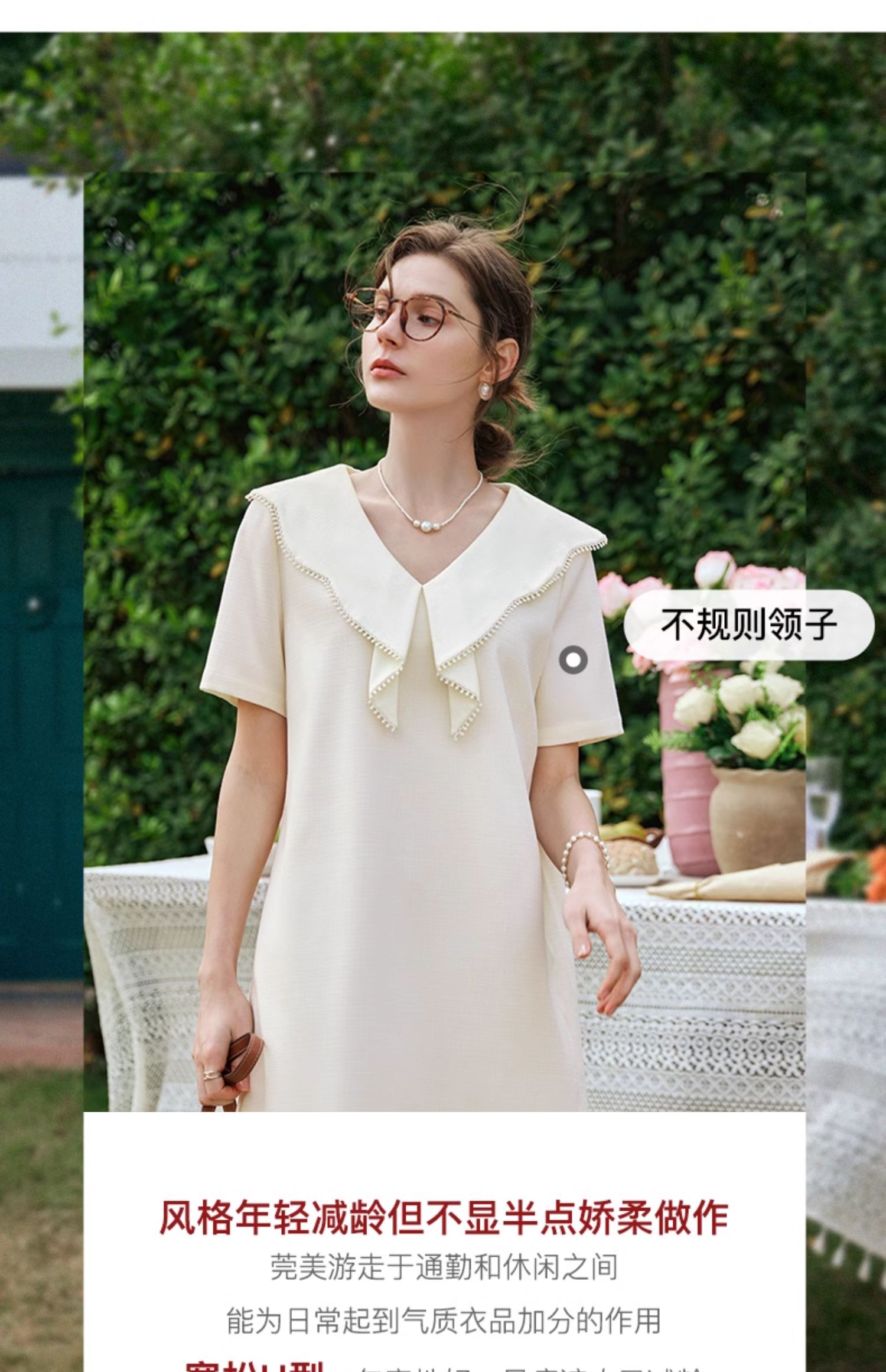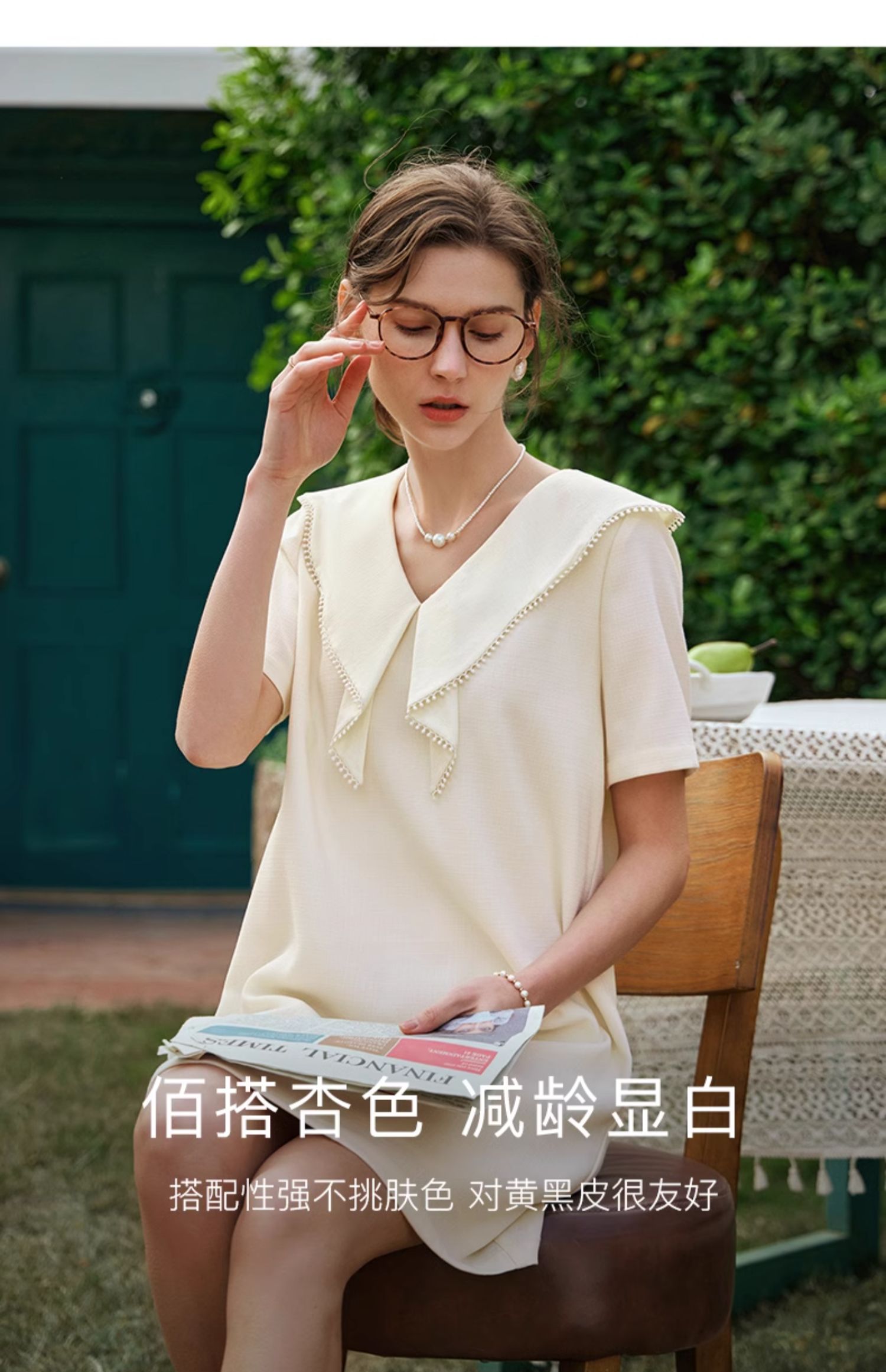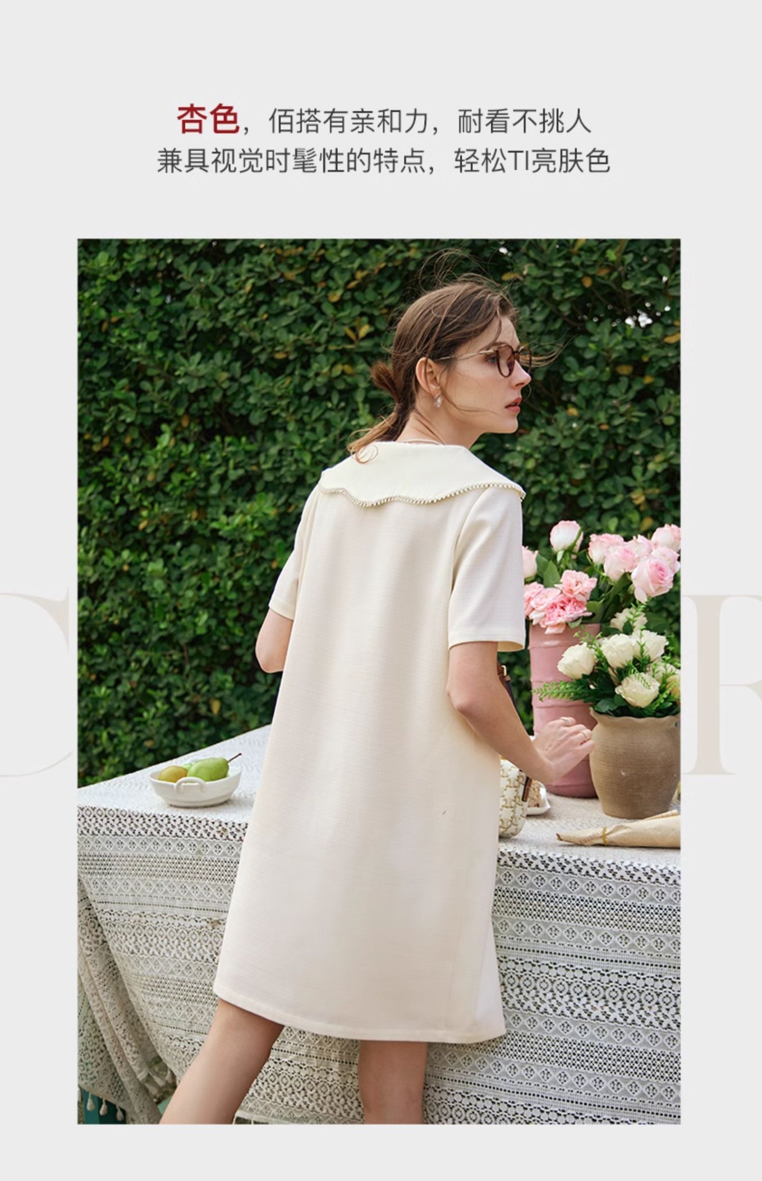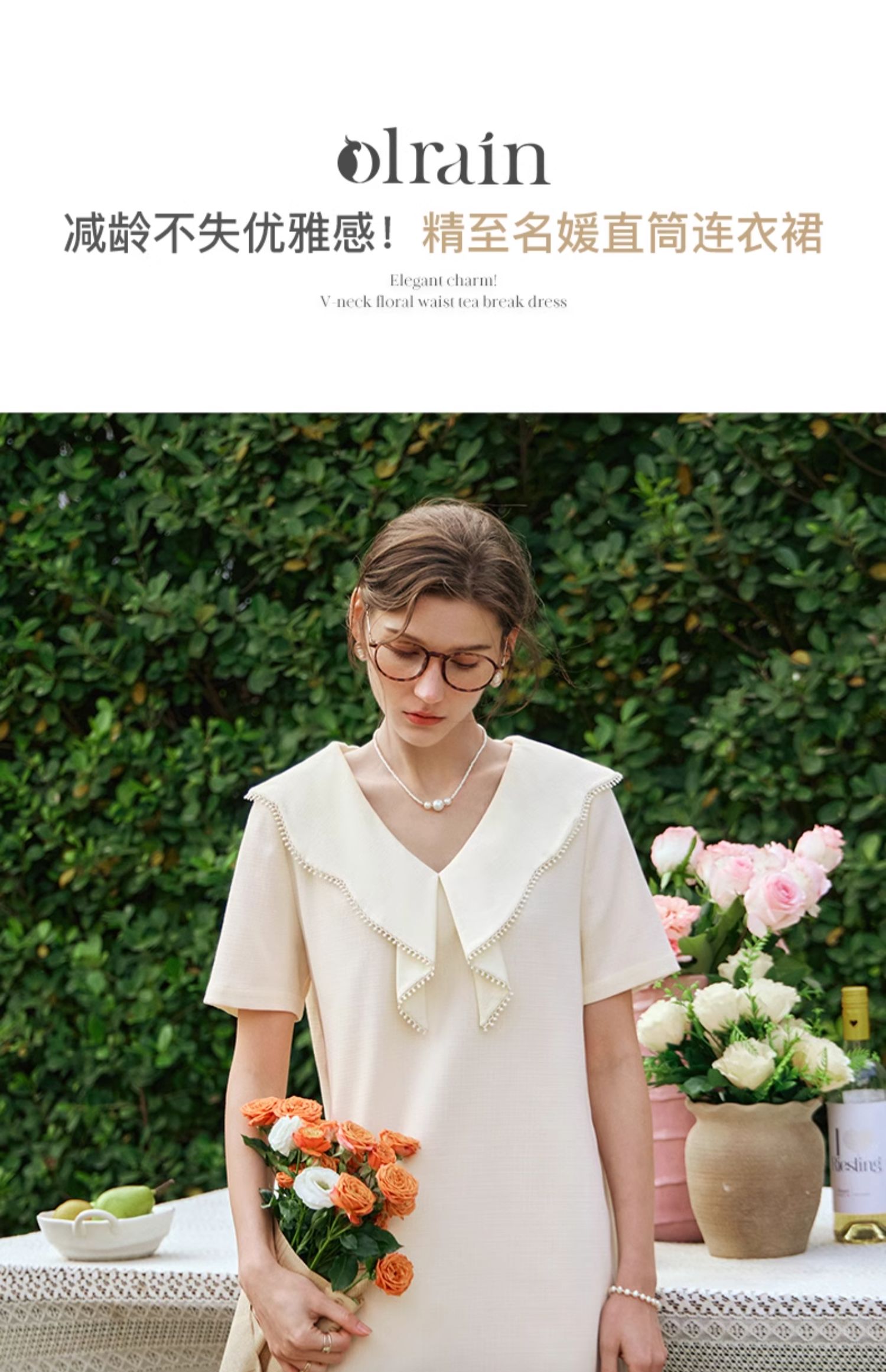 OLrain欧芮儿杏色连衣裙女春季2024年新款别致不规则气质直筒裙