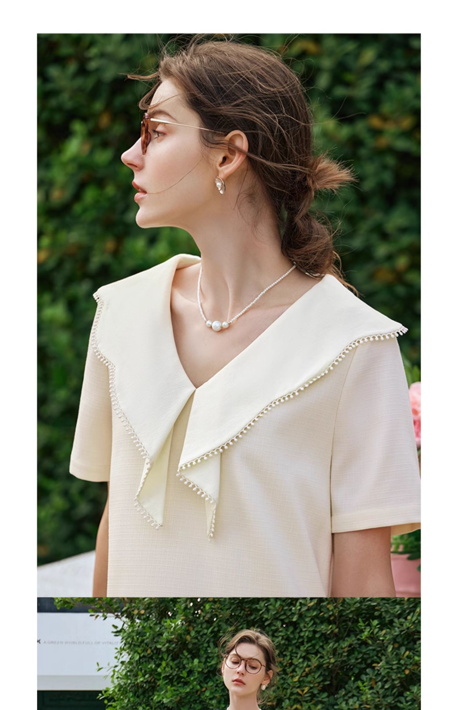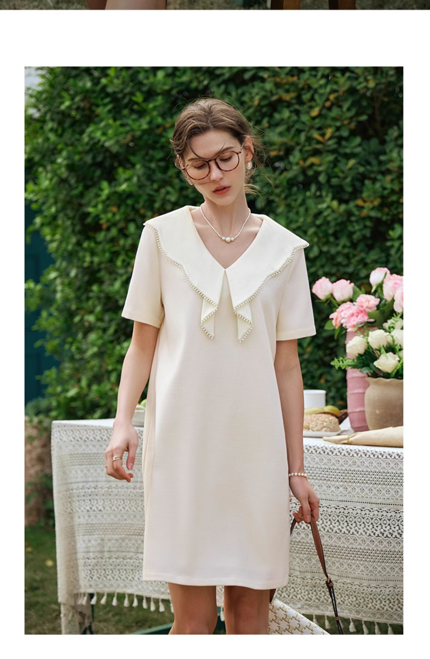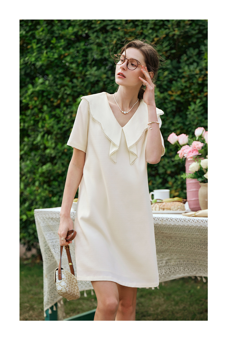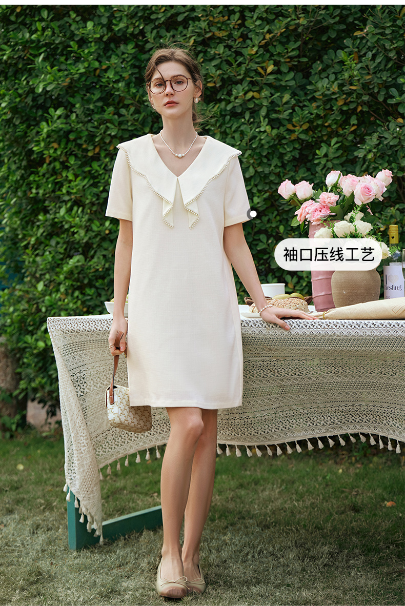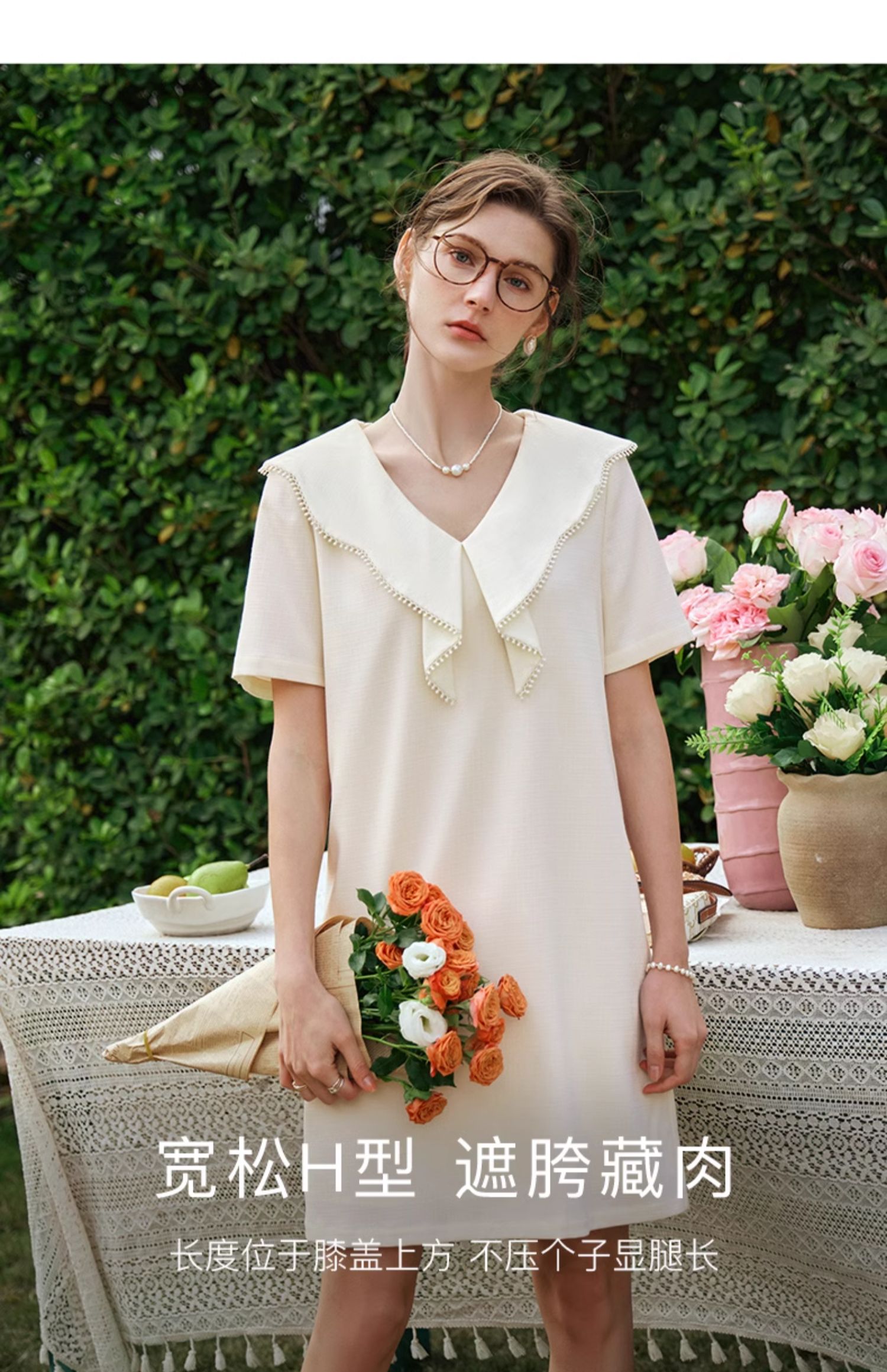 OLrain欧芮儿杏色连衣裙女春季2024年新款别致不规则气质直筒裙