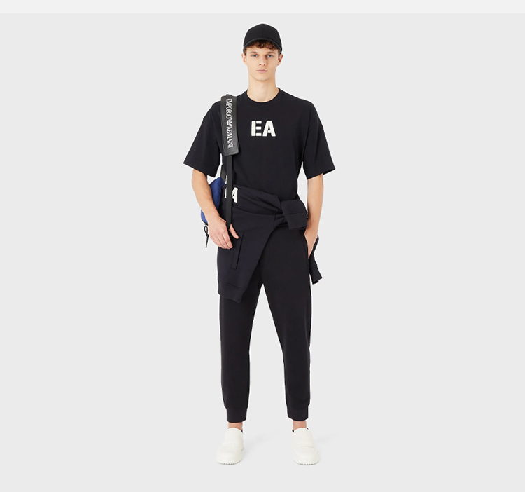 EMPORIO ARMANI 阿玛尼 男士棉质字母刺绣徽标休闲运动裤 深蓝色 6L1P95 1JWPZ 0920