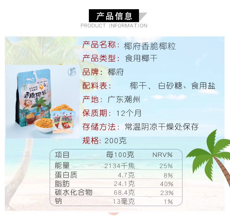 椰府 香脆烤椰粒 烤椰子碎粒 奶茶小料香脆零食烘焙饮品原料