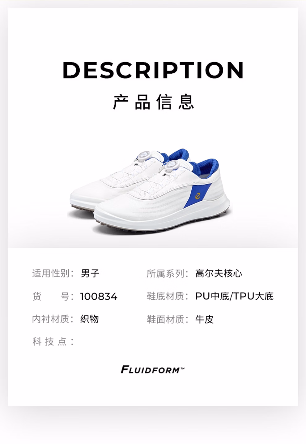 【高尔夫核心】ECCO爱步男子高尔夫球板鞋100834-61109透气排湿软弹