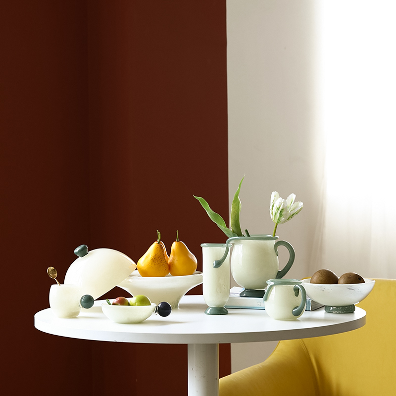 中古风轻奢餐桌双色拼接花瓶迷你水杯果盘碟子餐盘香薰烛台装饰品