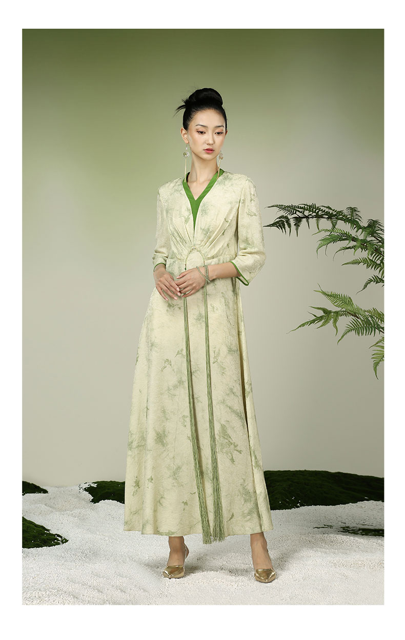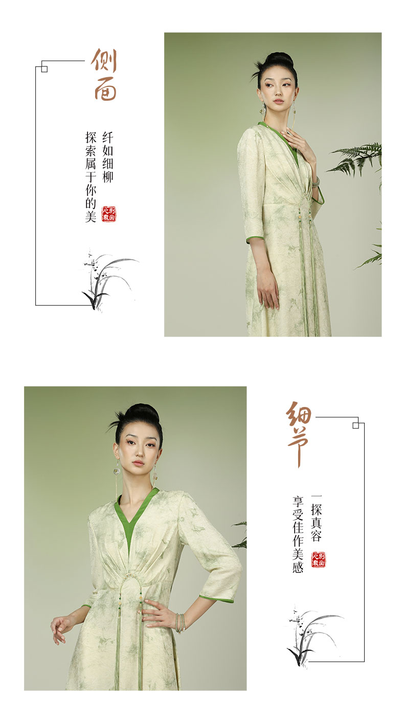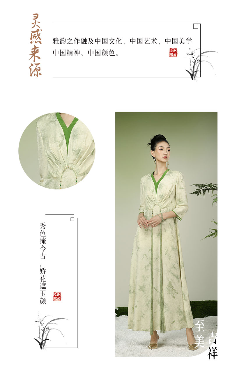 吉祥衣家新中式国风夏新款高端气质显瘦修身女装月出佼人僚连衣裙