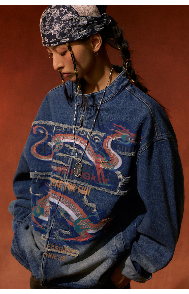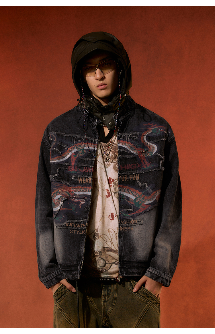 敦煌联名BJHG不计后果重磅牛仔外套男款春宽松美式复古水洗夹克女