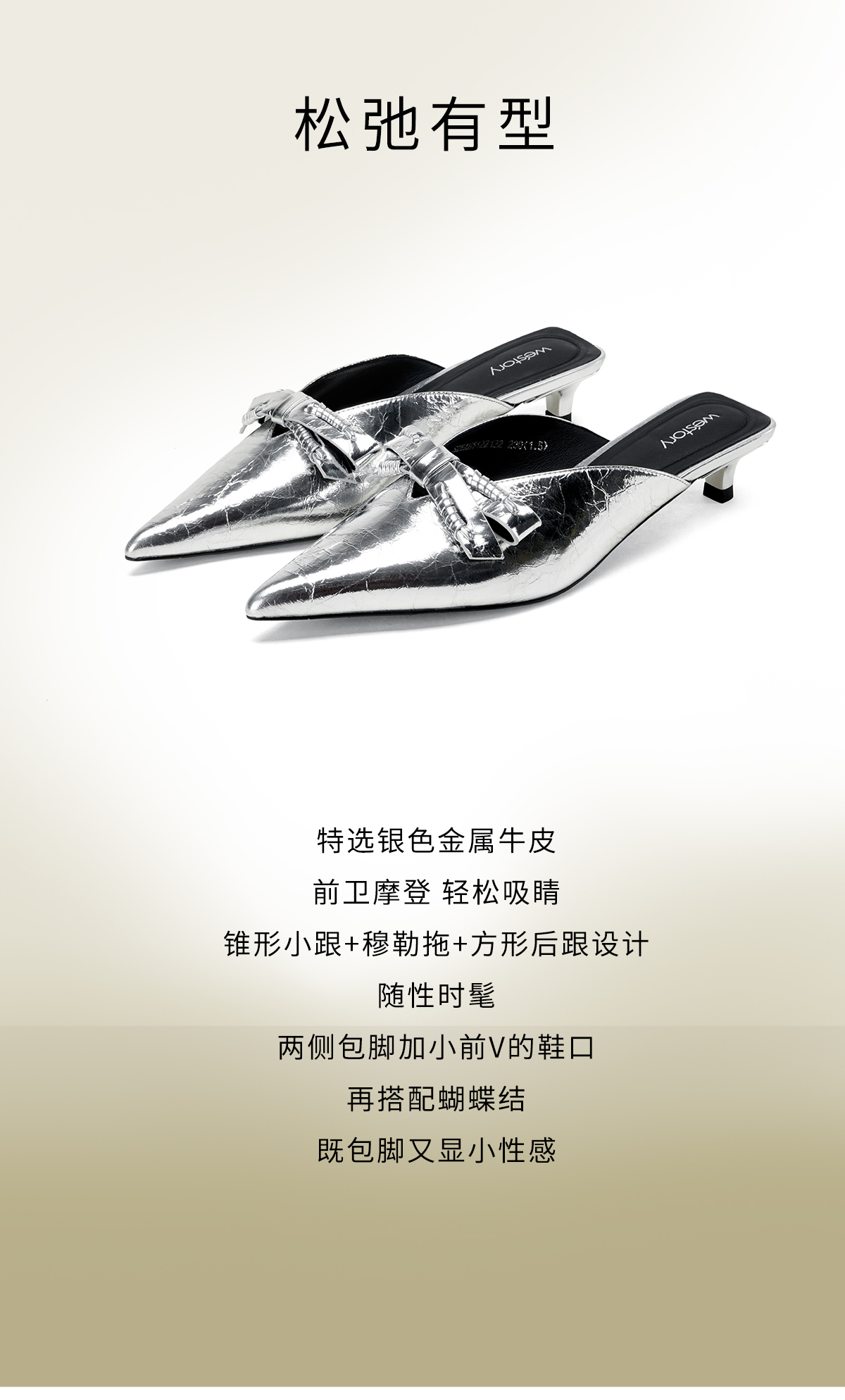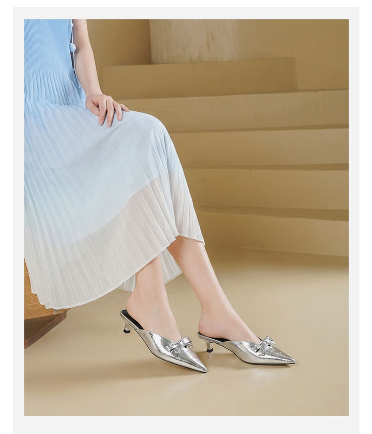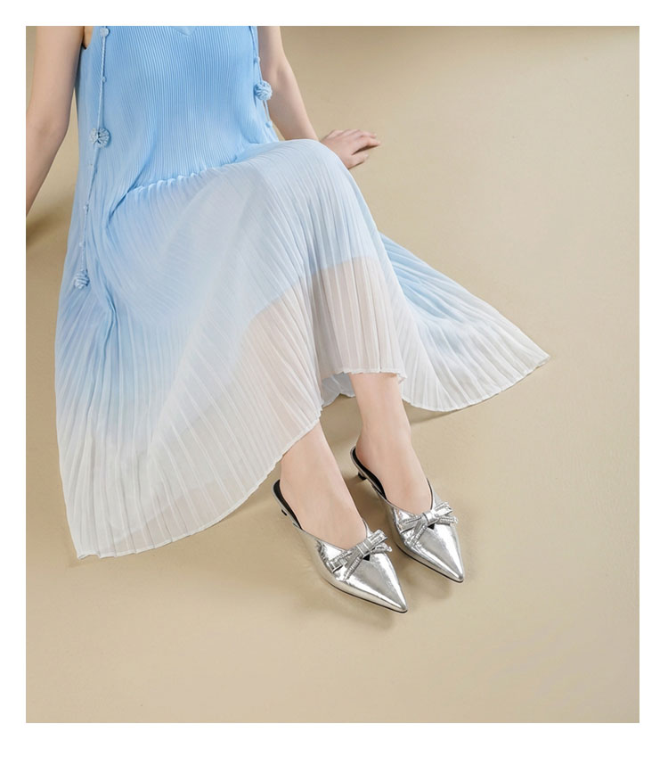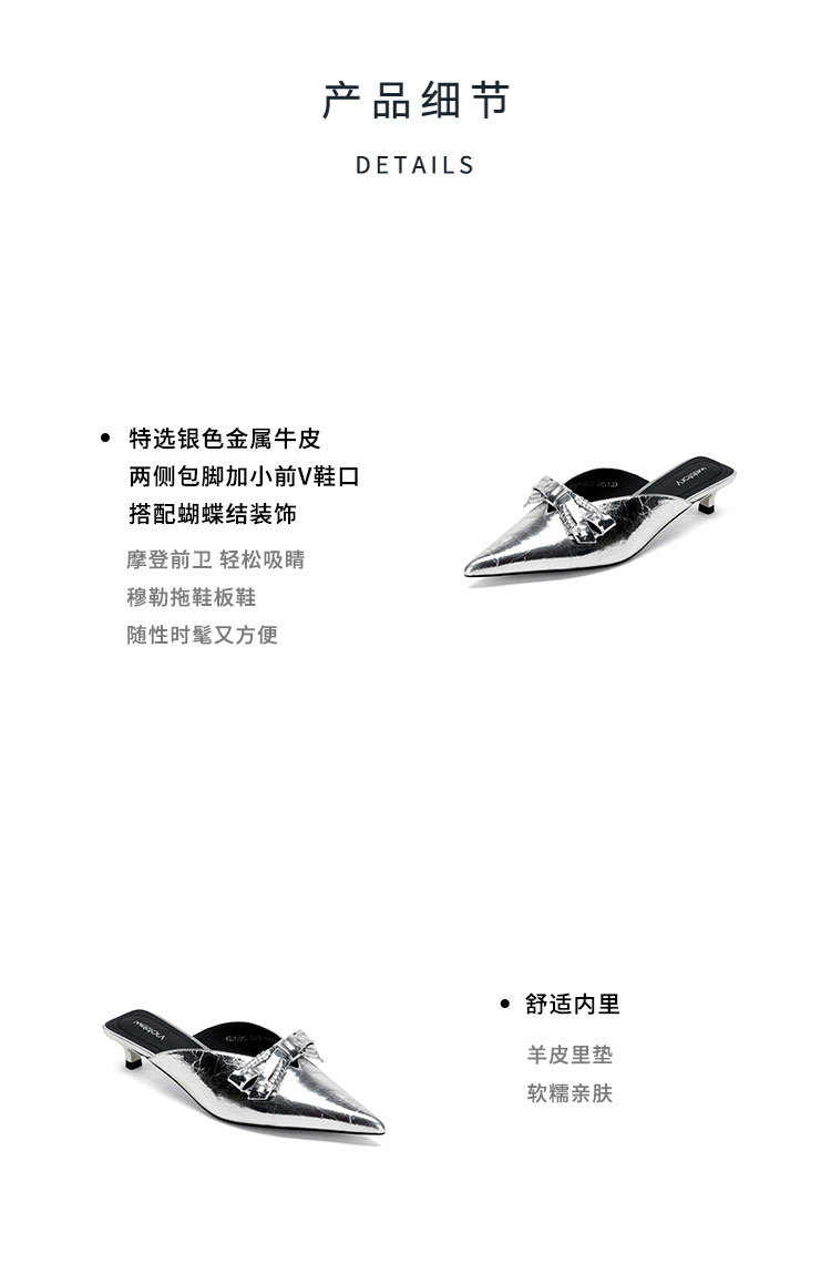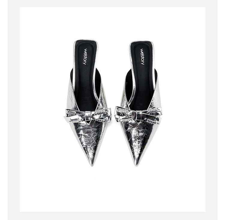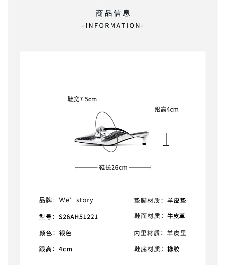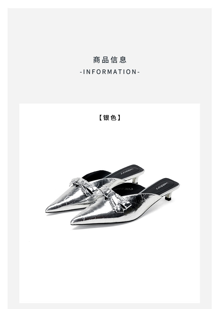 Westory2026年春季牛皮低跟尖头穆勒拖鞋休闲百搭空凉鞋S26AH51221