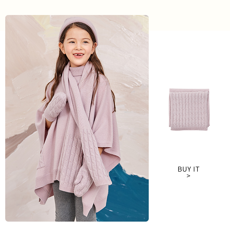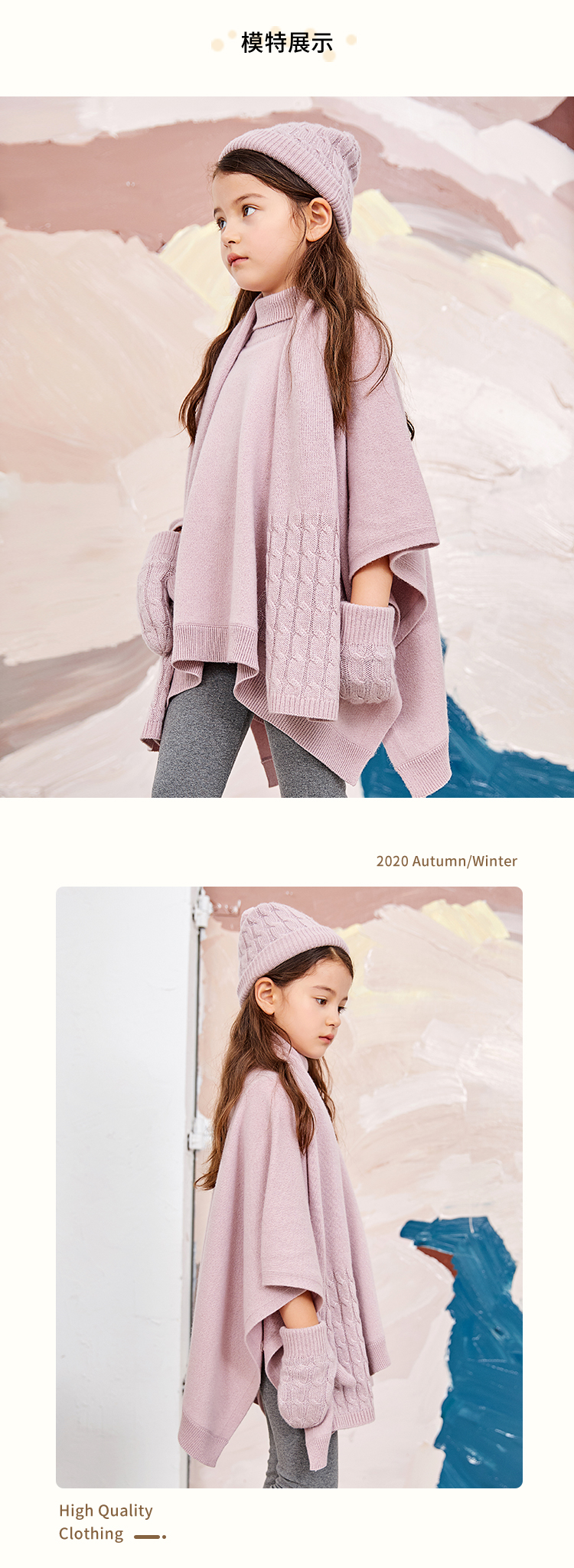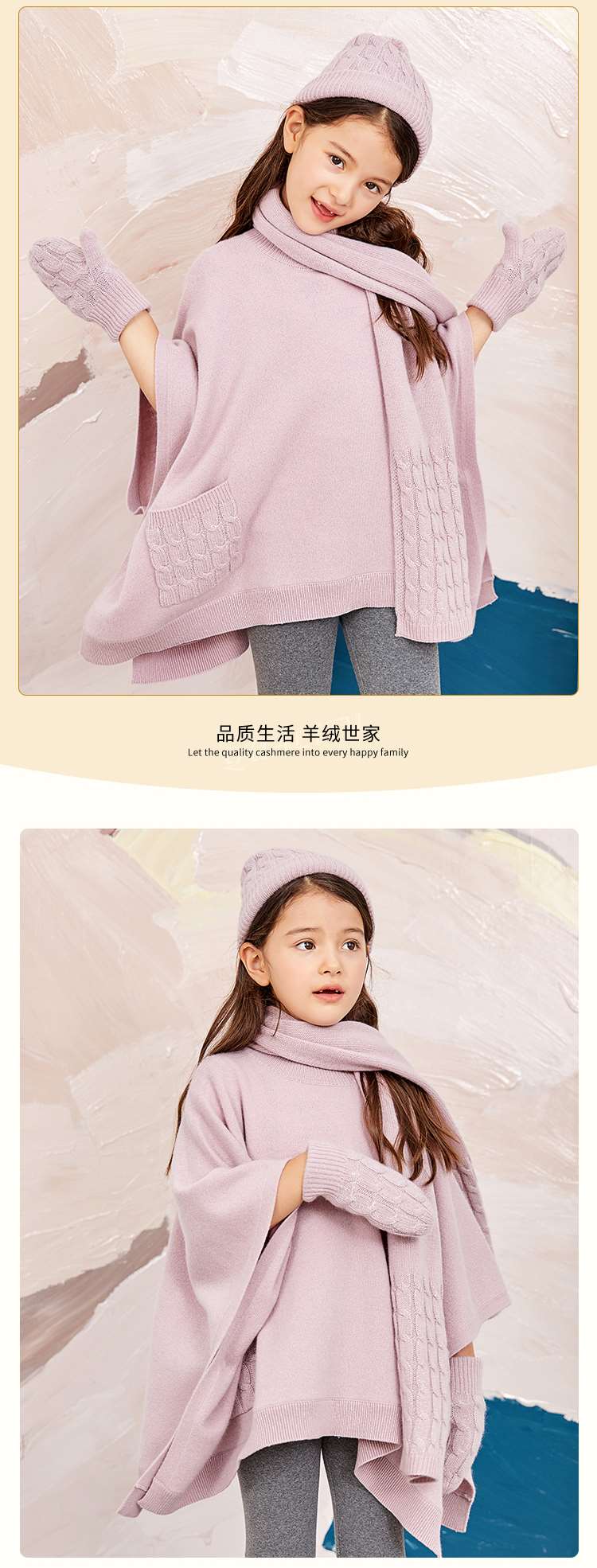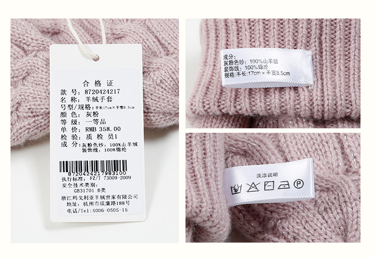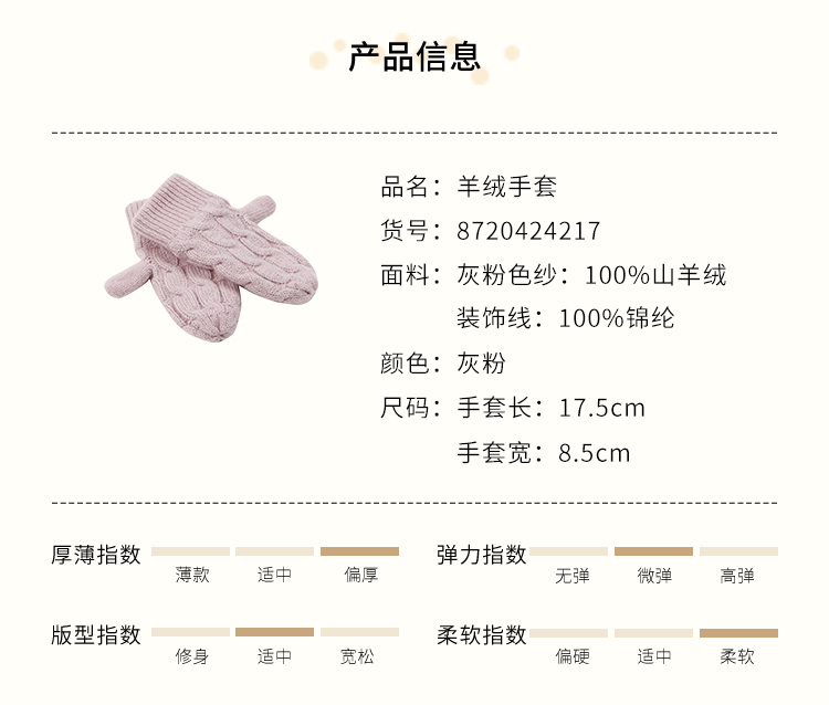 METTE羊绒世家童装100%山羊绒手套2020秋冬新品女宝偏厚保暖针织
