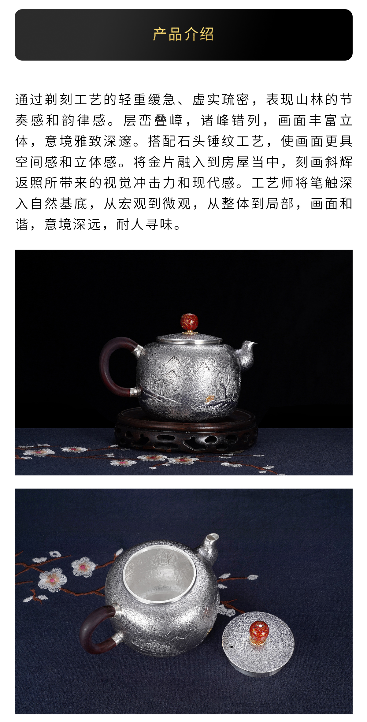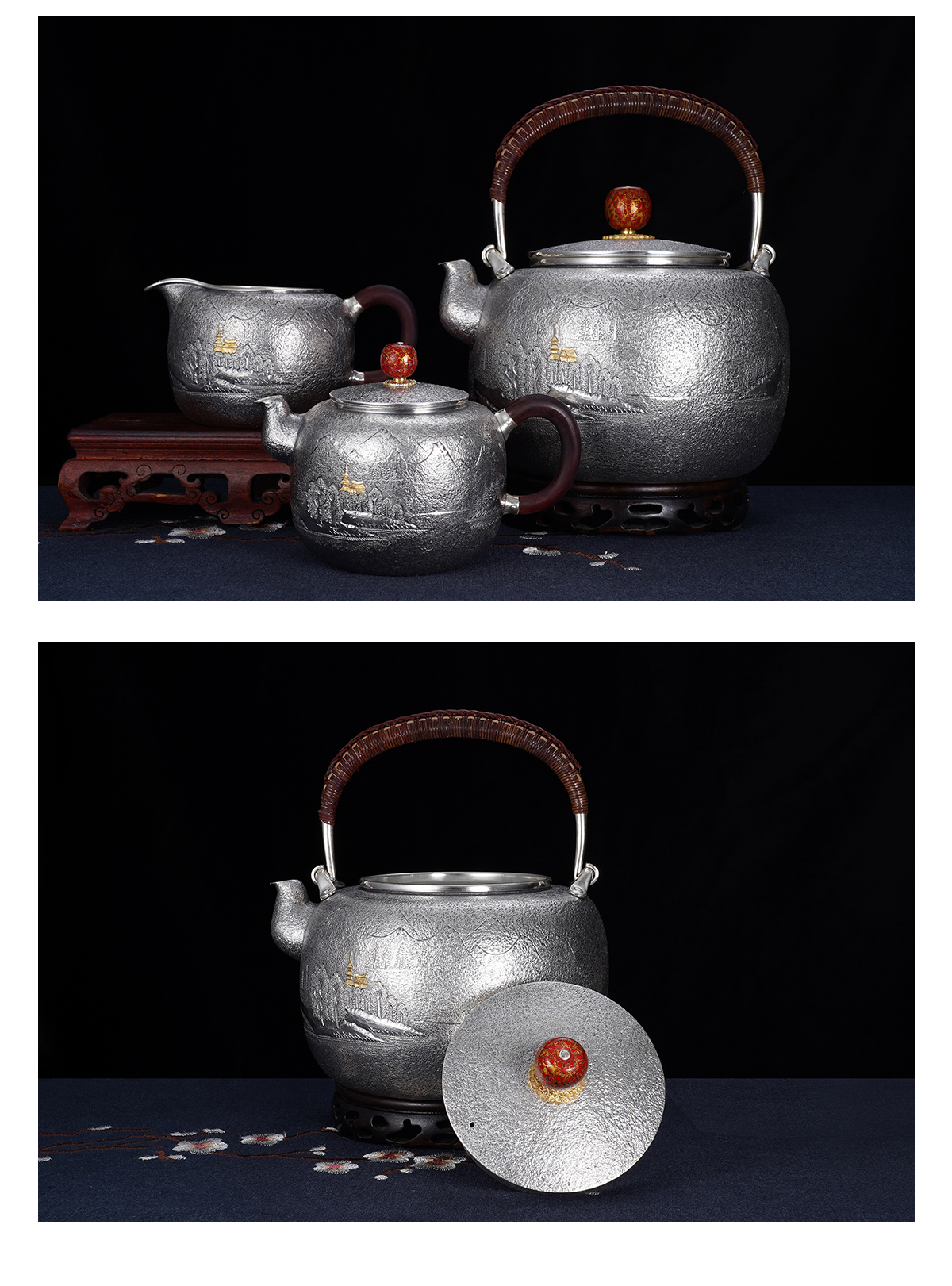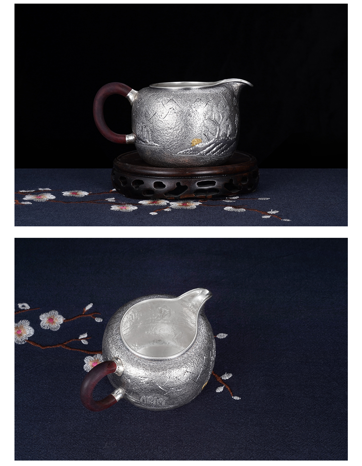 子佩集S999银【山林神秀】锤纹提梁壶小茶壶公道杯摆件茶具套装【HY005】【HY006】【HY007】2311