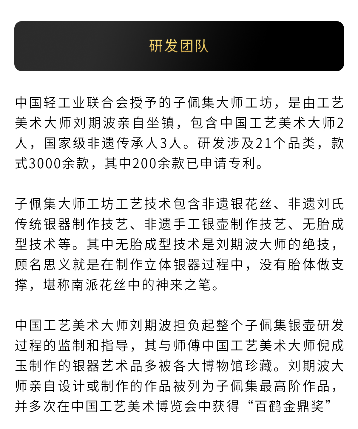 - 国家级非遗项目成都银花丝优秀传承单位 四川工艺美术行业协会副会长单位 四川传统文化促进会常务副会长单位 成都非物质文化遗产保护中心协会会员单位 国货品牌 历史400余年