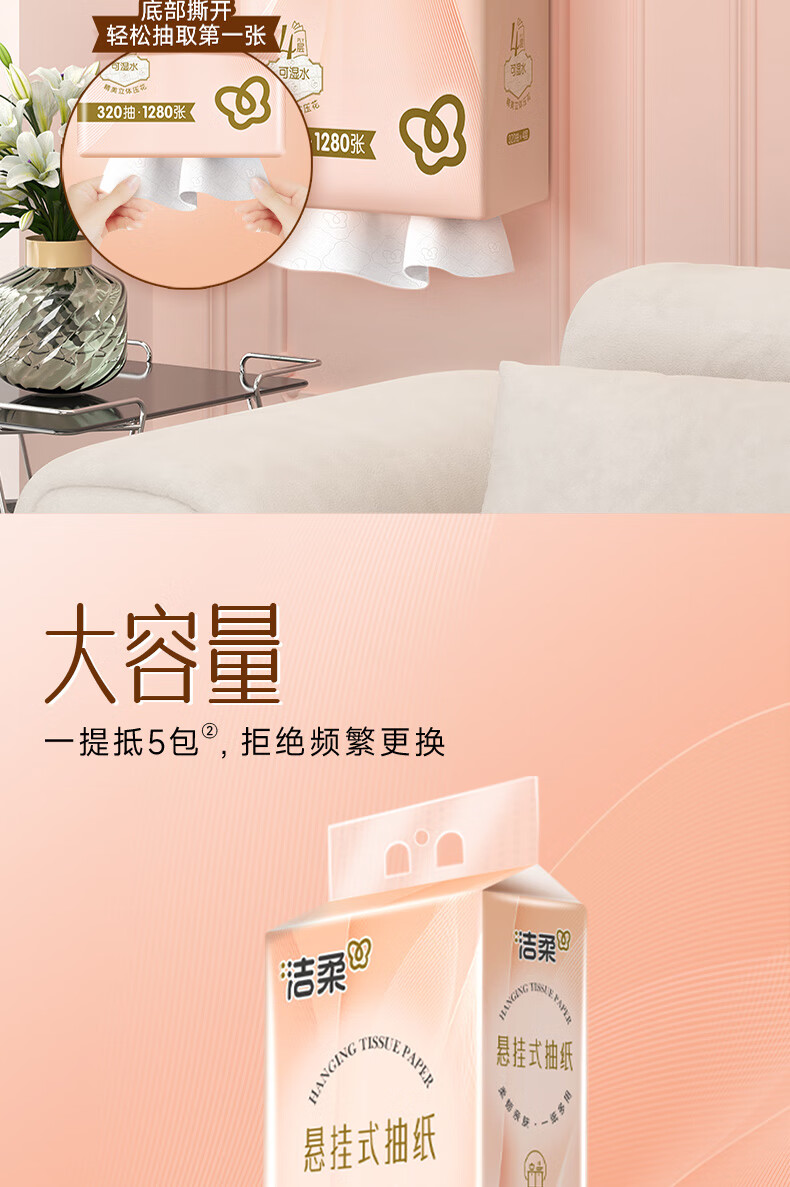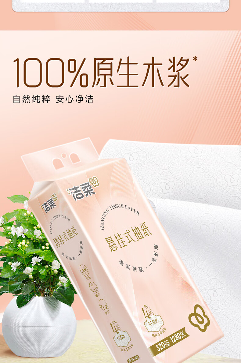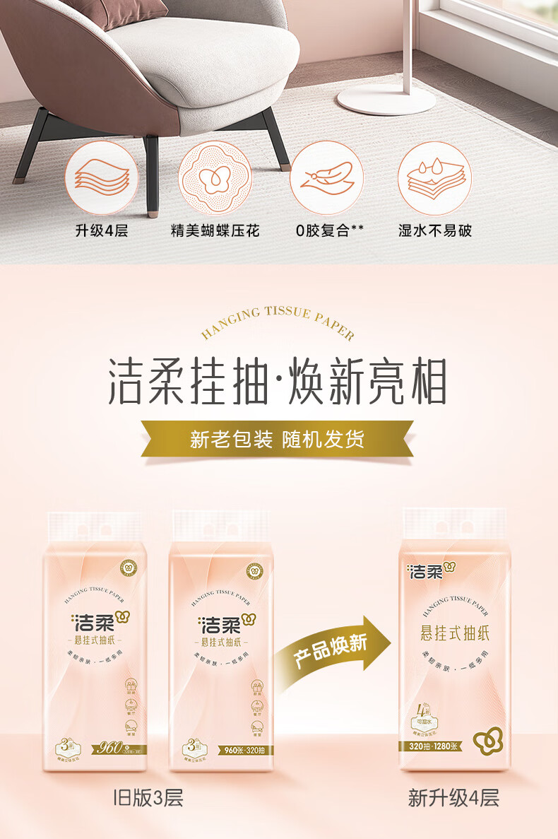 【分仓直发包邮】洁柔牌纸面巾(立体压花挂抽)320抽4层(单包装)GR226-01