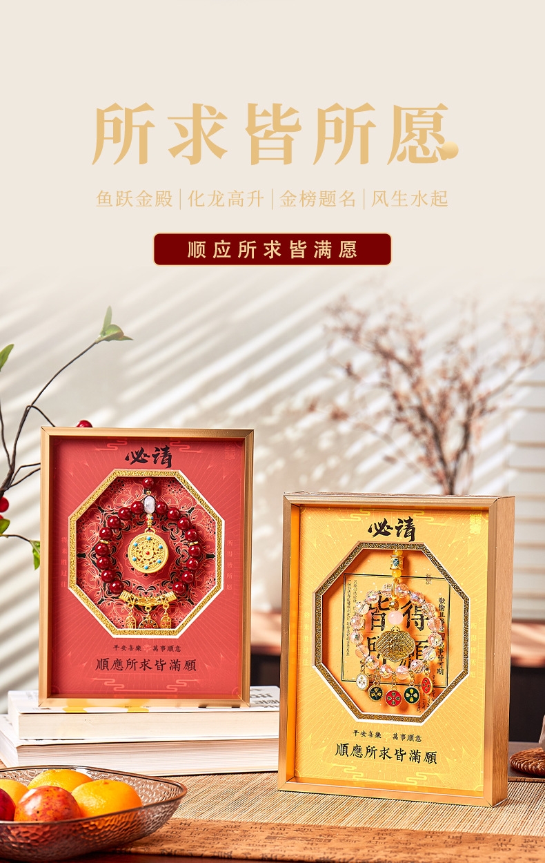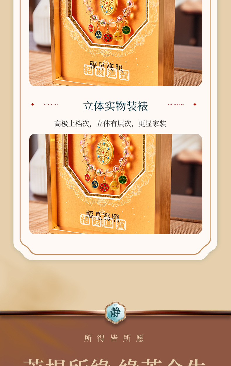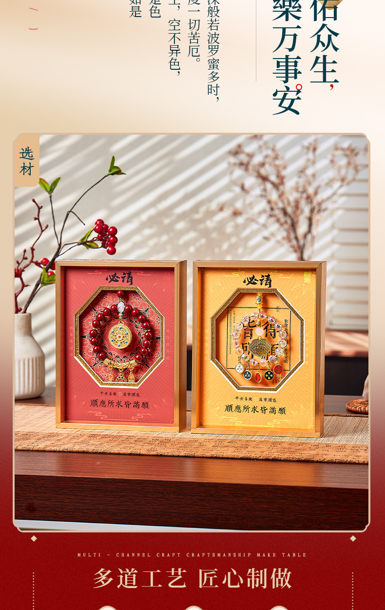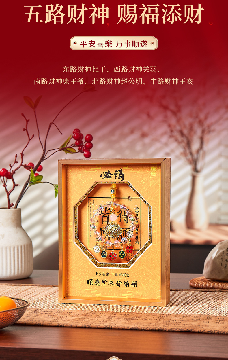 【五路财神赐褔添财❗️多道工艺匠心制做】寺庙文创用品摆台五路财神手串水晶琉璃相框摆件礼物中式伴手礼品。jb
