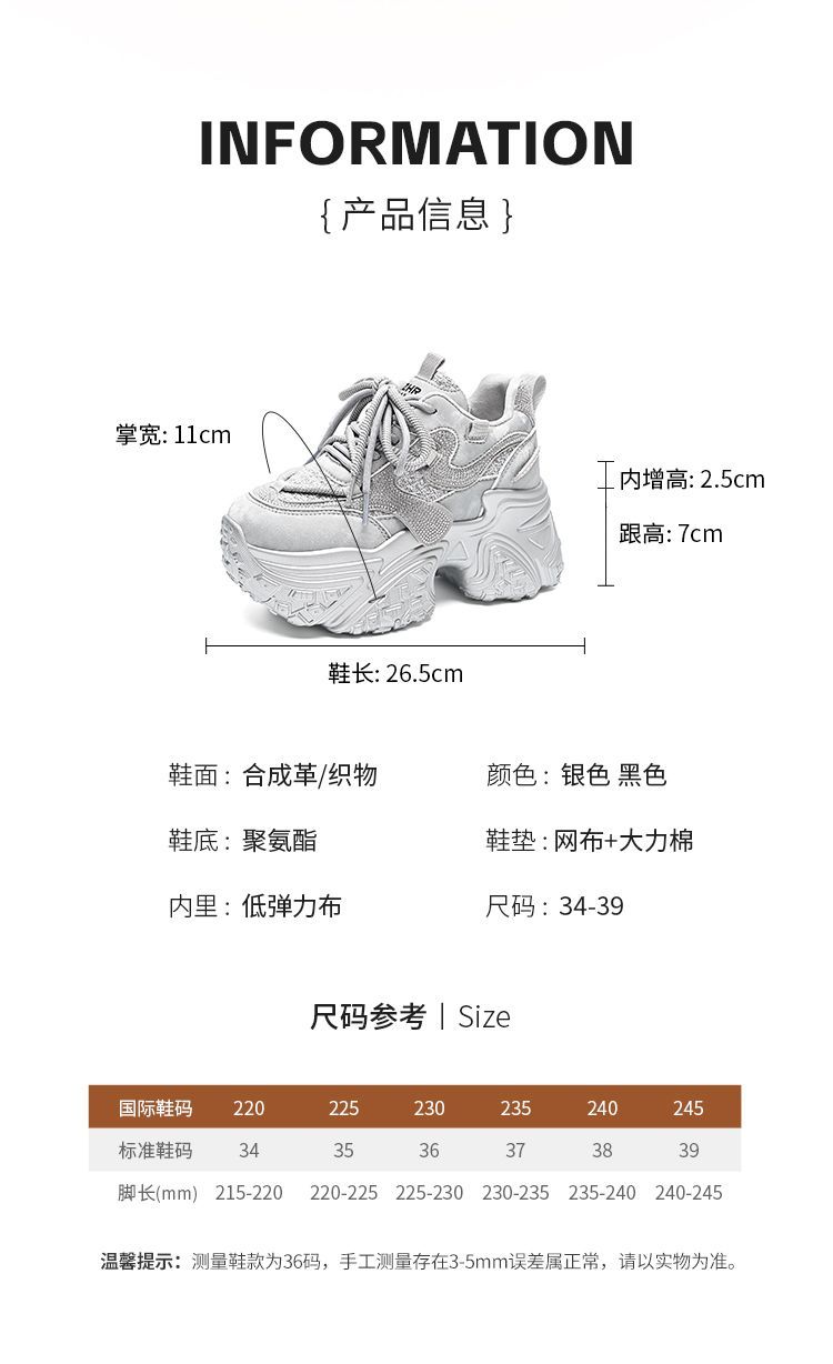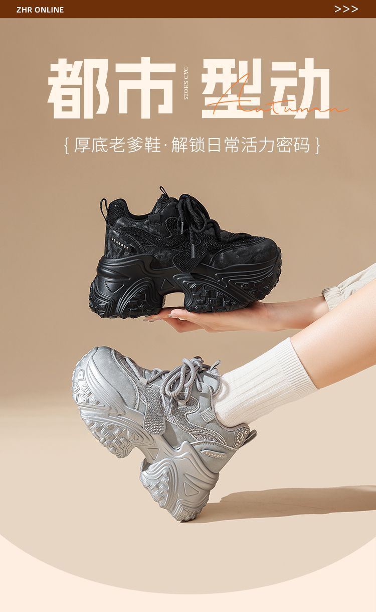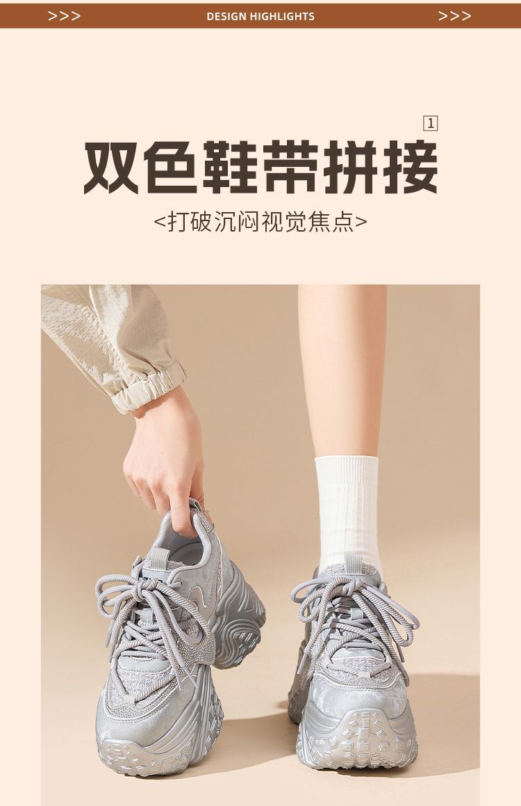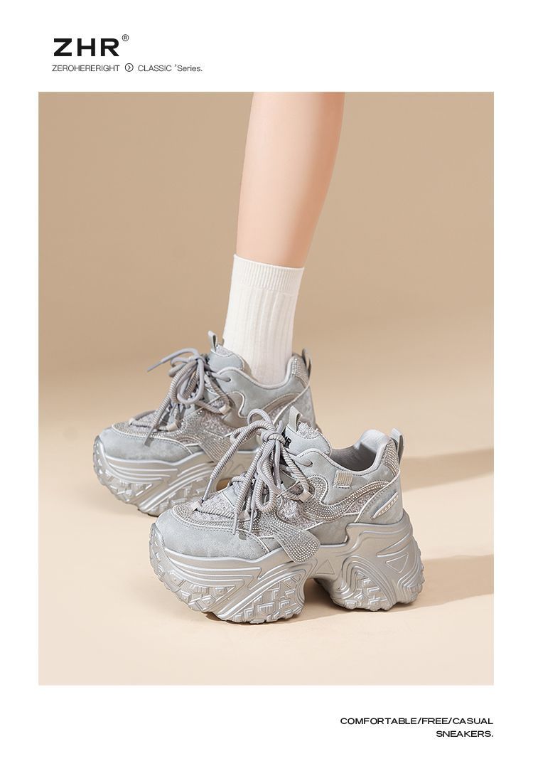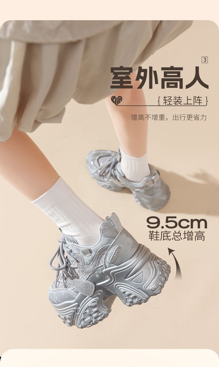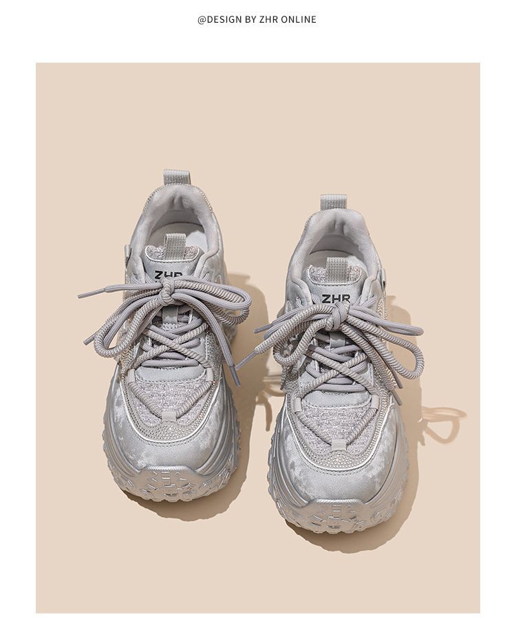 ZHR则则银色厚底老爹鞋女2026春新款小个子内增高休闲运动鞋女鞋