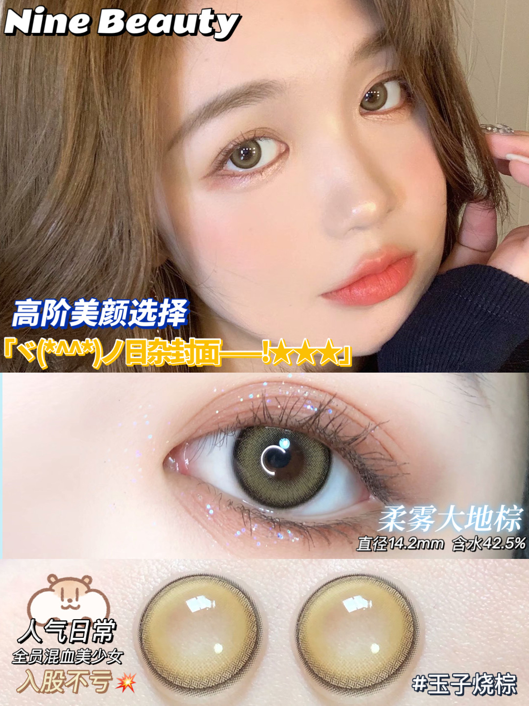 Nine Beauty D010玉子烧棕 14.2mm 韩产进口添加硅水凝胶 年抛 (NineBeauty)