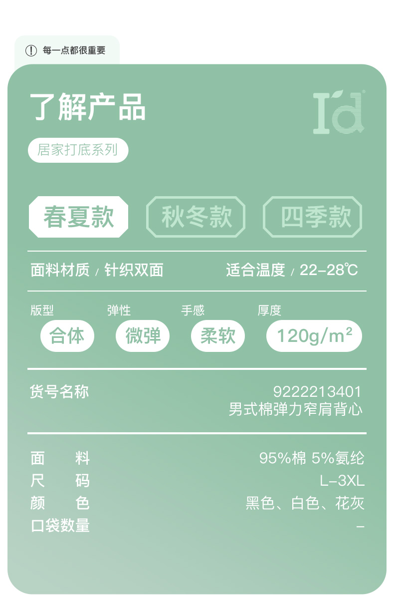 I'd爱帝男式夏季薄款棉弹力窄肩背心