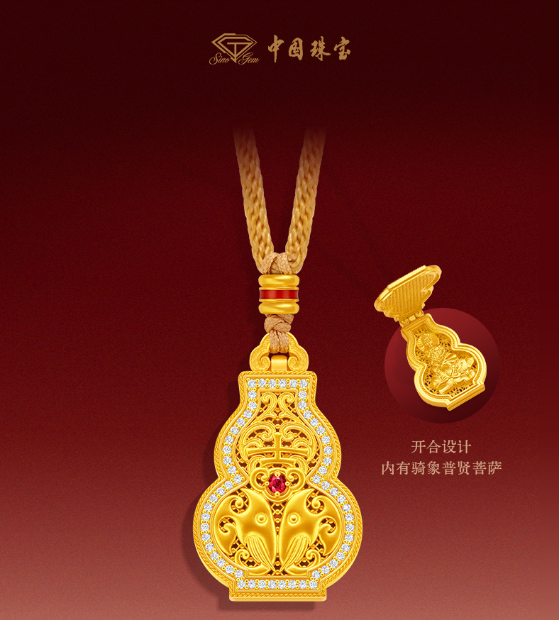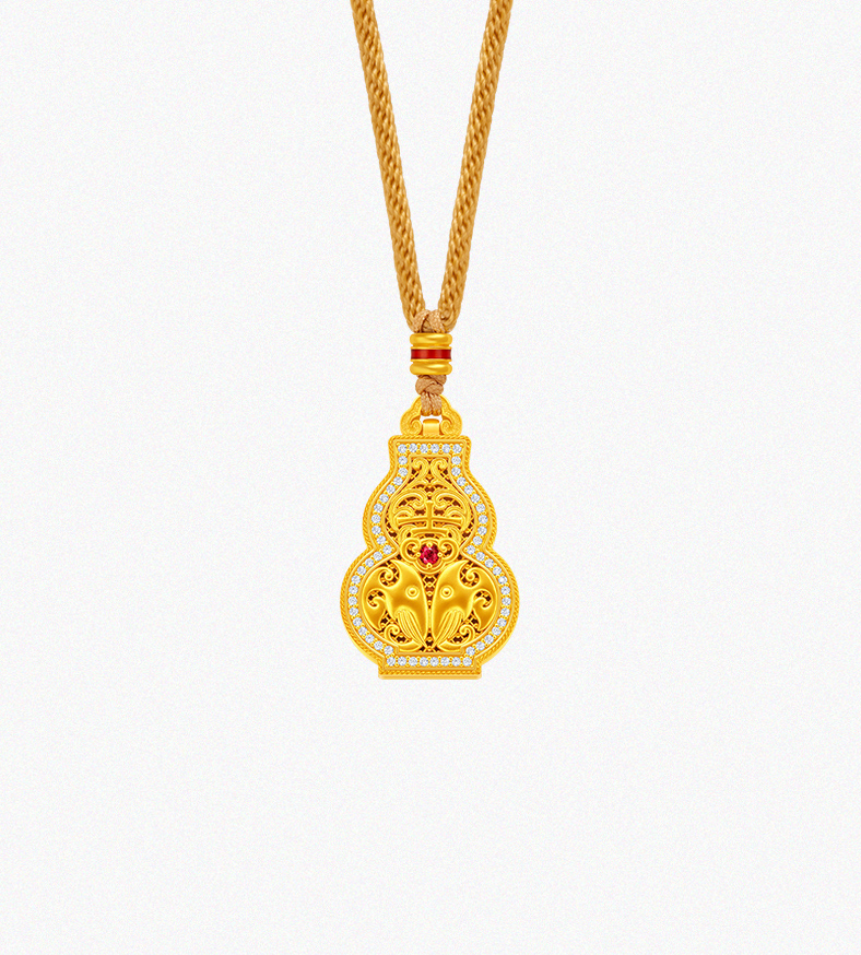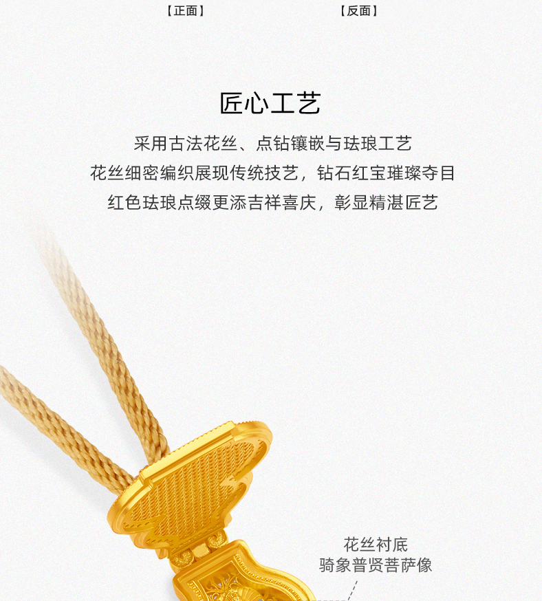 【预售】「中国印象」盛世平安足金花丝点钻吊坠 古法黄金项链