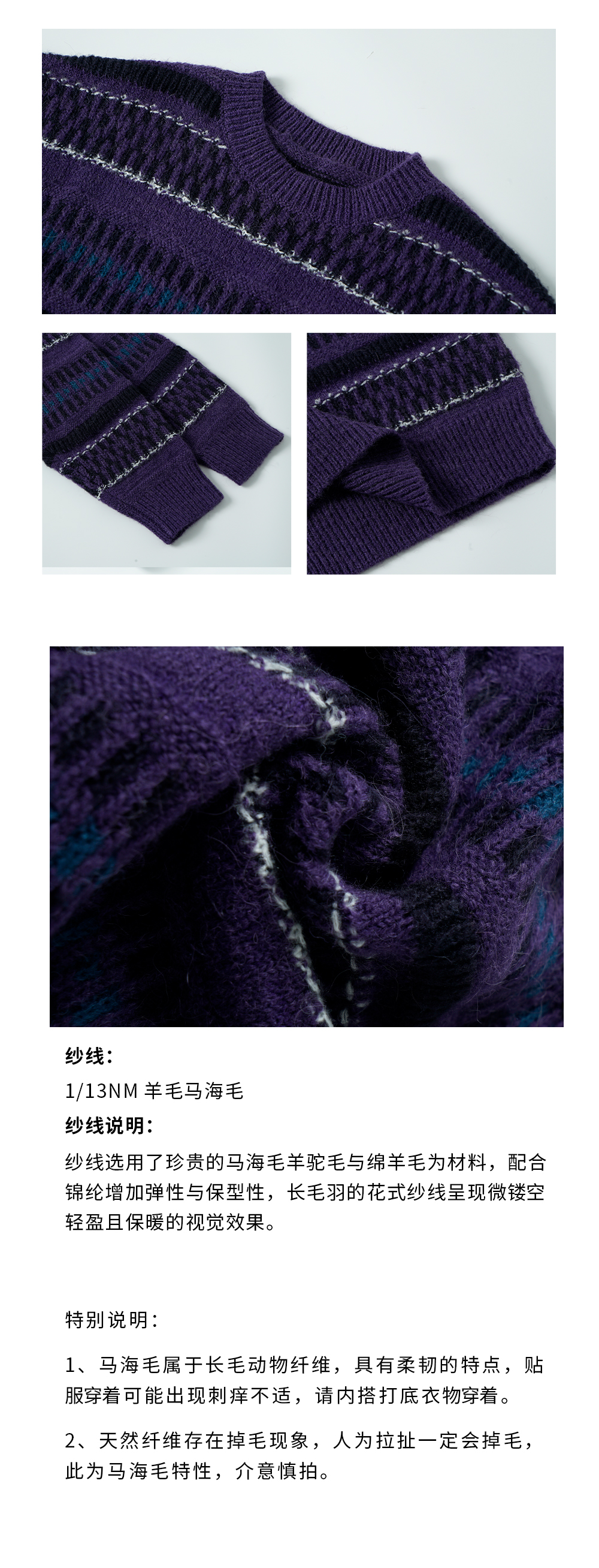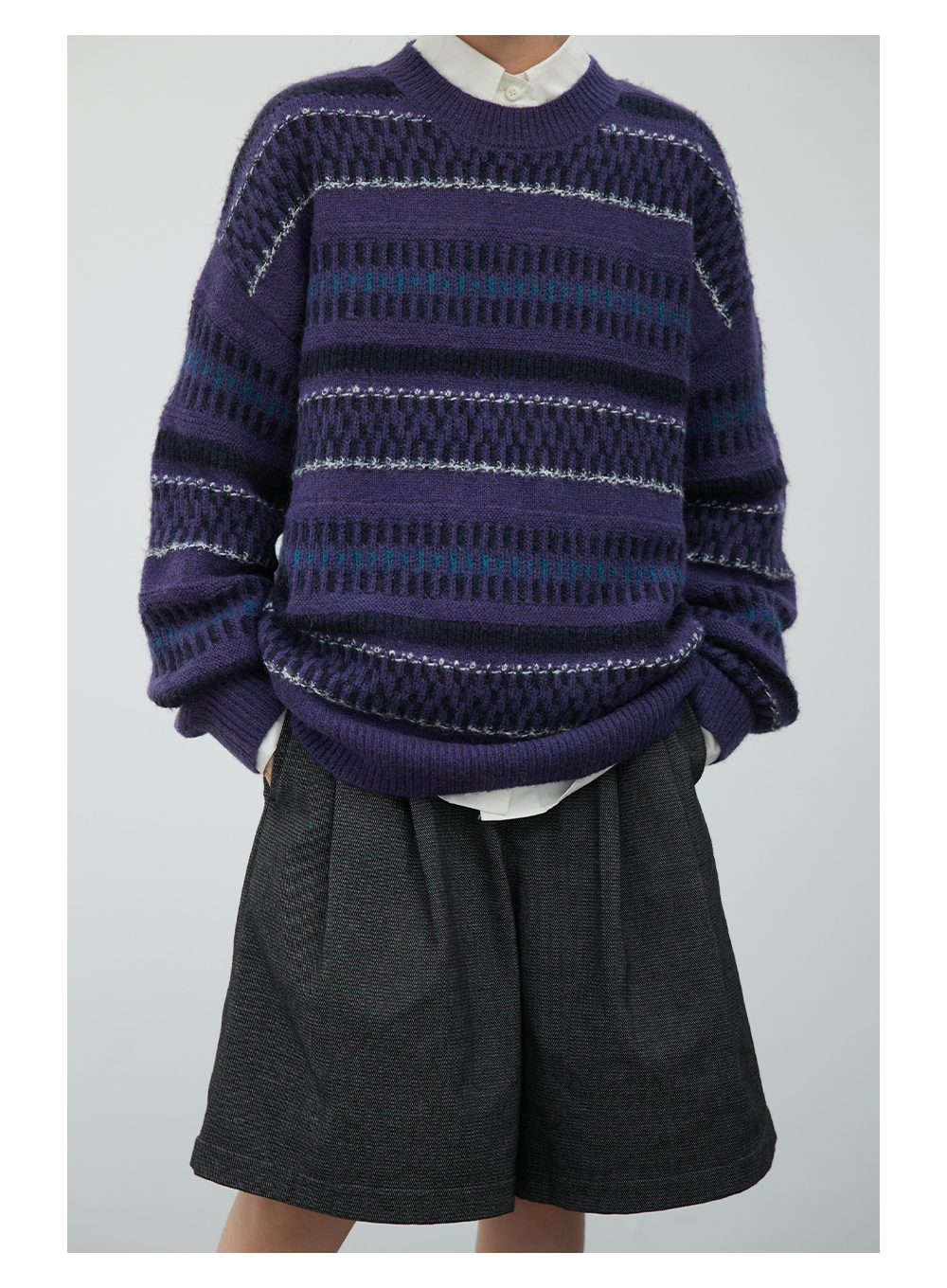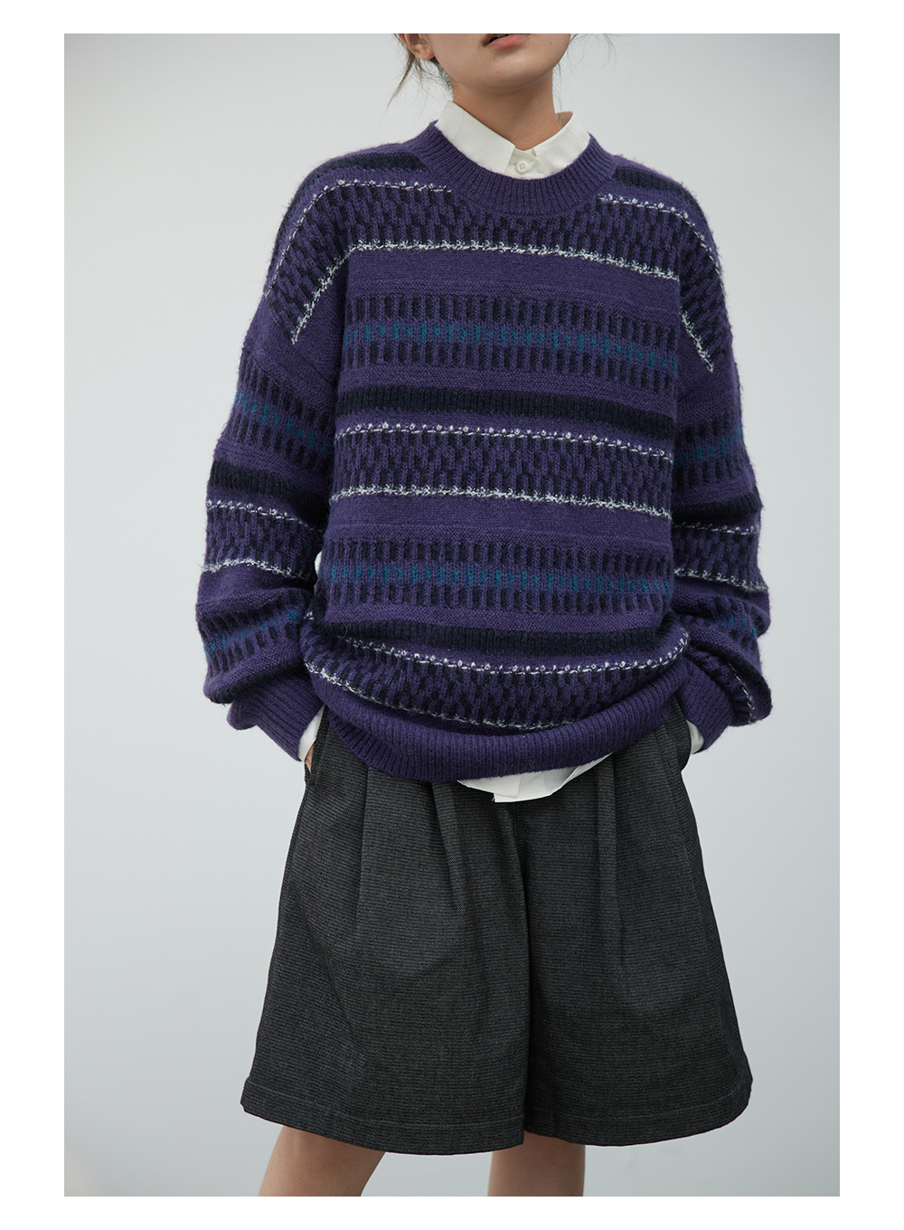 步履不停/3C13140C/圆领紫色条纹套头毛衣