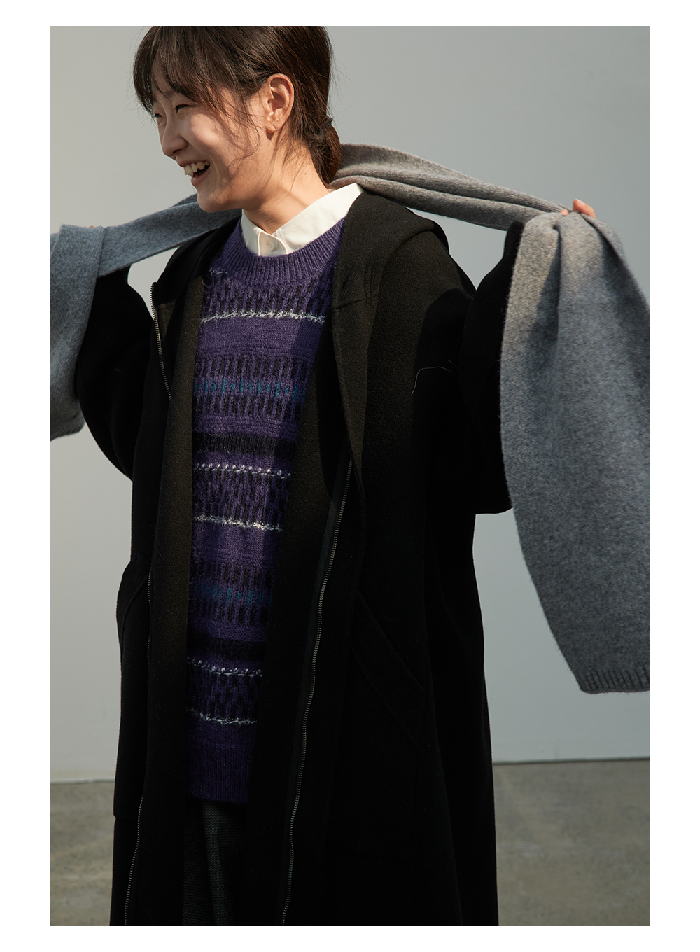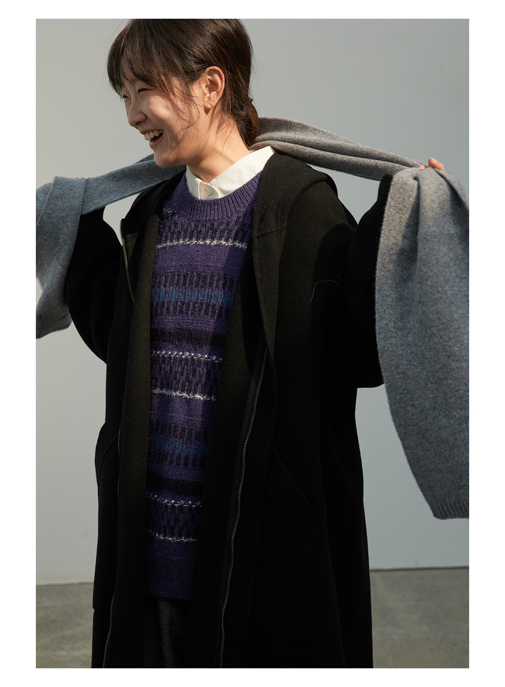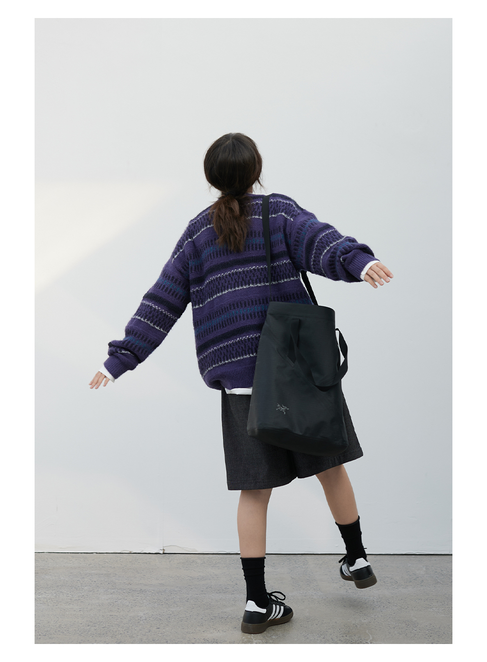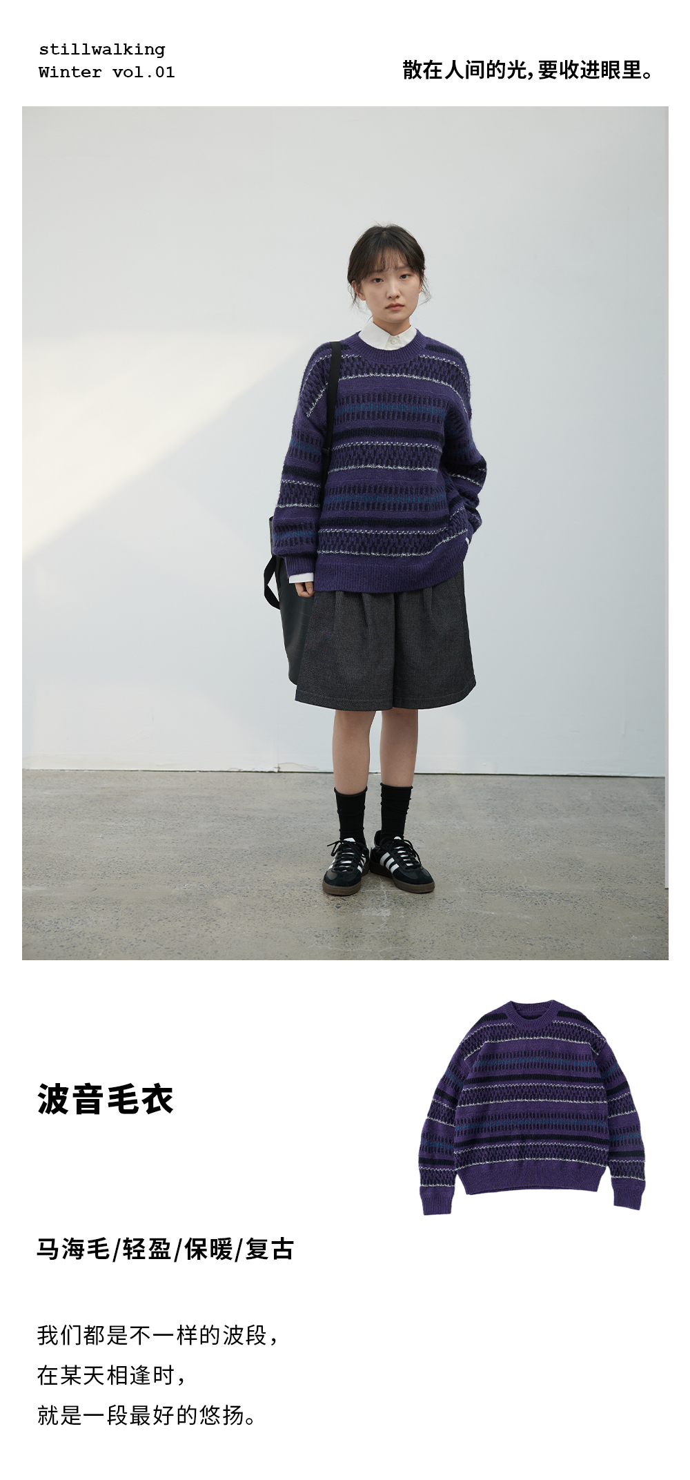 步履不停/3C13140C/圆领紫色条纹套头毛衣
