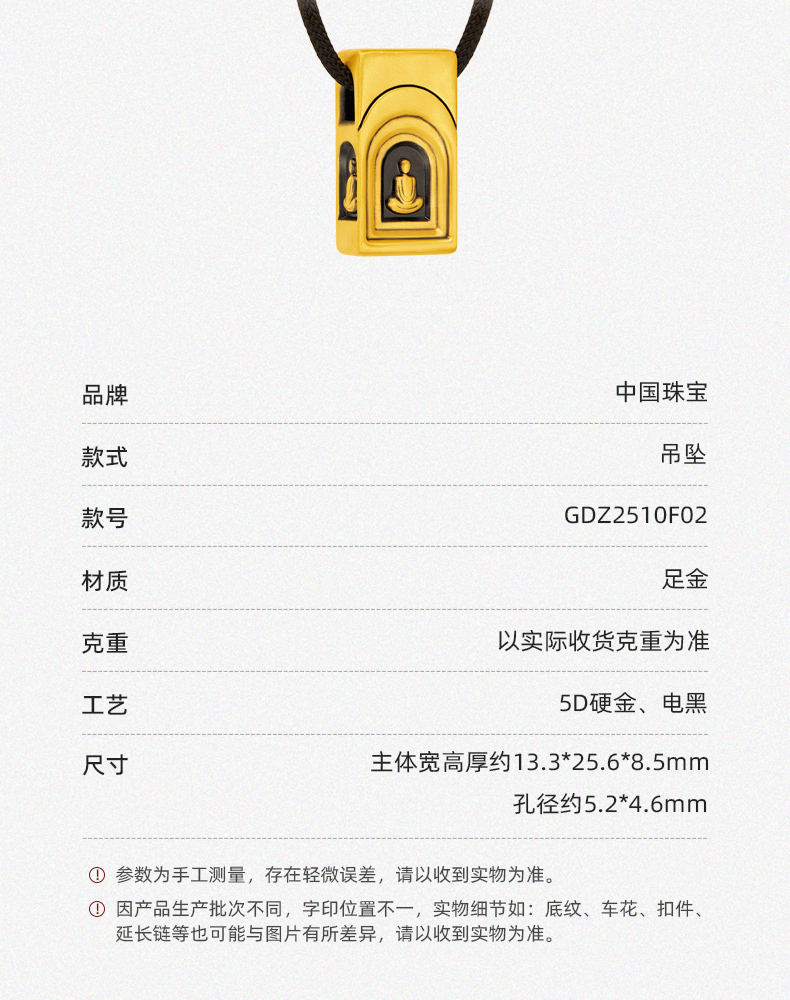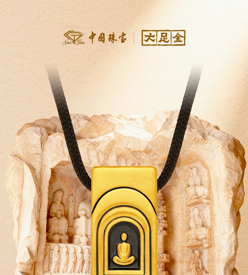 「大足金-大自在」5D硬金静悟黄金吊坠