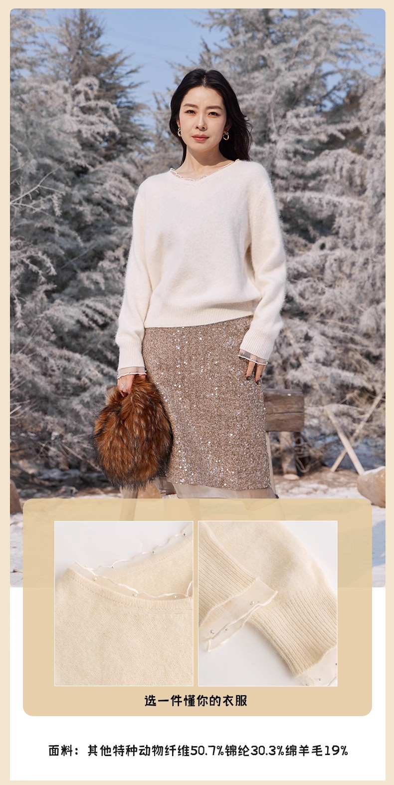【门店同款】ENJOY冬季“暖冬软糖”蕾丝花边套头针织 168099569