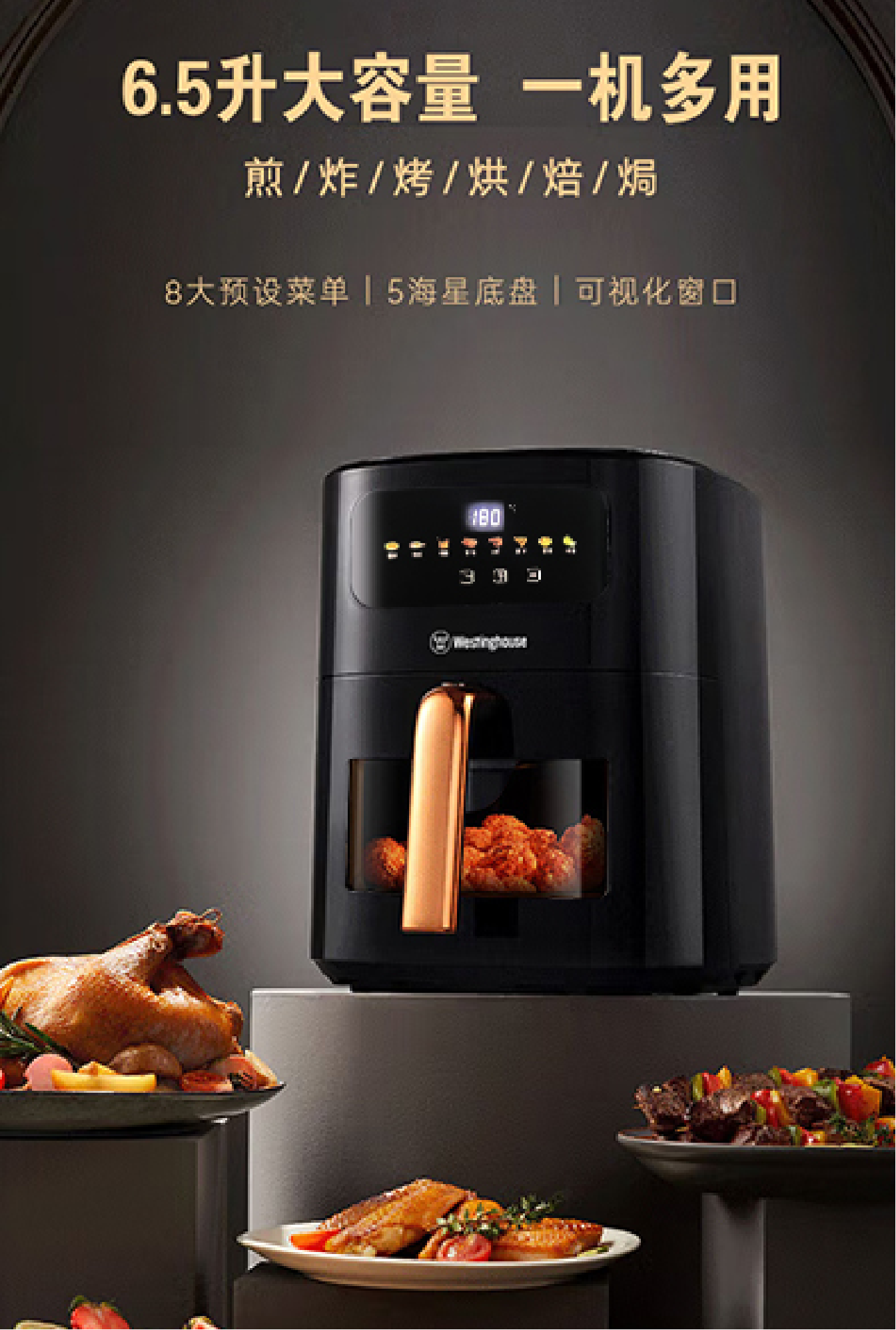 【一件包邮】多功能空气炸锅 WAF-A168/6.5L 寸可视化窗口,随时查看食材情况;甘肃/青海/内蒙古/新疆/西藏/宁夏/海南/港澳台不发货