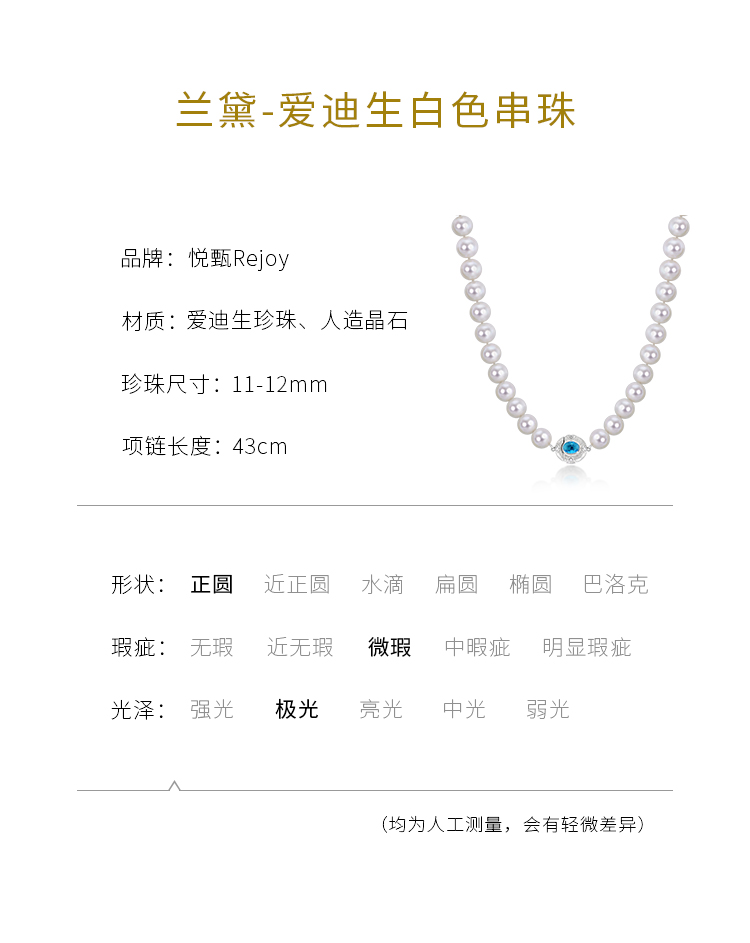 【微信小店】悦甄 爱迪生淡水珍珠白色项链11-12mm 兰黛