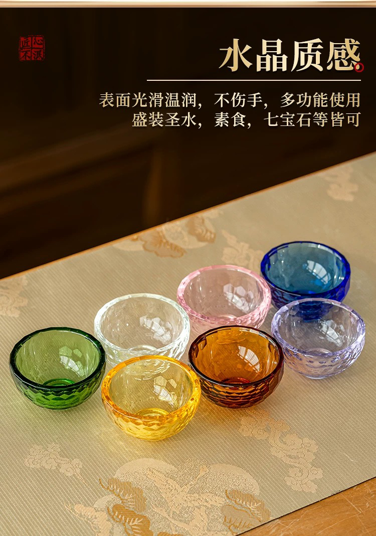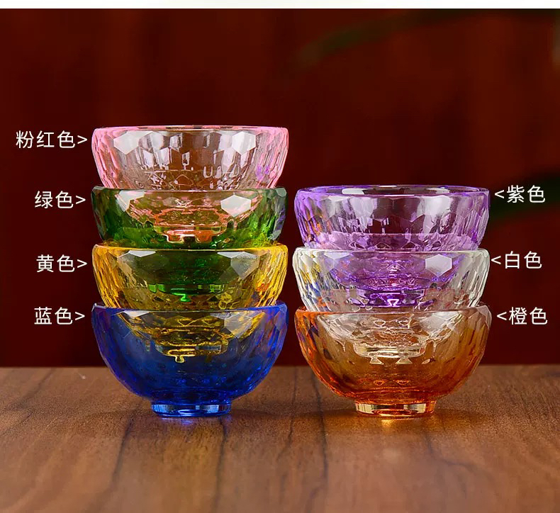 供水杯用品杯七彩玻璃七供水碗佛前家用圣水杯八供摆件