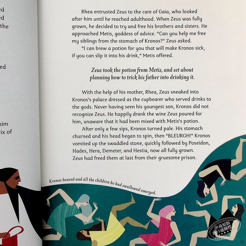书里的名义专题页深入神话世界,提供神的简介。参考部分则提供了关键的背景信息,比如古希腊的故事和神话中的神奇动物,以及发音指南。《希腊神话》是完美的礼物,封面上有箔和美丽的插图。孩子们会喜欢自己探索这些故事,或者将其作为睡前故事。这本书将被永远珍藏。