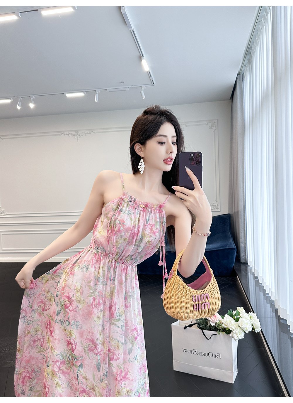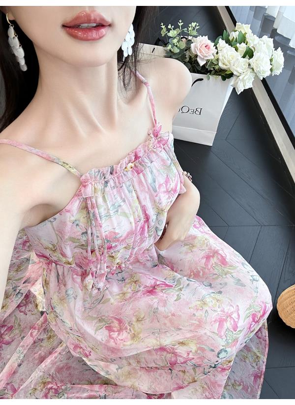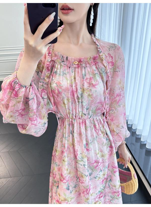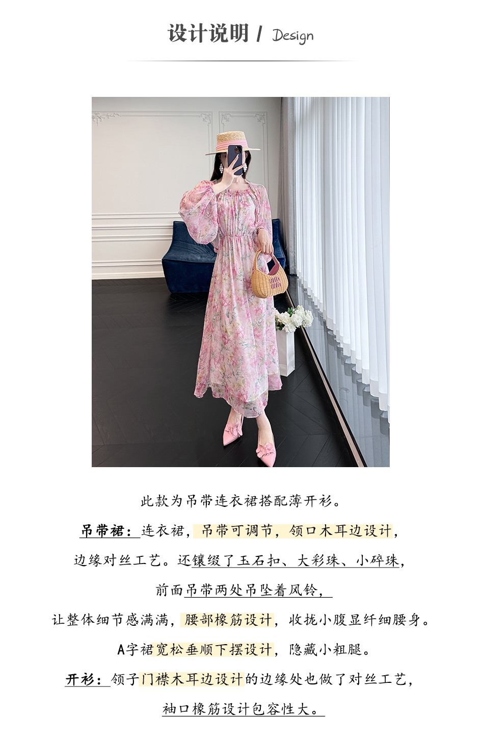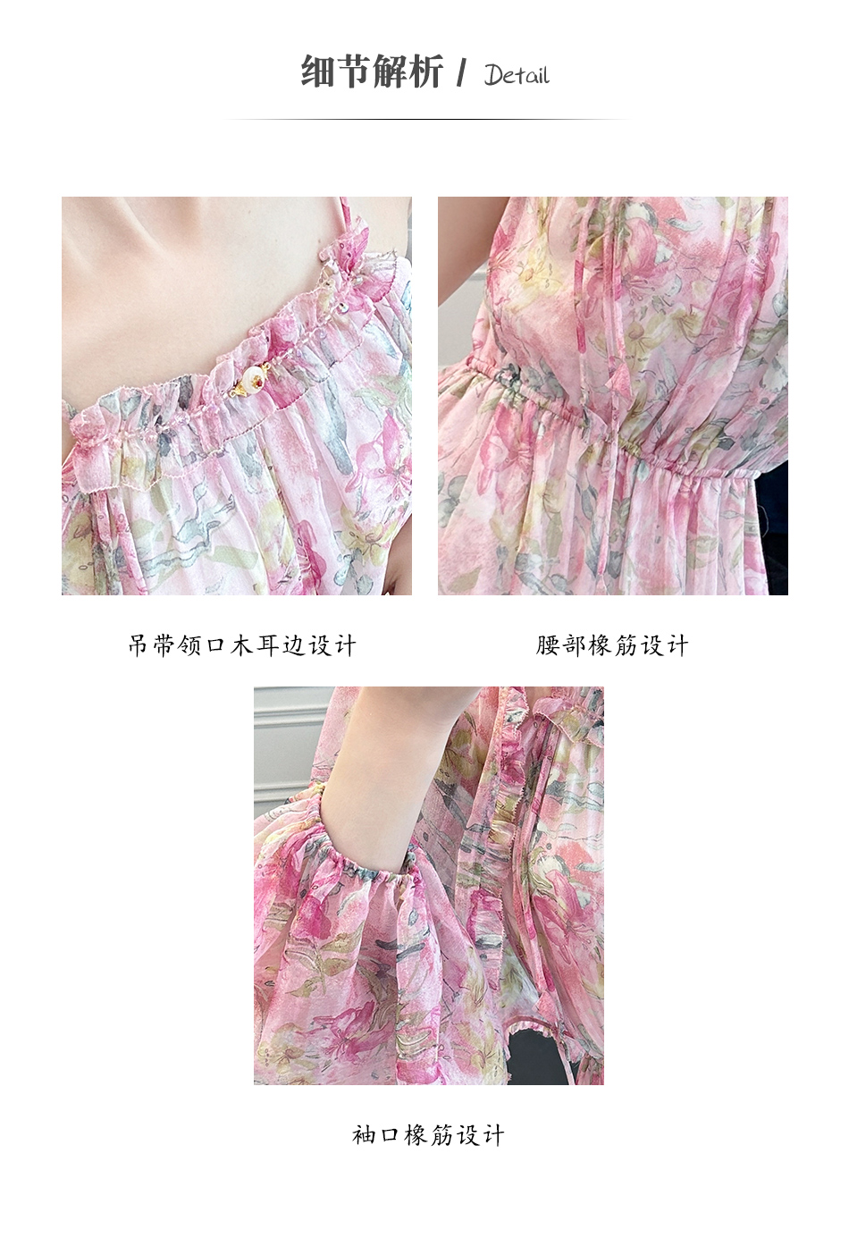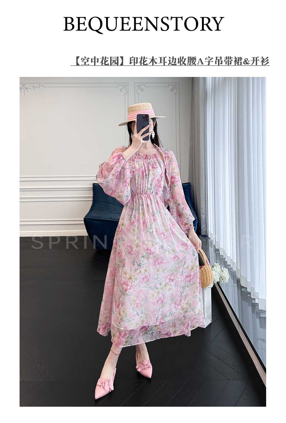 BeQueenStory【空中花园】定制印花轻薄木耳边收腰A字吊带裙&开衫