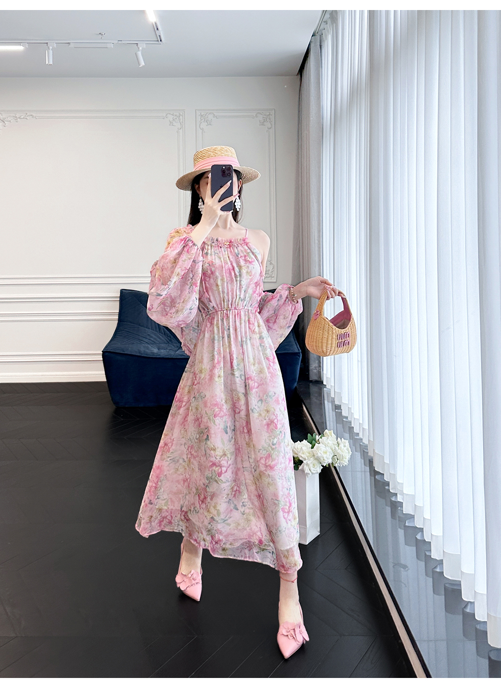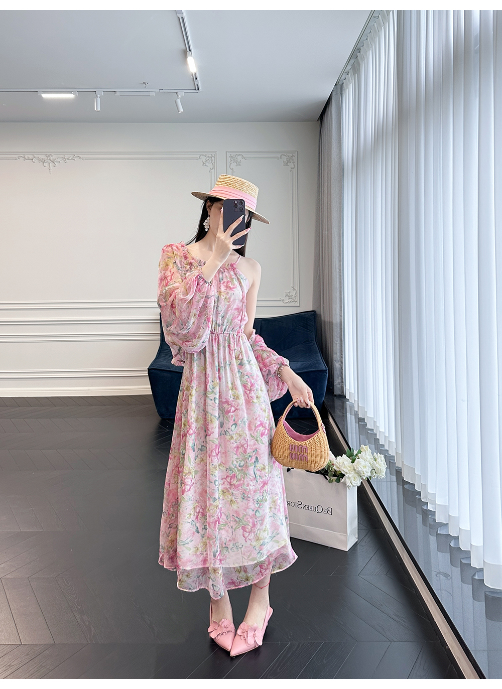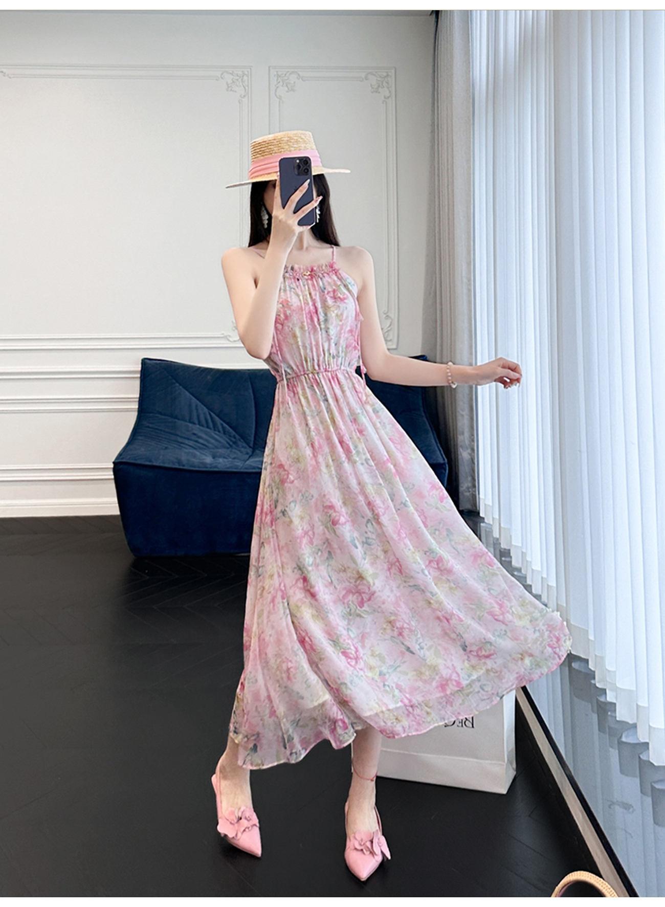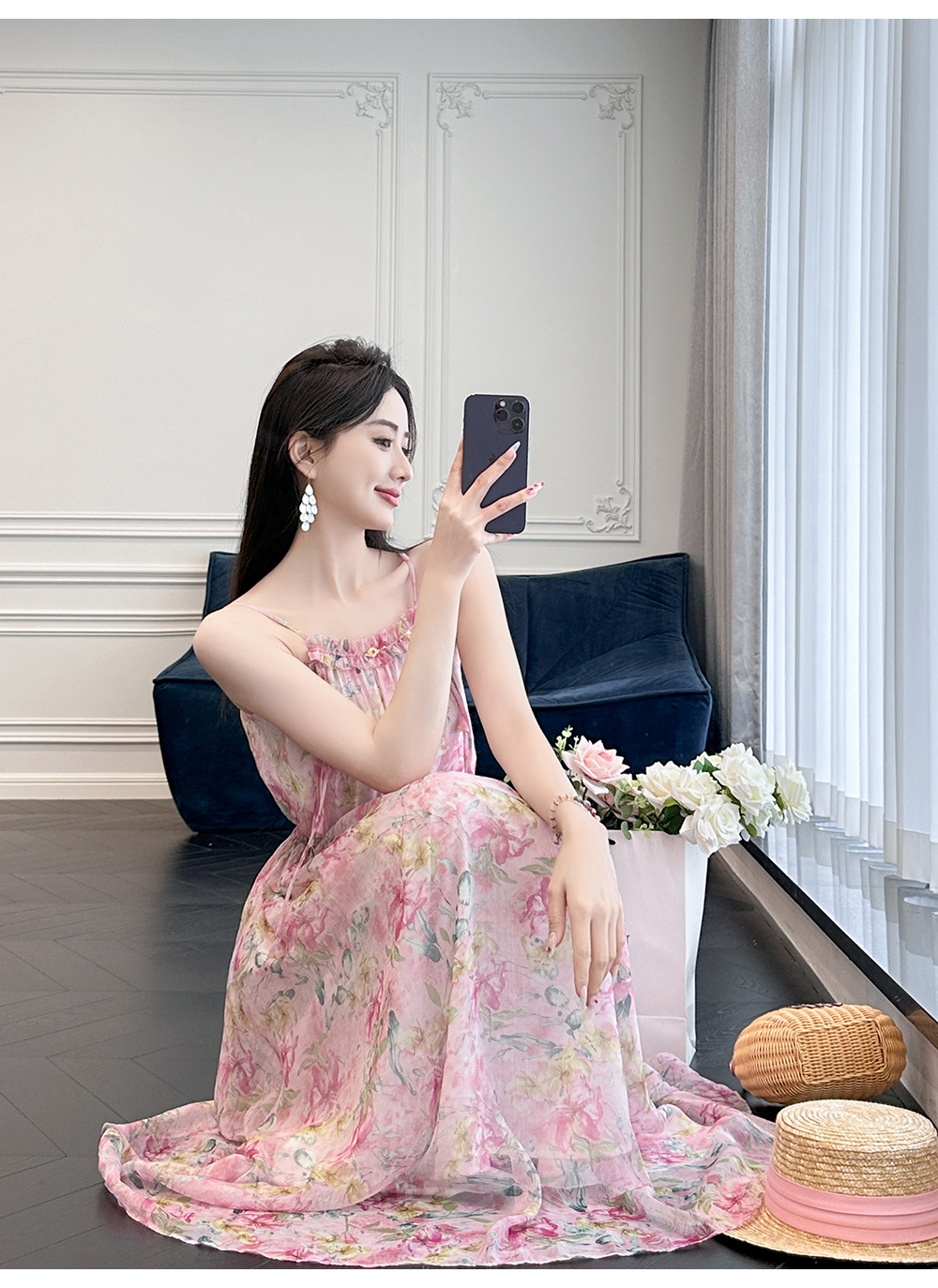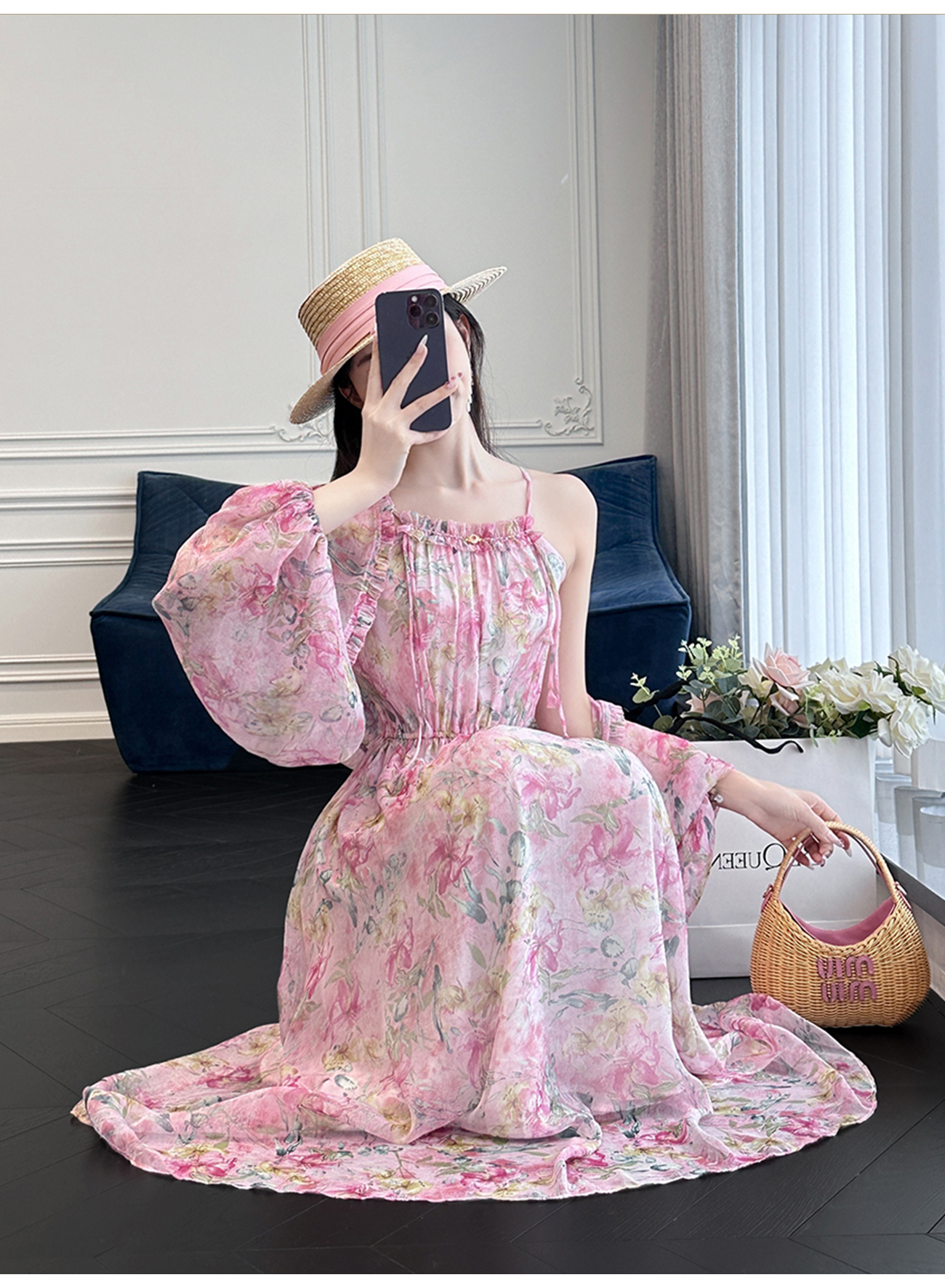 BeQueenStory【空中花园】定制印花轻薄木耳边收腰A字吊带裙&开衫