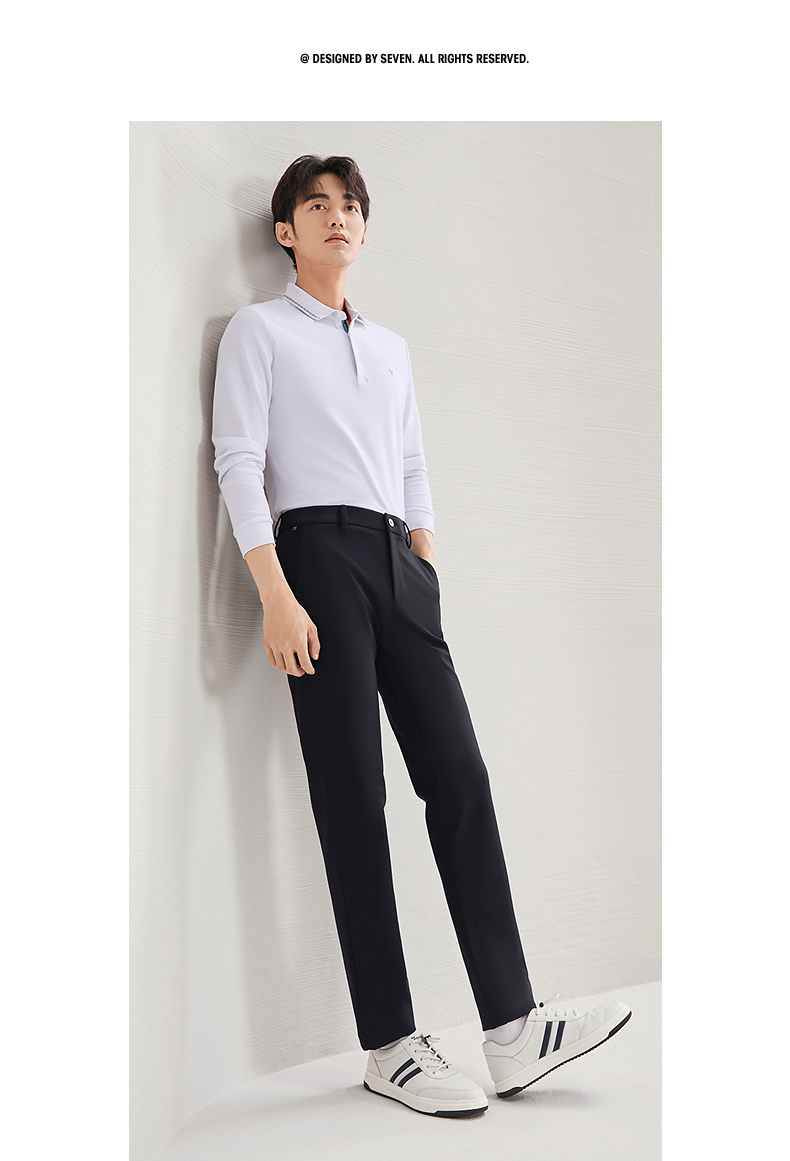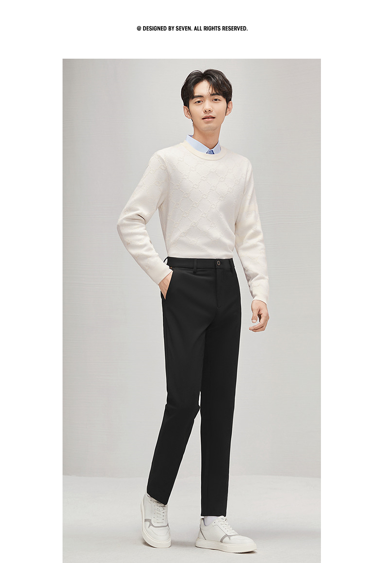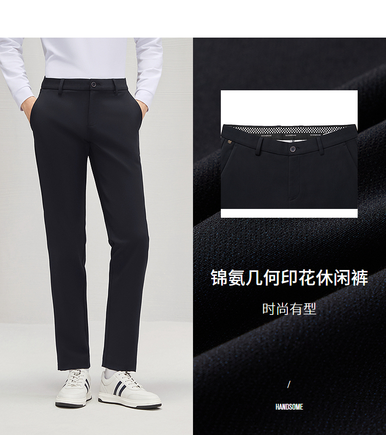 柒牌男装休闲裤男秋冬2024新款时尚百搭几何印花男士修身直筒长裤 127H70650
