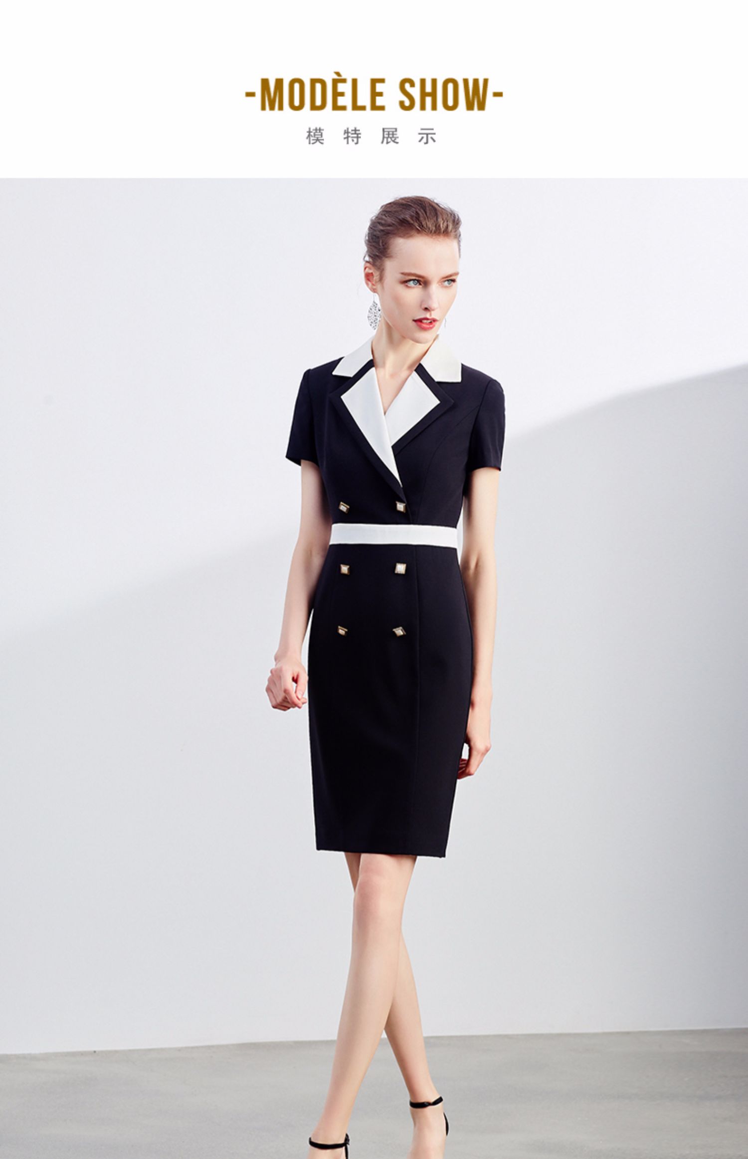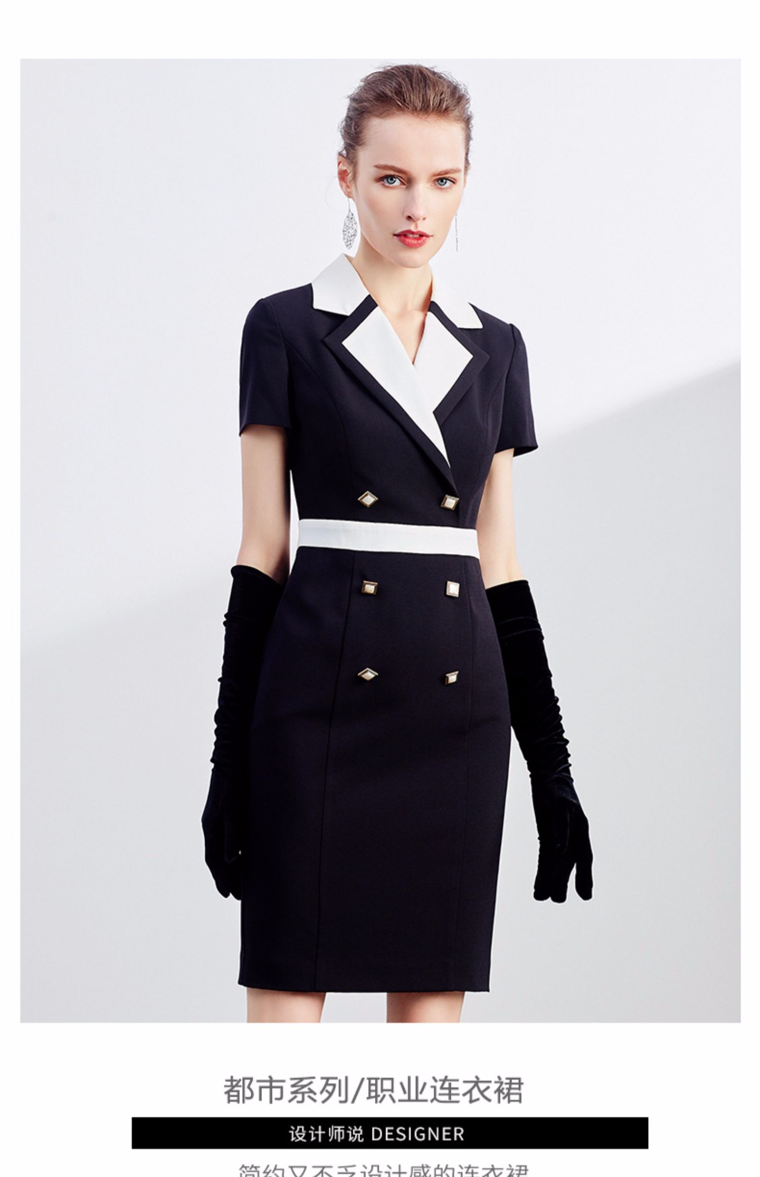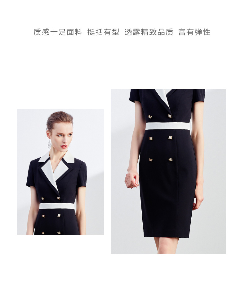 IWY/职业连衣裙时尚撞色高腰显瘦正装商务办公短袖修身高端OL Q542-