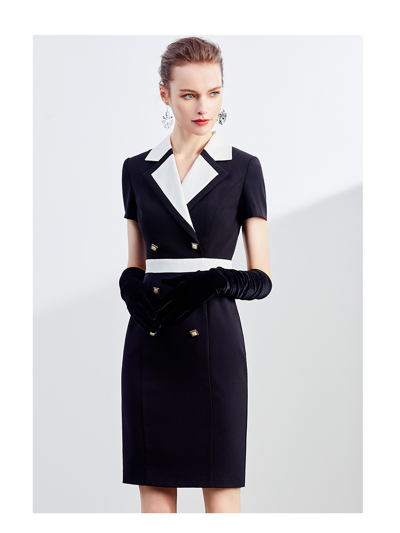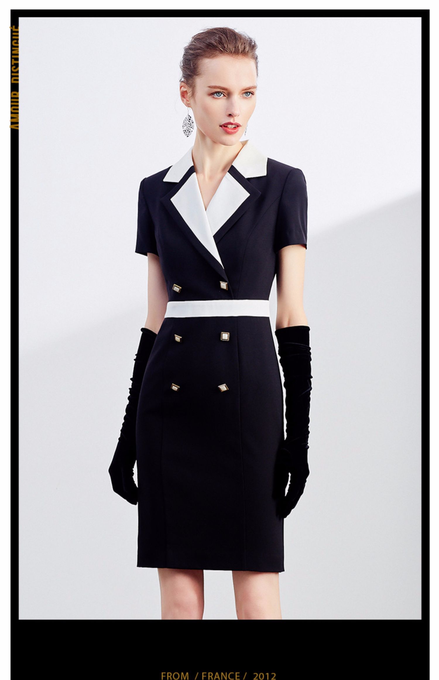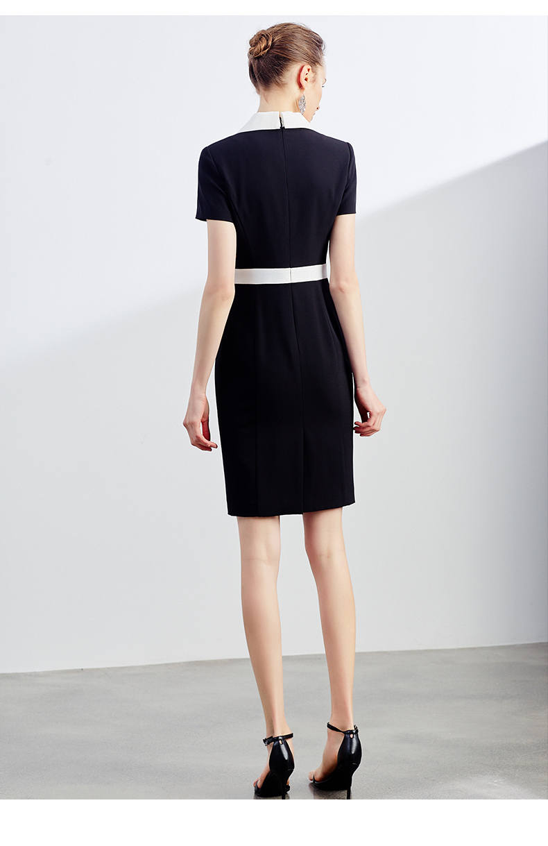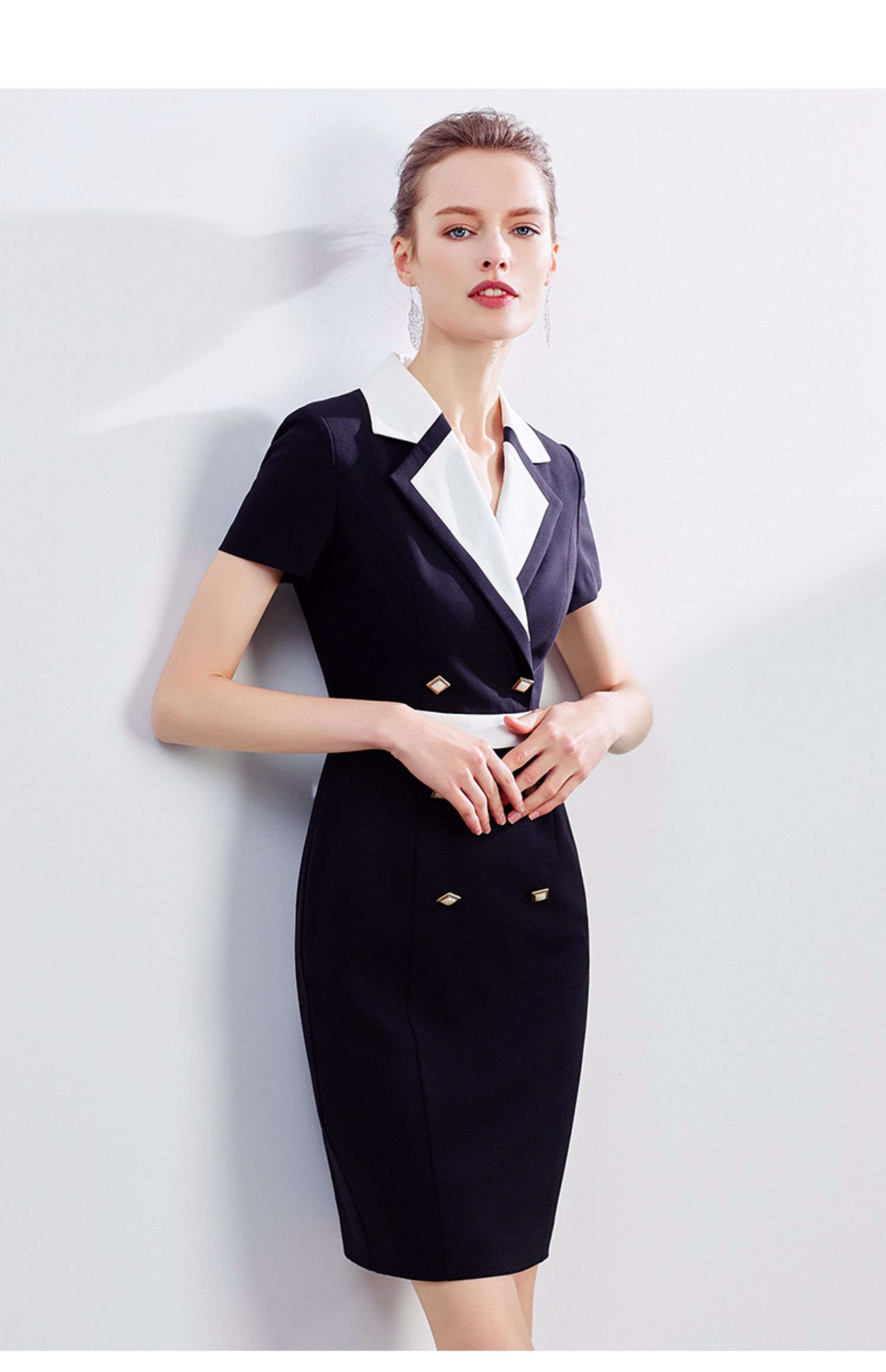 IWY/职业连衣裙时尚撞色高腰显瘦正装商务办公短袖修身高端OL Q542-