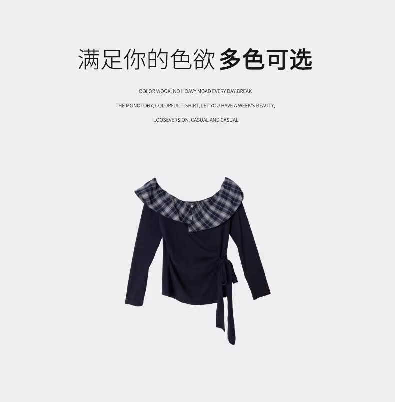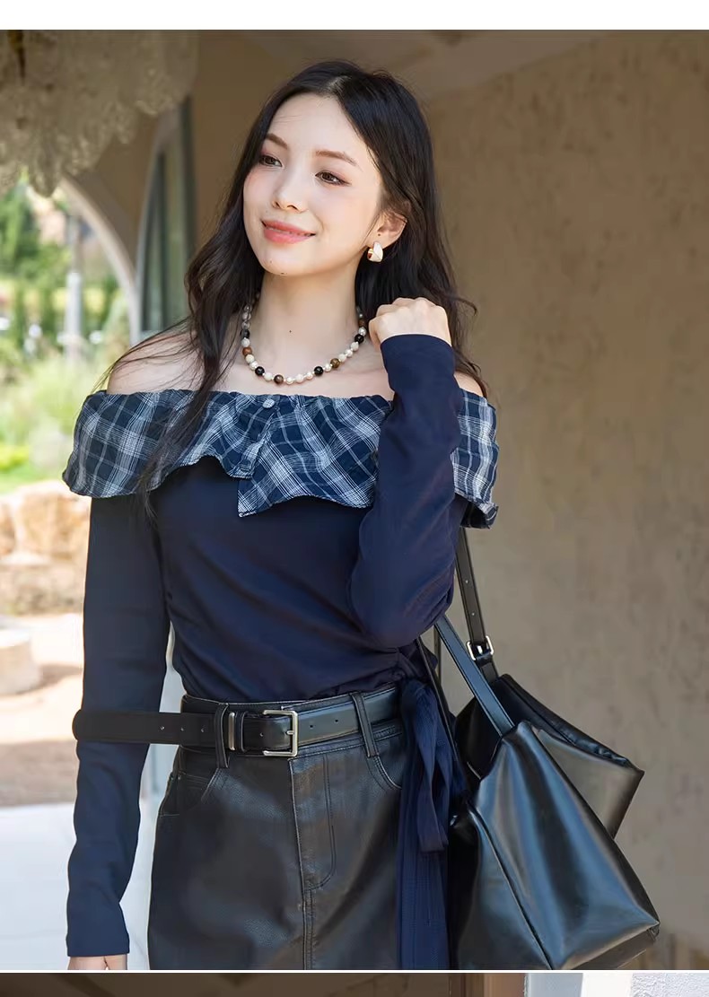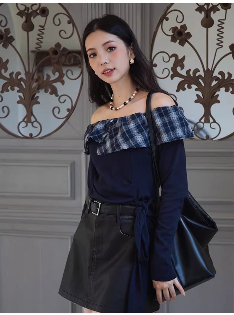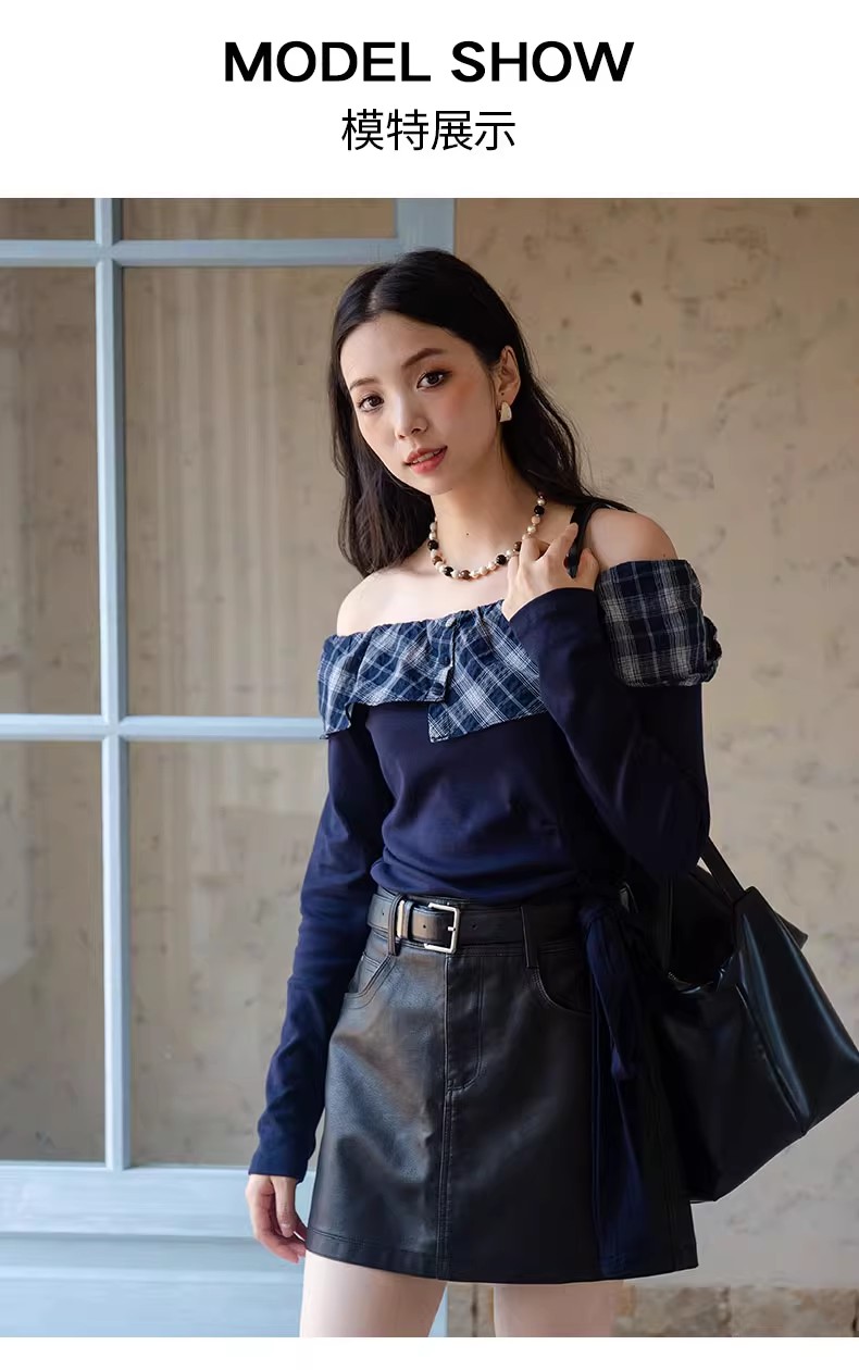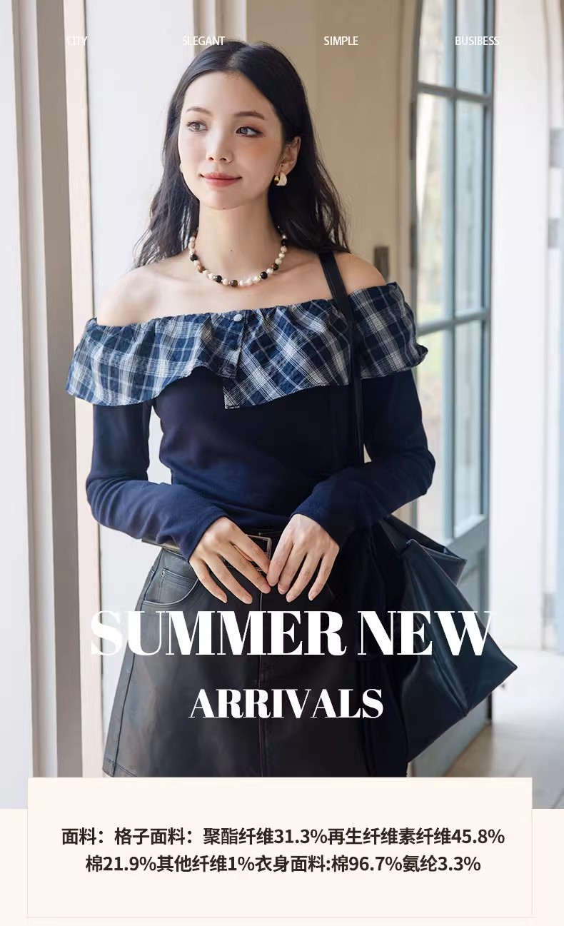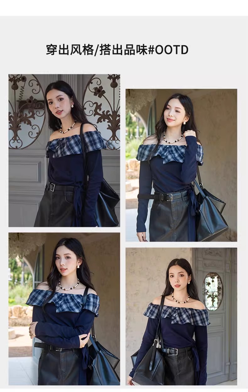 【门店同款】ENJOY秋季“浮光织影”格纹一字领上衣 165800225