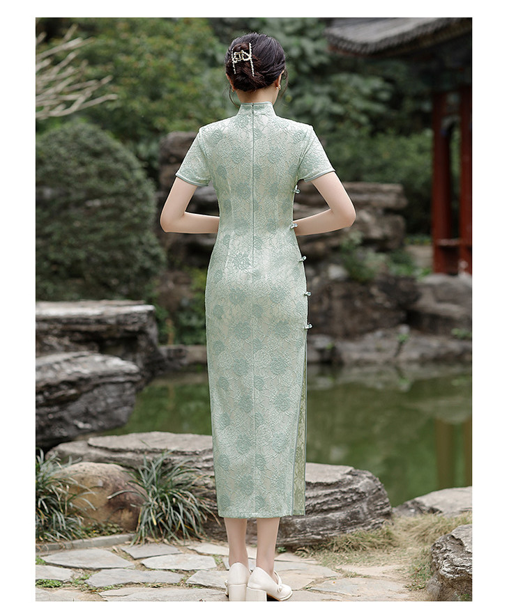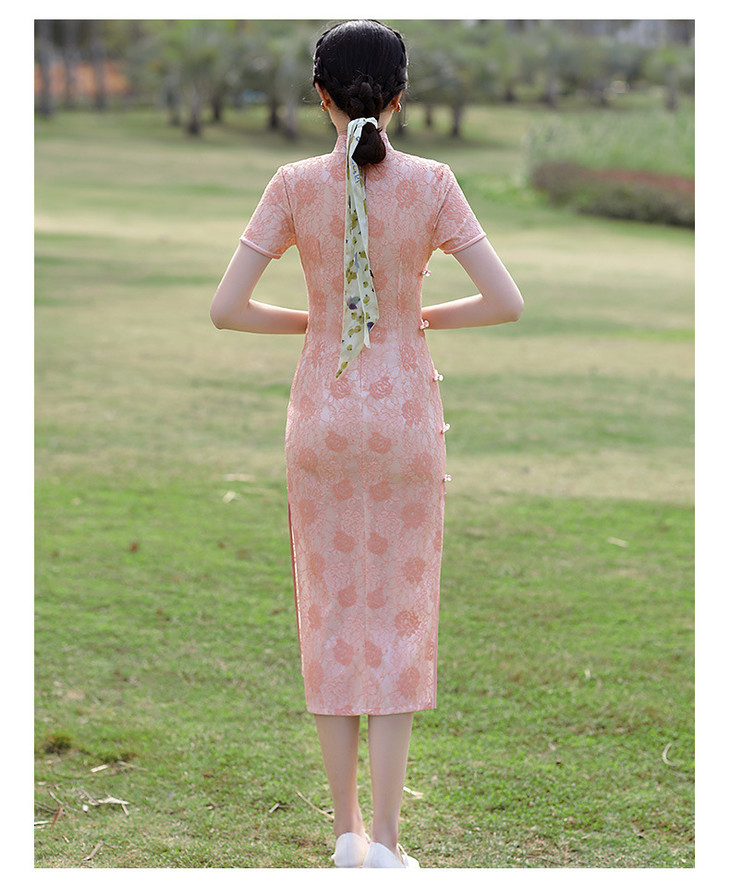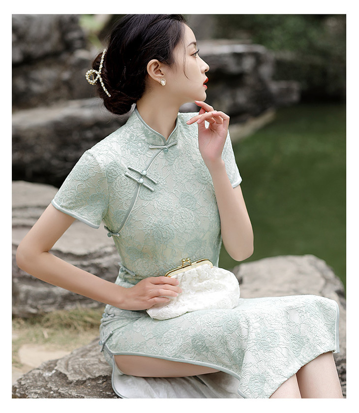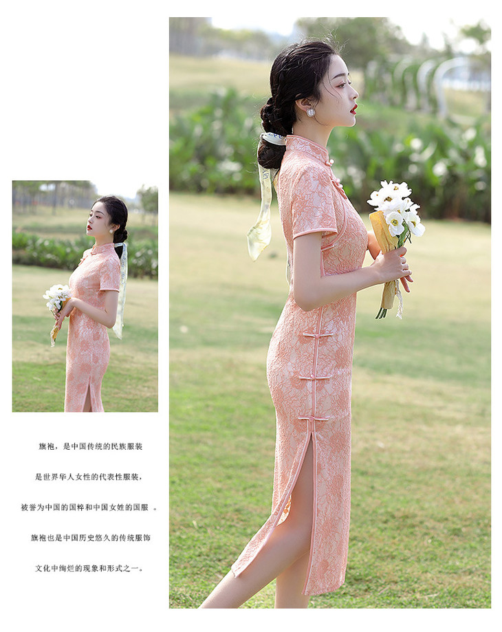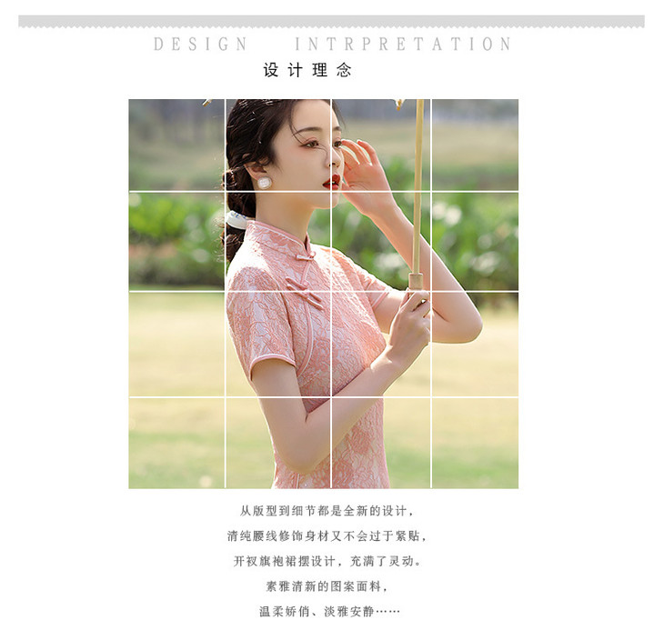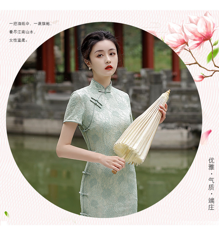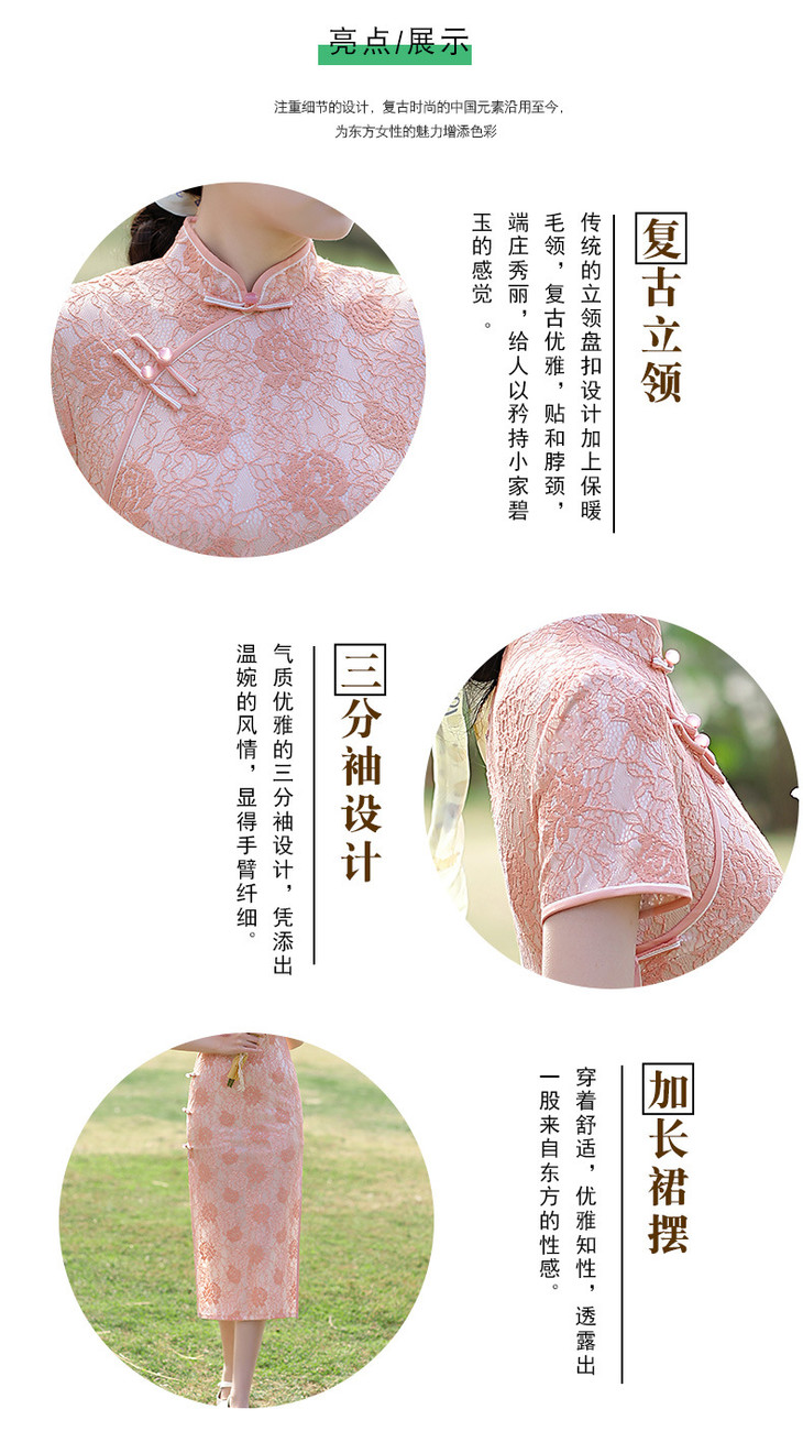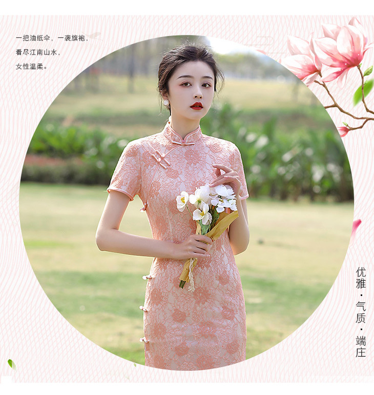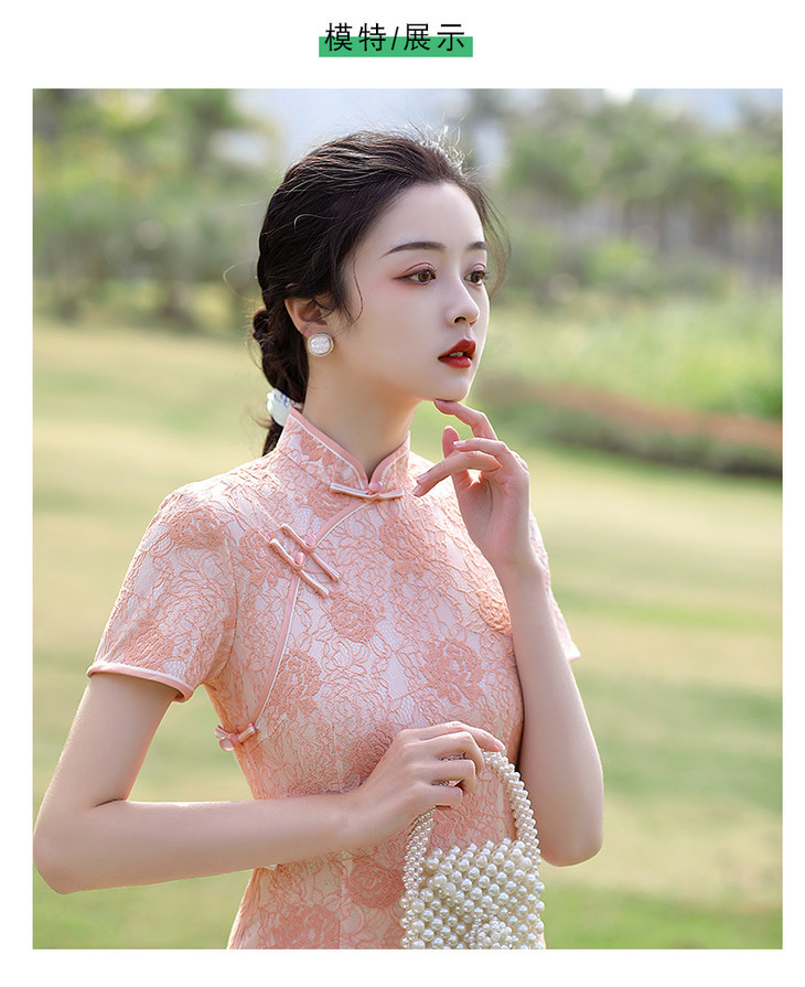 淡雅清新少女款,改良修身单层宴会演出日常复合连衣裙蕾丝旗袍MLS-6182