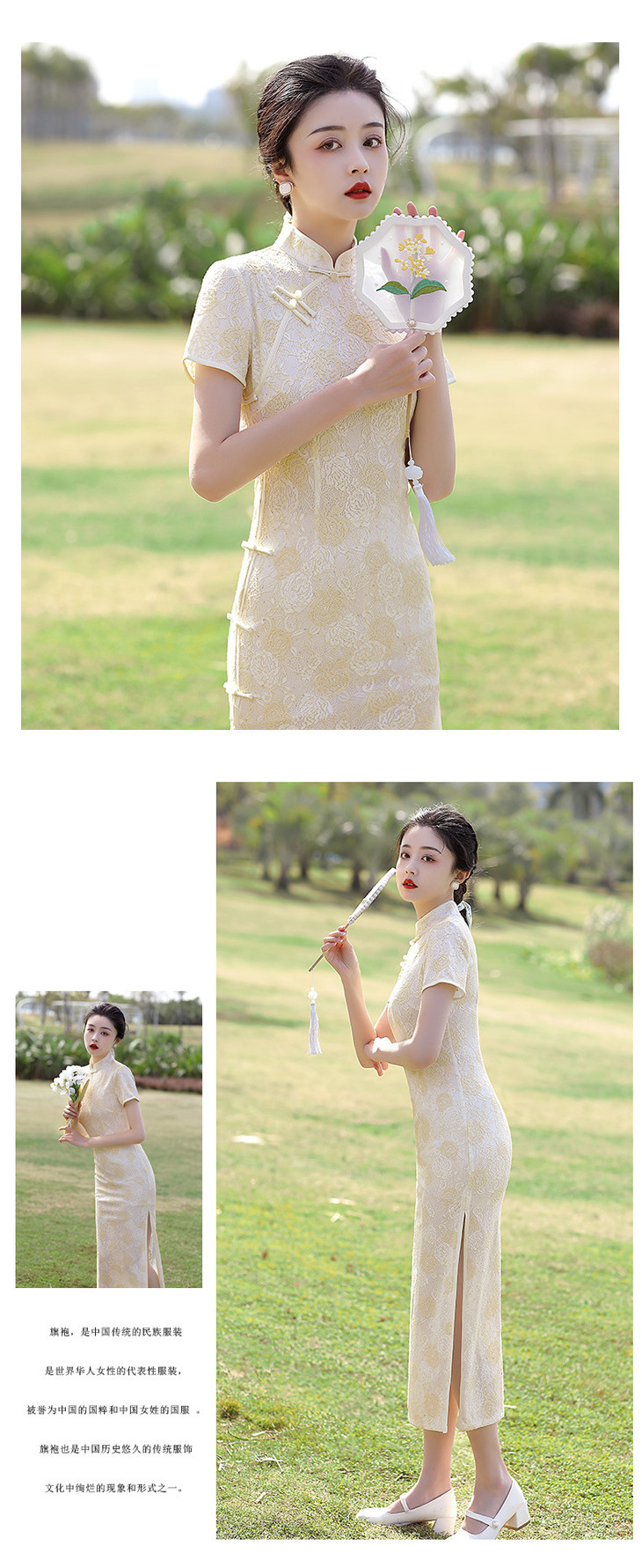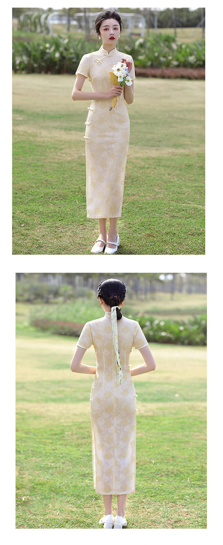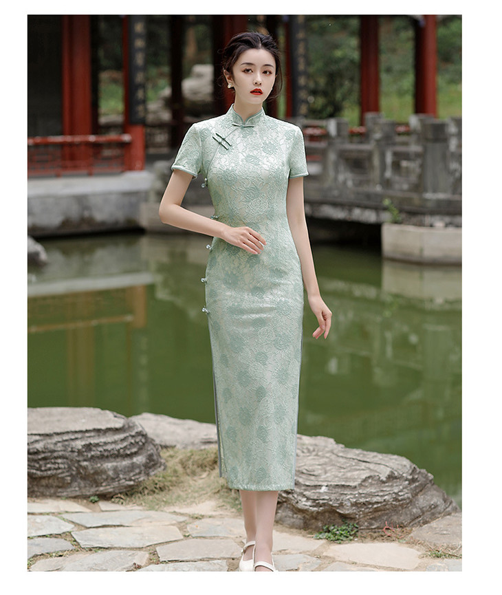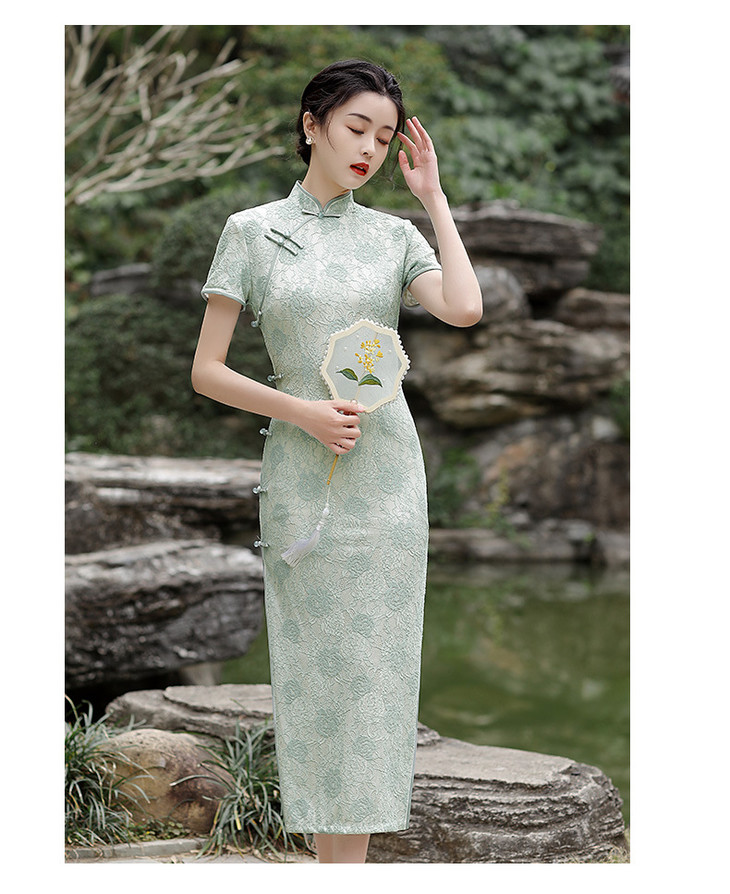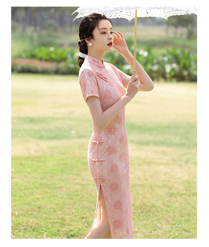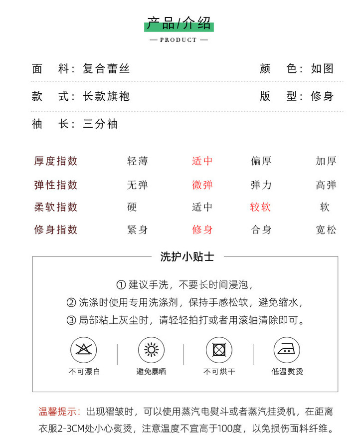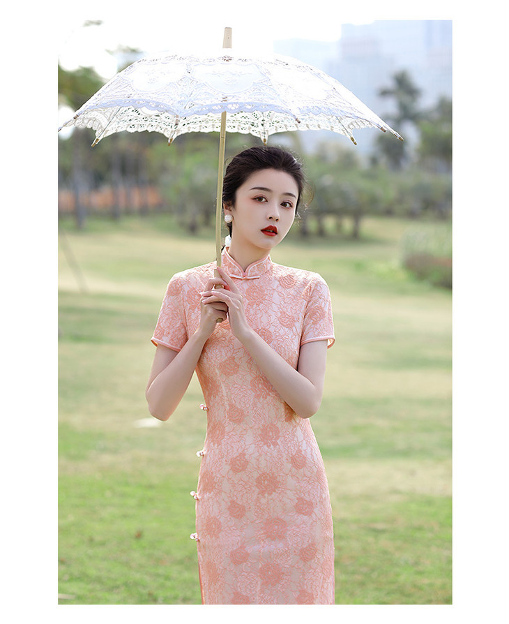 淡雅清新少女款,改良修身单层宴会演出日常复合连衣裙蕾丝旗袍MLS-6182
