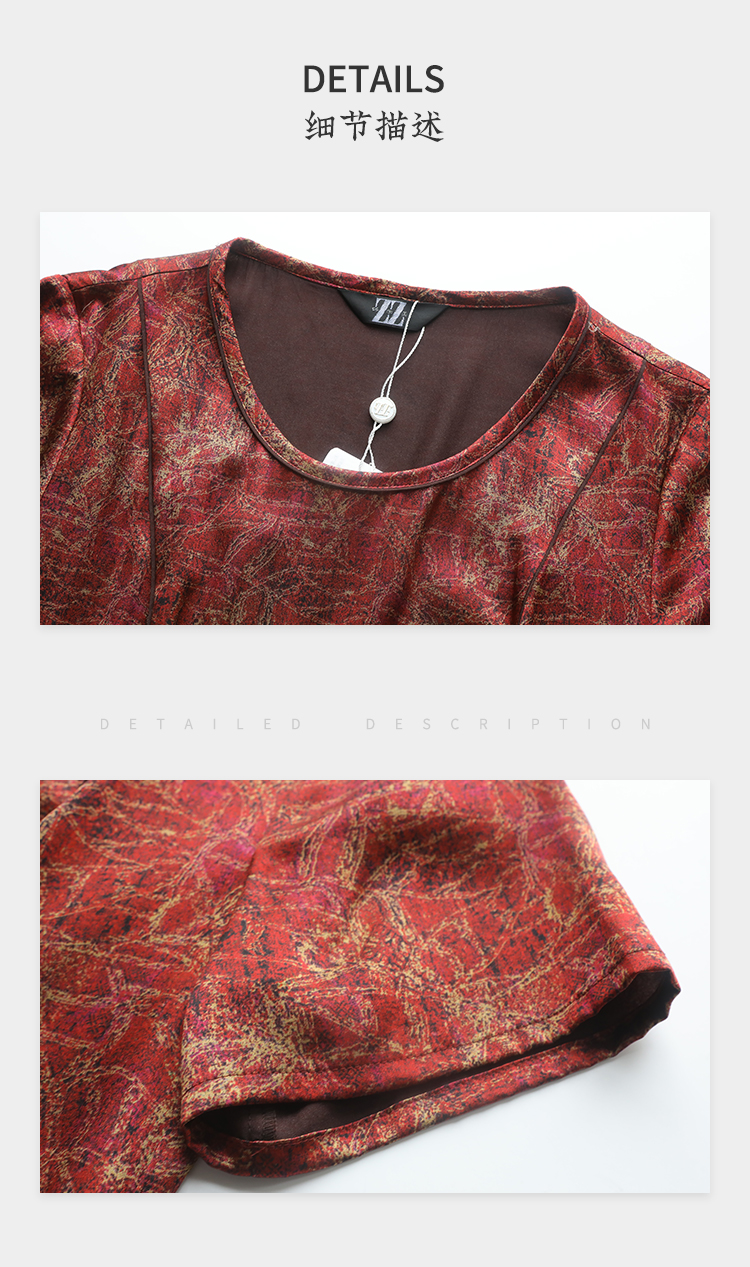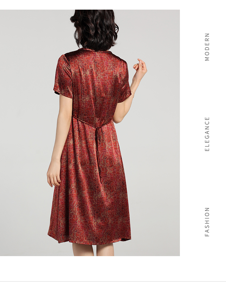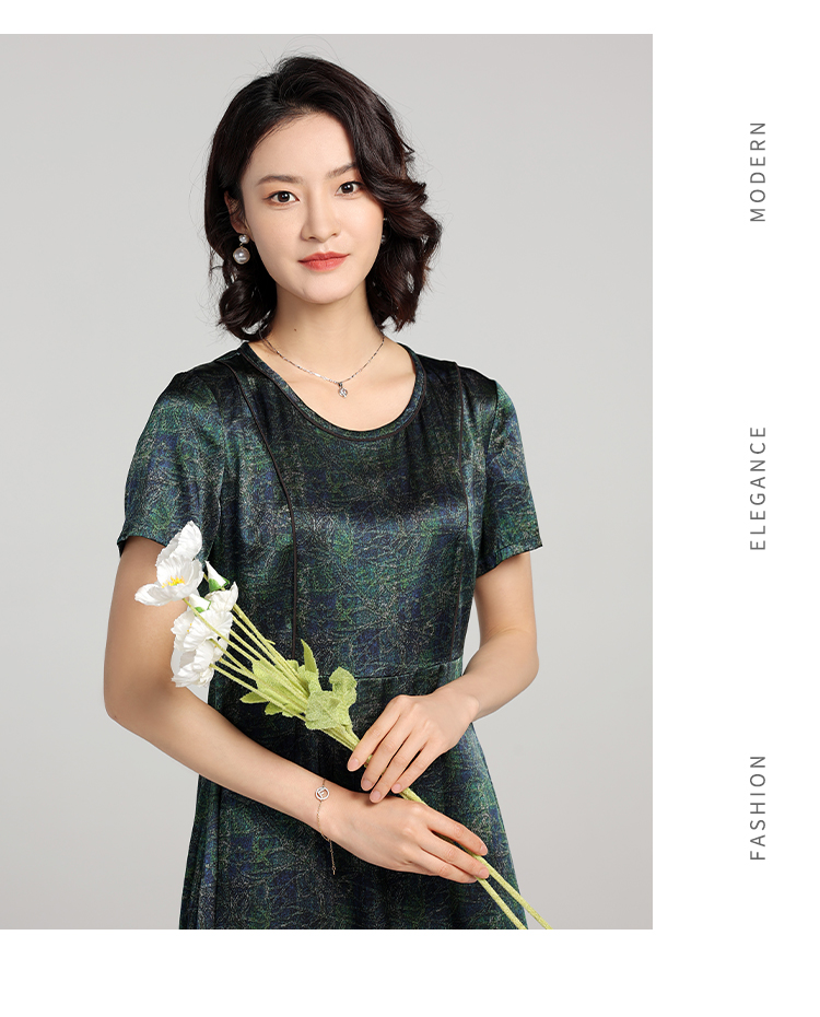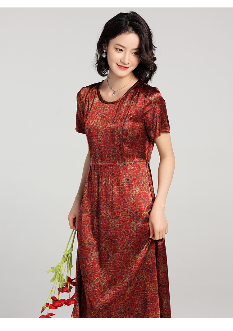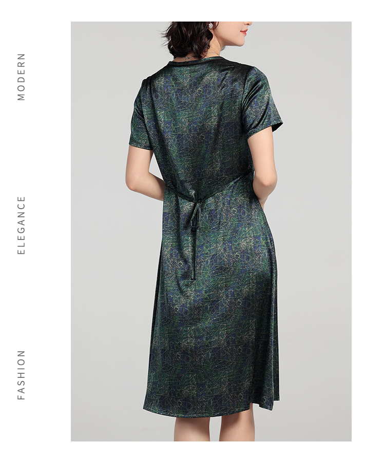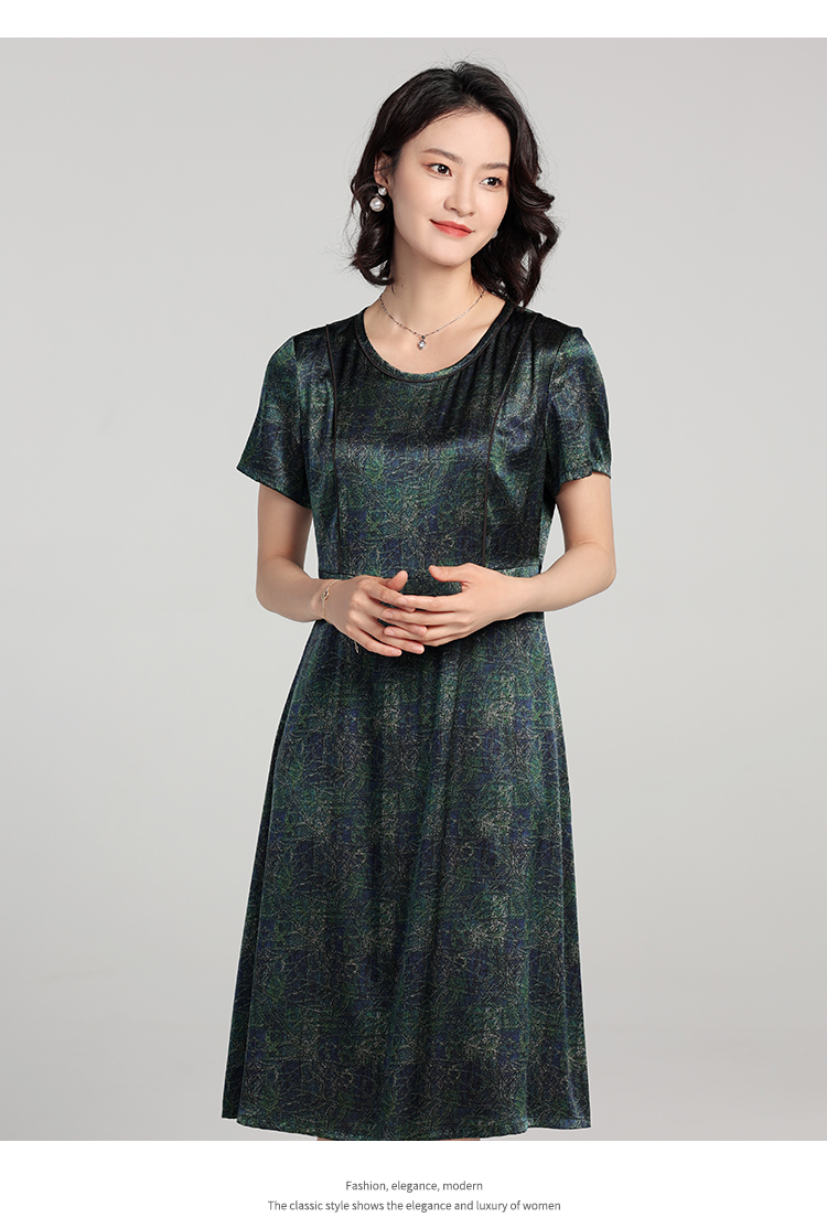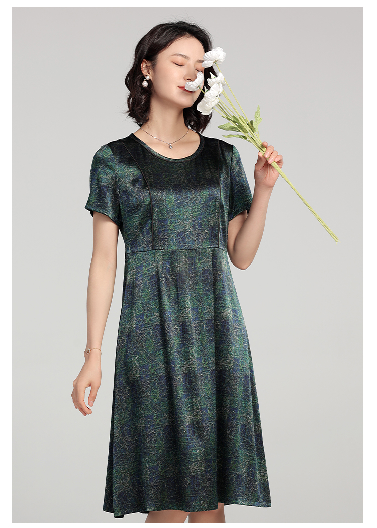 夏季新款 弹力缎印花桑蚕丝真丝短袖连衣裙女E22LS84