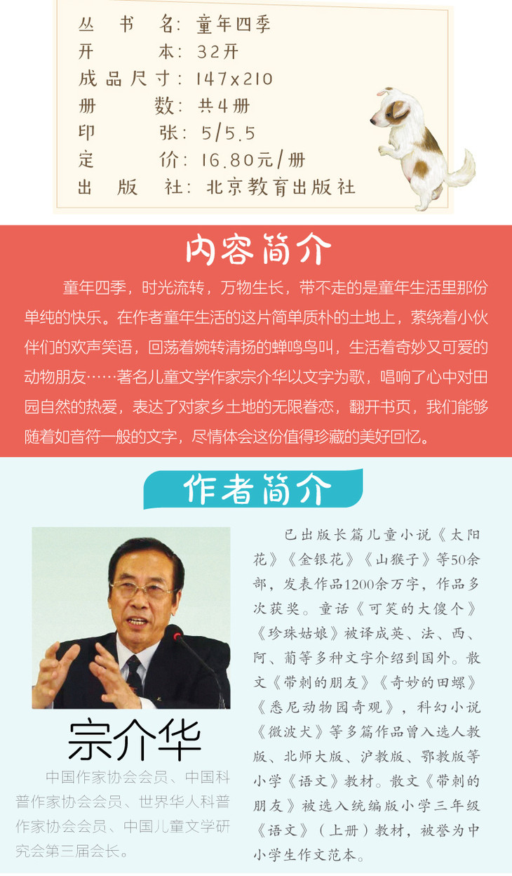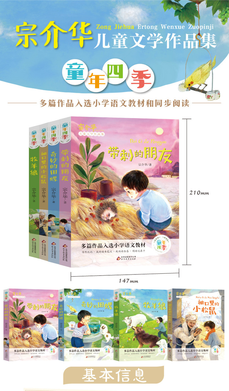宗介华童年四季4册带刺的朋友/奇妙的田螺/牧羊狼/袖口里的小松鼠上册人教版小学生三年级课外书必读老师推荐阅读畅销儿童文学故事非注音版 人教版教材指定阅读