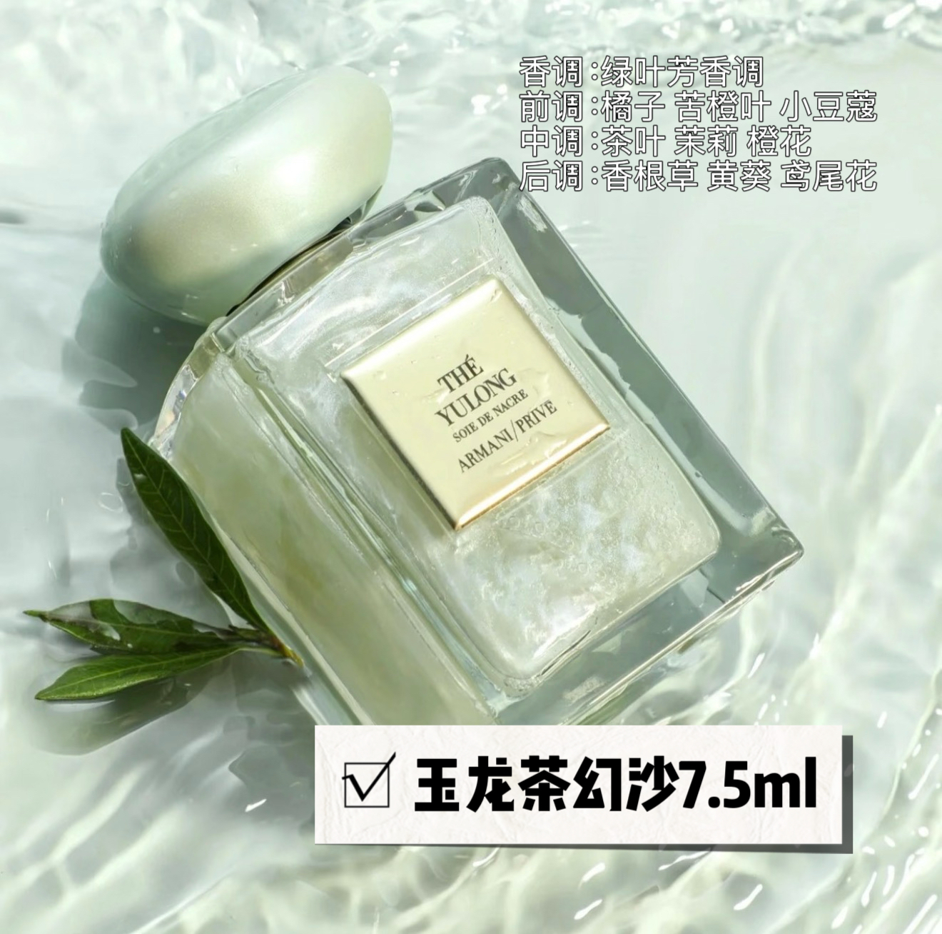 🍃【玉龙幻沙】是以东方茗茶为题,绿茶与柑橘、橙花作为风来前的奏动,独具东方韵味。“ARMANI PRIVE 香水系列缤纷多彩,各以气味言宴,或是风或是水,这些都是源于阿玛尼先生对于世界不同的风采的观感。”