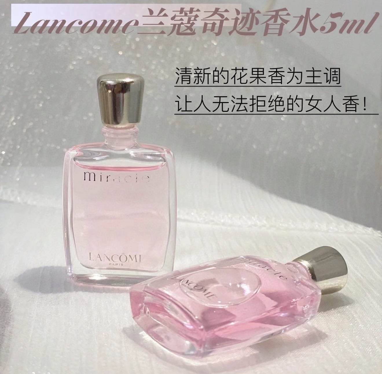 🌟【兰蔻奇迹】它是花果香调,前调荔枝小仓兰,清新果味超上头;中调木兰花混合青姜胡椒,温柔带点小个性;后调茉莉、麝香与琥珀,浪漫又持久。