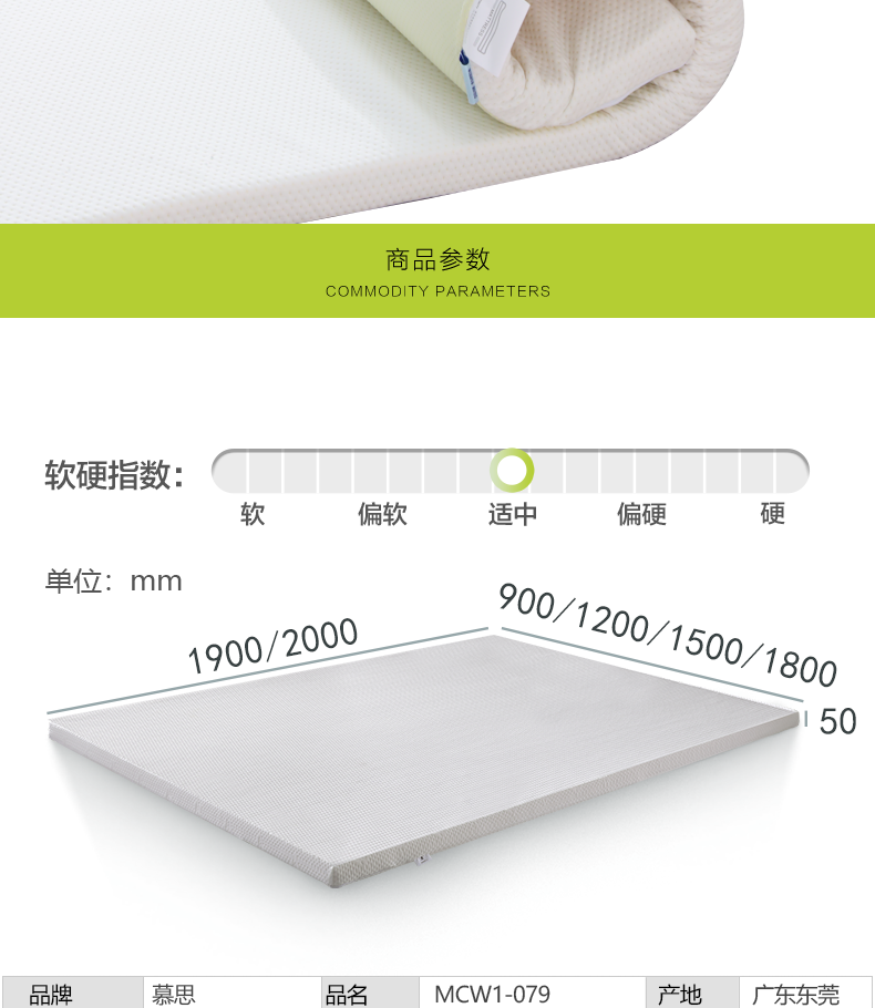 慕思(de RUCCI)薄床垫 乳胶床垫单人宿舍薄垫防螨榻榻米床褥垫 租房专用乳胶垫 5cm厚/三防海绵乳胶款-MCW1-079 1.2*1.9米学生床