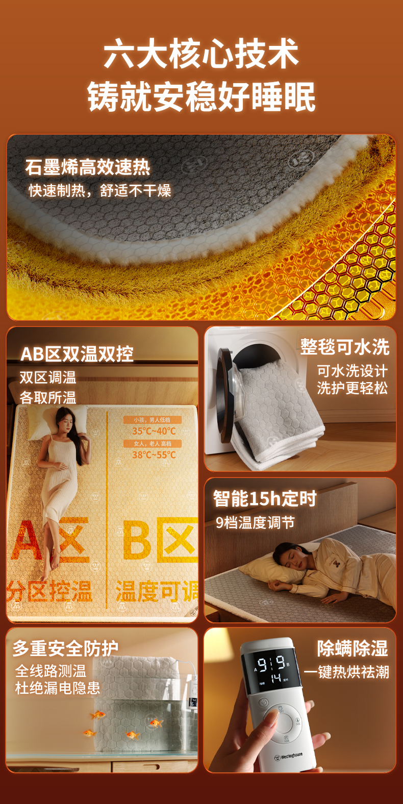 【2025款 暖冬必备】西屋电热毯,双区独立控温 温暖各取所需,九档控温15H自由定时