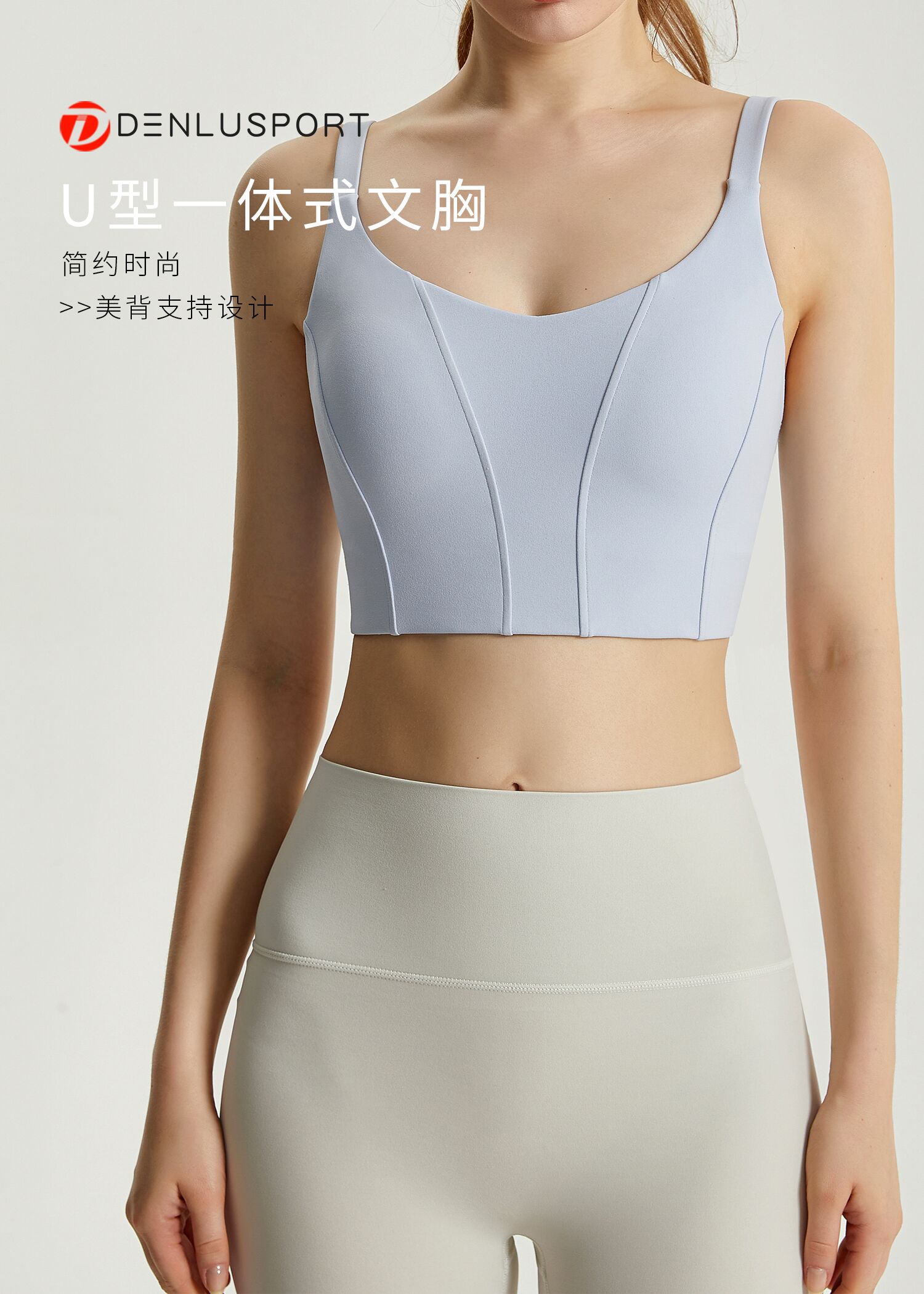 秋冬季新品一体式鱼骨吊带运动文胸DY66029#深U领口立体设计加高侧围隐藏副乳
