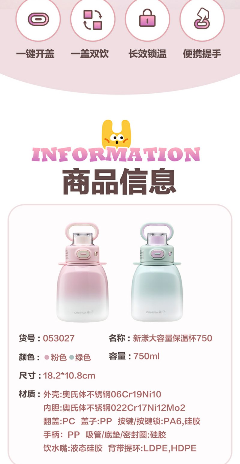 【茶花】大容量墩墩保温杯750ml