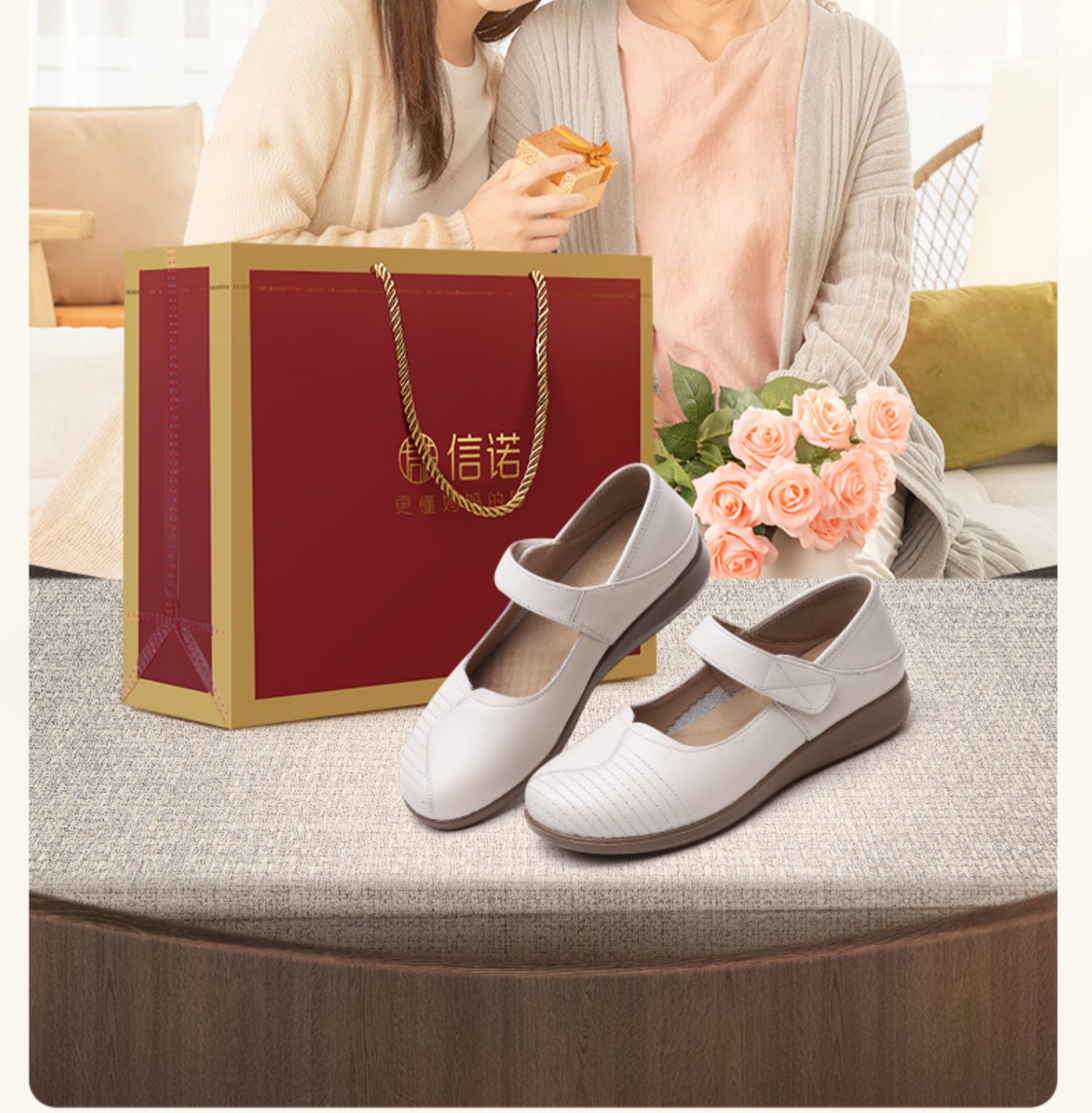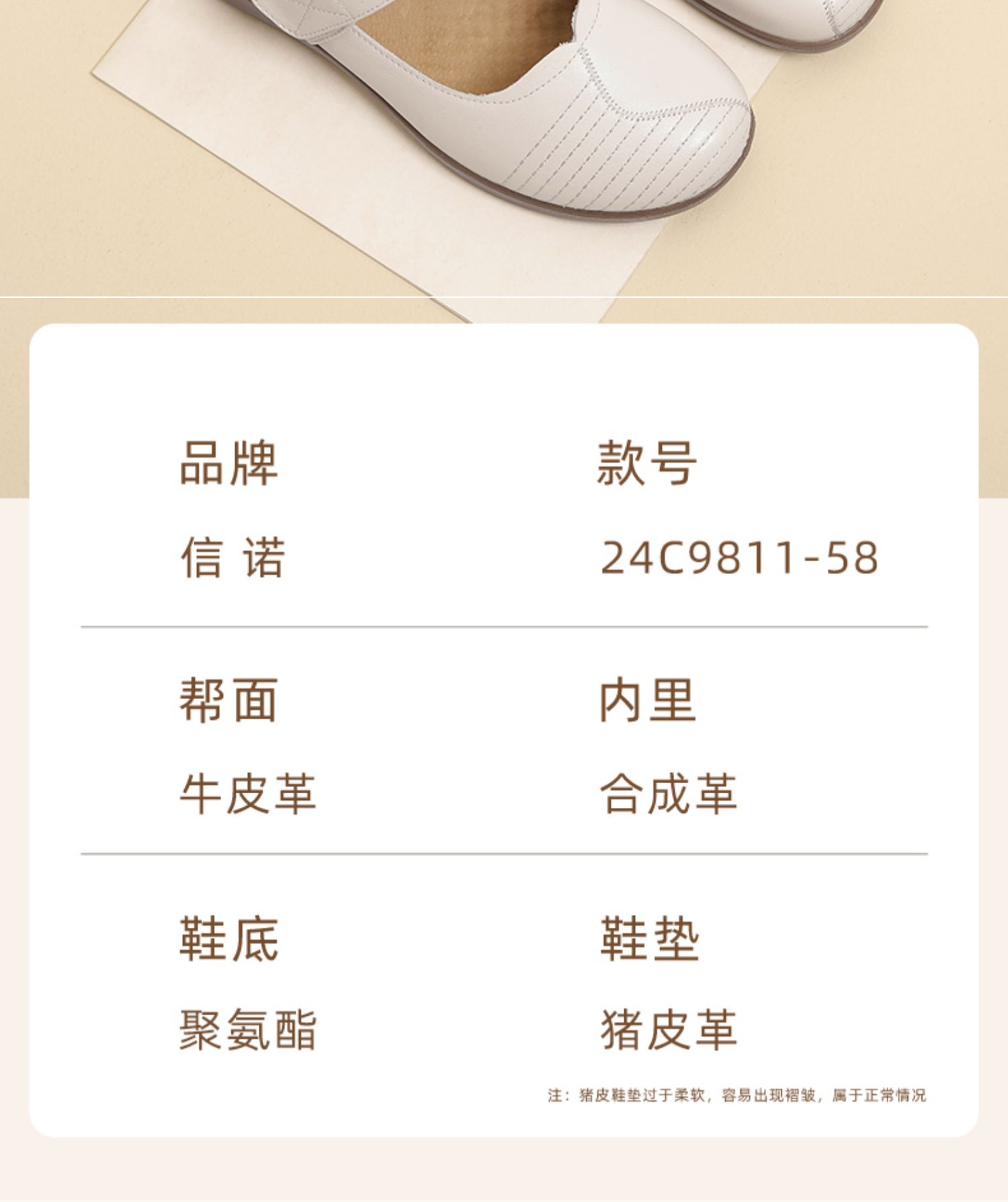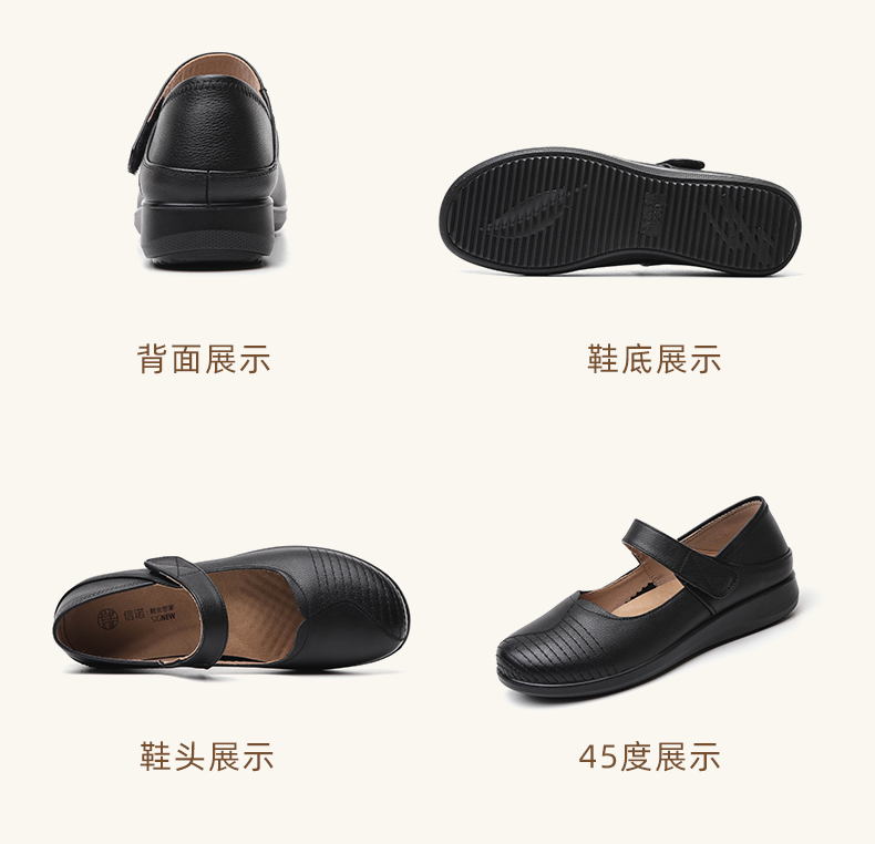 信诺 真皮舒适女鞋 2024新款春季中老年软底妈妈鞋子单鞋轻便皮鞋24C9811-58