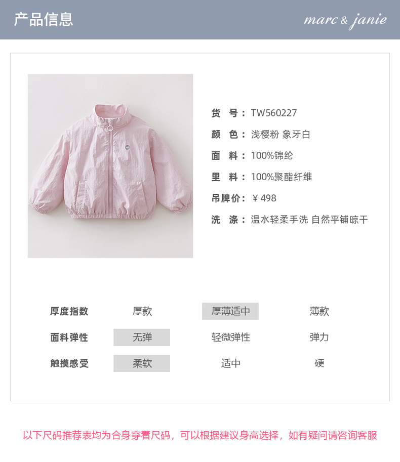 马克珍妮轻潮运动女童立领夹克外套2026年春装新款560227