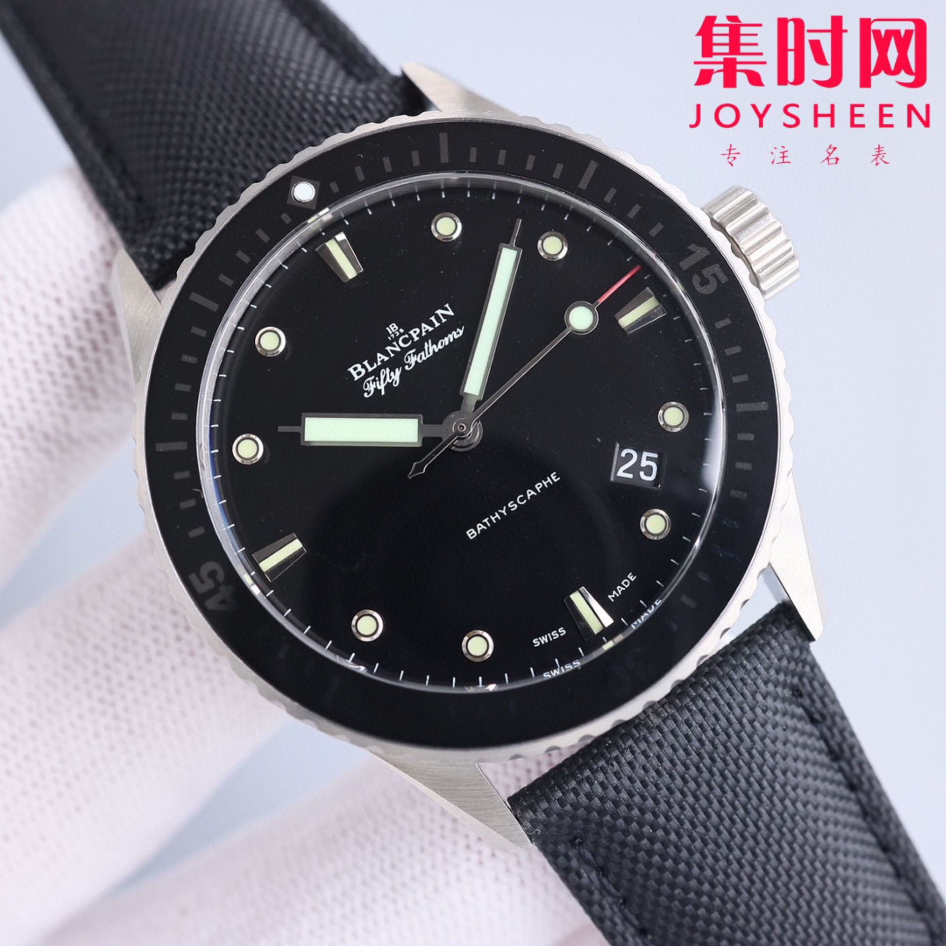 宝珀五十寻系列 男士腕表 表径43.6mm 三针男表 光泽亮丽、高硬度、不变色、不沾污、不易磨损。