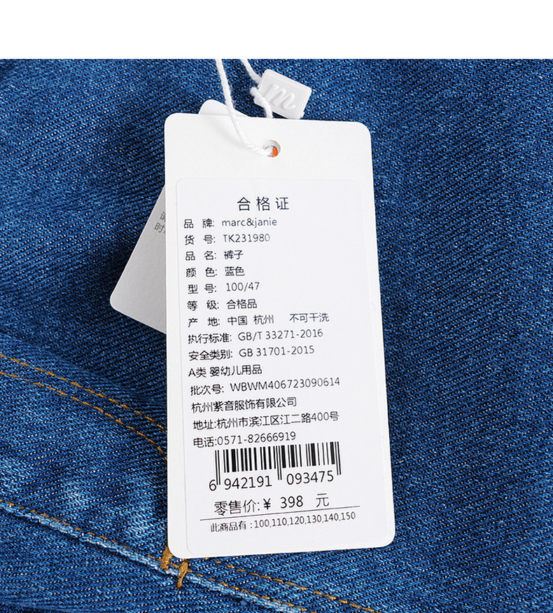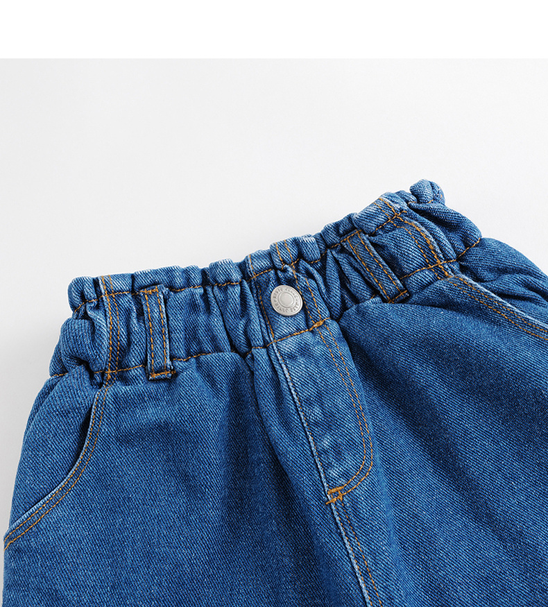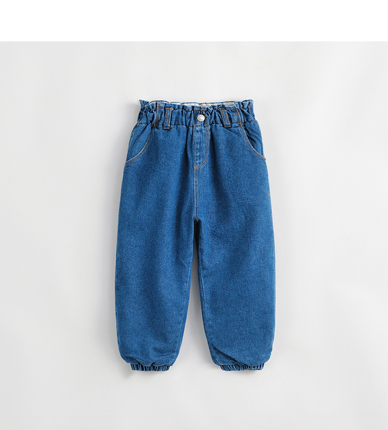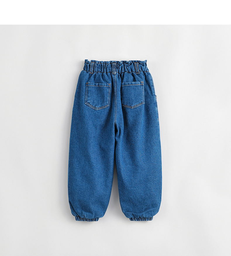 马克珍妮秋冬新款 女童花边腰夹棉保暖牛仔裤 儿童裤子231980